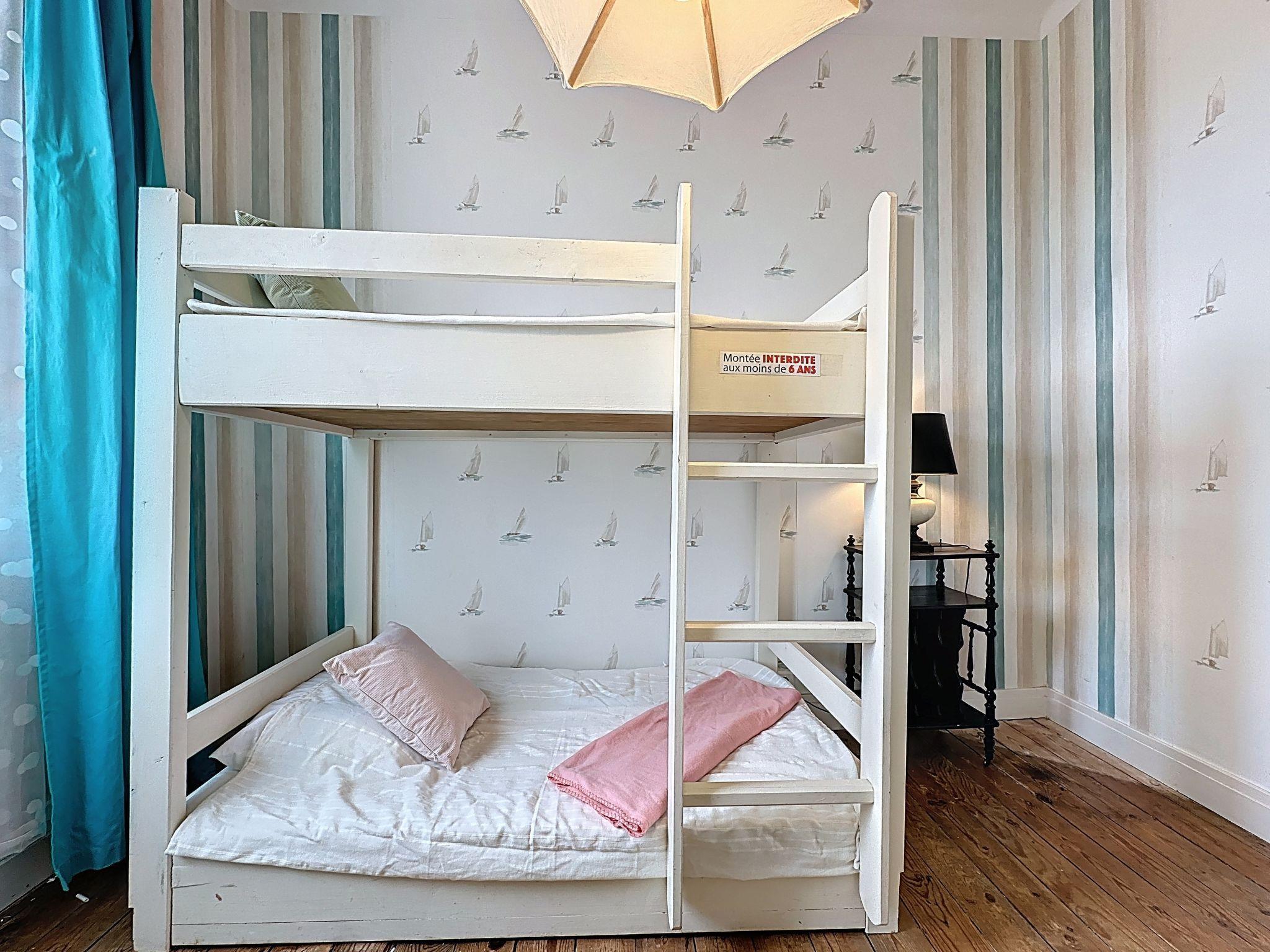 "Les Mouettes", 4-room terraced house 110 m2 on 2 levels, south facing position. Object suitable for 4 adults + 2 children. Rustic and cosy furnishings: large living/dining room with TV (flat screen). Kitchen (oven, dishwasher, 4 induction hot plates, toaster, kettle, microwave, electric coffee machine, Capsules for coffee machine (Nespresso) extra). Sep. WC. Upper floor: 1 children's room with 1 x 2 bunk beds (70 cm, length 165 cm). 2 rooms, each room with 1 french bed (1 x 140 cm, length 190 cm). Bath/shower/WC, double hand-basin. Electric heating. Facilities: washing machine, iron, children's high chair, baby cot for up to 2 year olds, hair dryer. Please note: non-smoking house. Smoke alarm. Offer by a private individual according to Art. 155, IV of CGI.