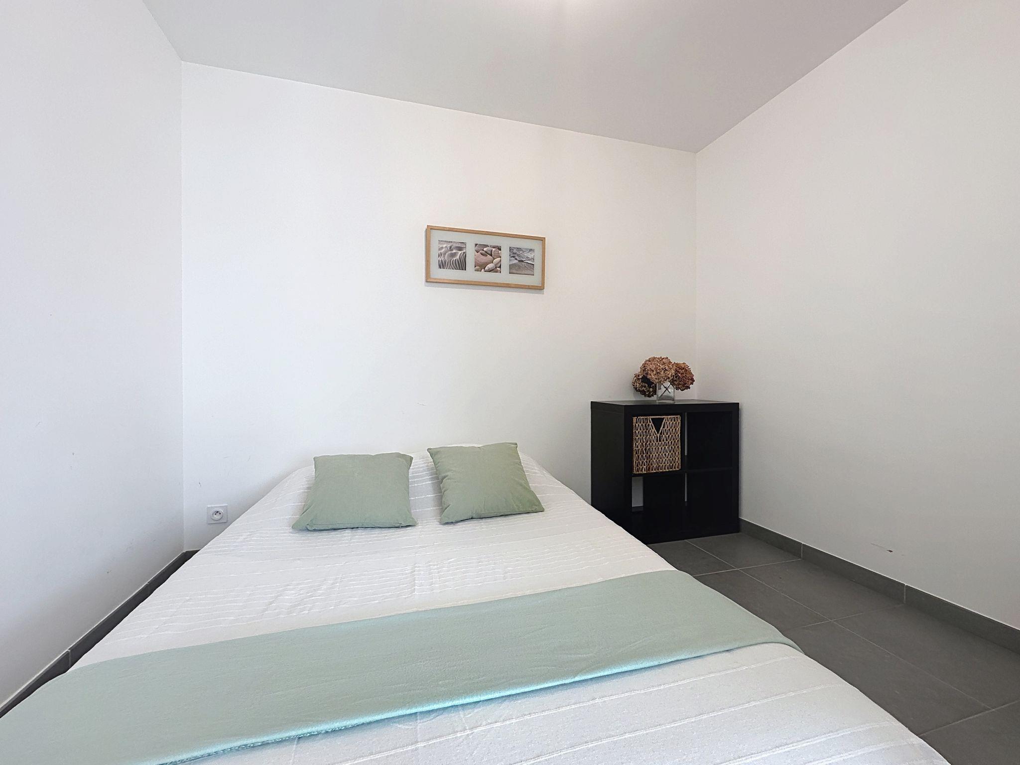 "Les Embruns", 4-room house 90 m2, south-west facing position. Simple furnishings: living/dining room with TV (flat screen). Exit to the garden, to the terrace, south facing position and west facing position. 1 large room with 1 french bed (1 x 140 cm, length 190 cm), TV (flat screen). Exit to the garden. 1 room with 1 x 2 bunk beds (90 cm, length 190 cm), 1 french bed (1 x 140 cm, length 190 cm). 1 room, without window with 1 double wall-trunk bed (1 x 140 cm, length 190 cm). Open kitchen (oven, dishwasher, 1 induction hot plates, 3 gas rings, toaster, kettle, microwave, freezer, electric coffee machine) with dining table. Shower/WC, sep. WC, double hand-basin. Floor heating. Terrace furniture, barbecue. Facilities: washing machine, dryer, iron, hair dryer. Internet (WiFi, extra). Parking (fenced), garage. Please note: non-smoking house. 1 small pet/ dog allowed. Smoke alarm. Offer by a private individual according to Art. 155, IV of CGI. 44012000279EA