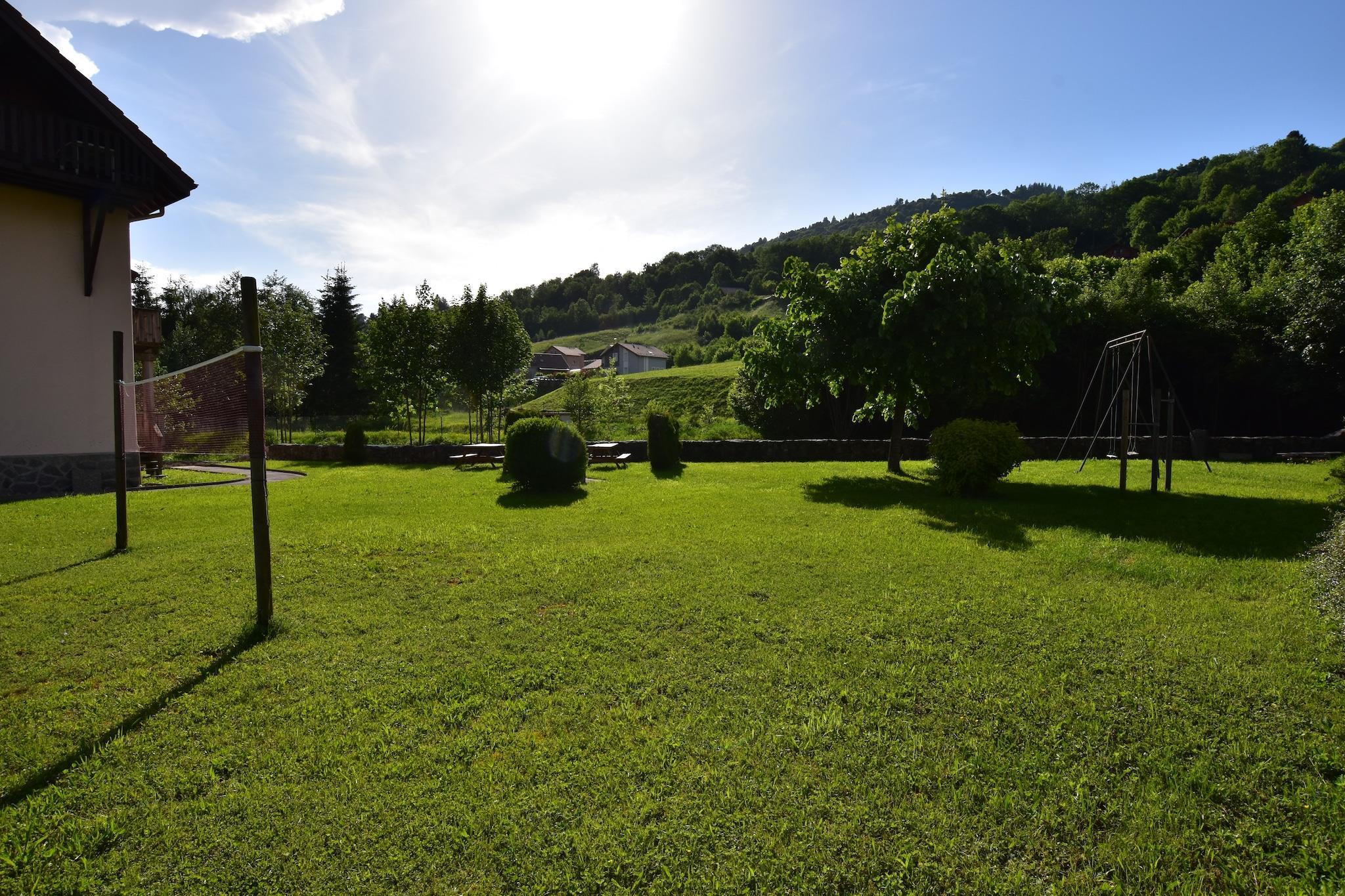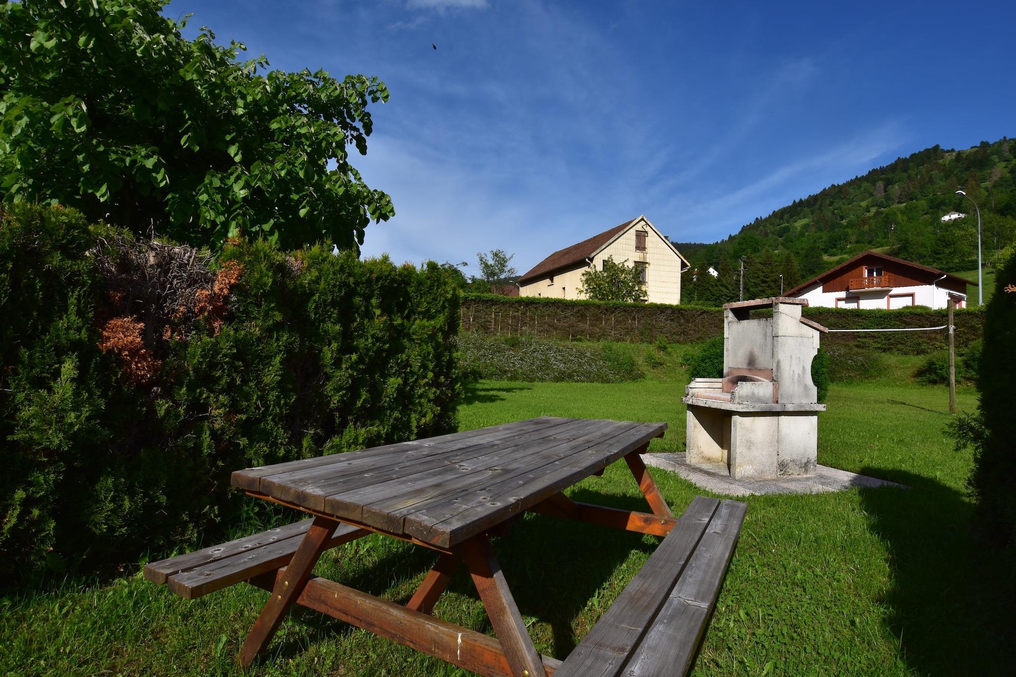 Ground floor: (hallway, Kitchen(microwave, dishwasher, freezer, fridge-freezer), Living/bed room(double sofa bed, TV(satellite)), bathroom(shower, washbasin, toilet), mezzanine(single bed, double bed)) Basement: (ski storage) fridge-freezer, tumble dryer(shared with other guests, paid), washbasin, washing machine(shared with other guests, paid), heating(electric), terrace(shared with other guests), garden(shared with other guests, partially fenced), garden furniture, BBQ, boules court, play equipment, children's bed(on request), high chair(on request)