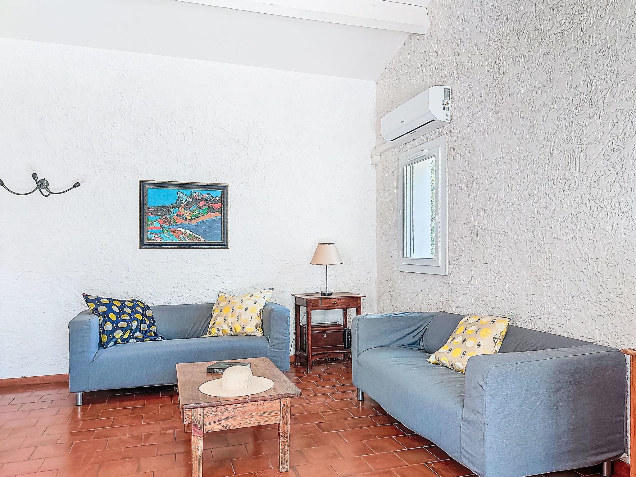4-room villa 90 m2. Beautiful furnishings: living/dining room with TV (flat screen), air conditioning. Exit to the terrace. 1 room with 1 french bed (140 cm, length 190 cm), fan. 1 room with 1 french bed (160 cm, length 190 cm), fan. 1 room with 2 beds (90 cm, length 190 cm), fan. Exit to the garden. Kitchen (oven, dishwasher, 2 ceramic glass hob hotplates, 2 gas rings, toaster, kettle, microwave, freezer, electric coffee machine, Capsules for coffee machine (Nespresso) extra). Exit to the terrace. Bathroom, sep. WC. Electric heating, forced-air heating. Terrace 36 m2, large terrace 80 m2. Terrace furniture. Facilities: washing machine. Internet (WiFi, free). Parking (3 cars). Please note: 1 pet/ dog allowed. TV only FR. Smoke alarm. Offer by a private individual according to Art. 155, IV of CGI.
