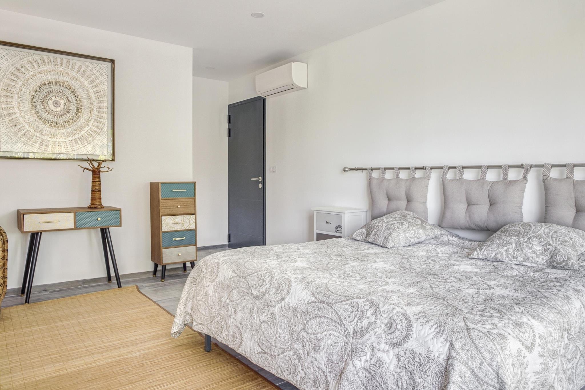 This beautiful 4-bedroom villa in La Cadière-d'Azur offers a peaceful escape for up to 8 guests and 1 child. Ideal for large families or a group of friends, it boasts a private swimming pool for refreshing dips under the Provençal sun. Just a short walk from the charming town centre, you can explore local shops and bakeries, or indulge in French cuisine at restaurants 3 km away. Beach lovers will enjoy the sandy coastline just 6 km from the property, along with fun water sports activities. The villa sits in an exceptional setting with open spaces and countryside views. Enjoy evenings on the terrace with a barbecue meal or unwind with a good book from the villa’s library. Fully air-conditioned, it promises cool comfort indoors even in the height of summer. Toulon Airport is 35 km away, making travel convenient and easy.