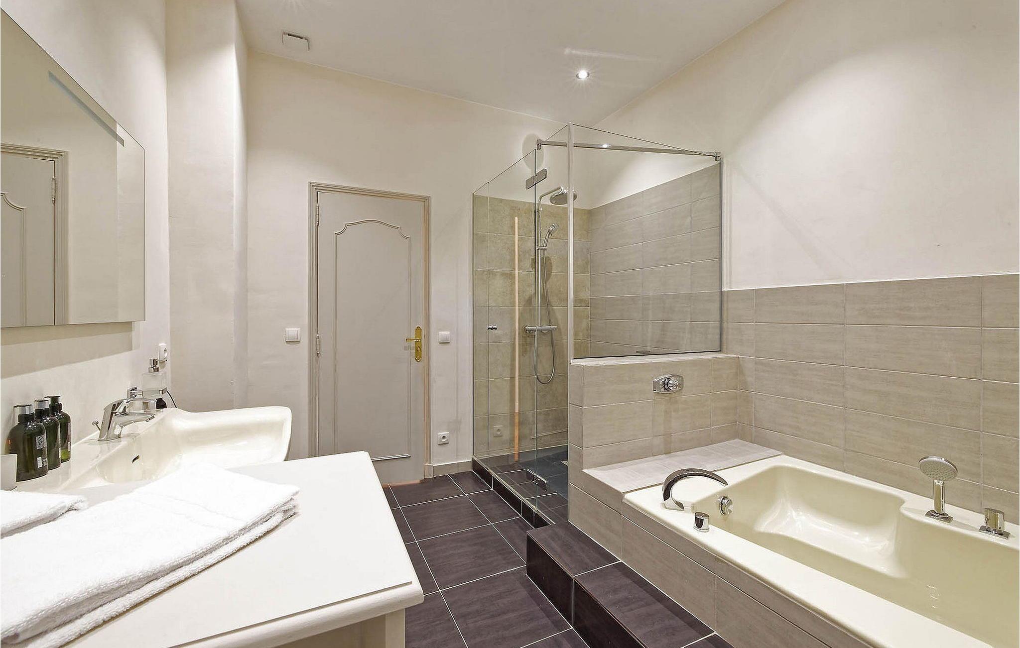 Badezimmer (nr. 1) - WC. Warmes und kaltes Wasser. Dusche und Badewanne