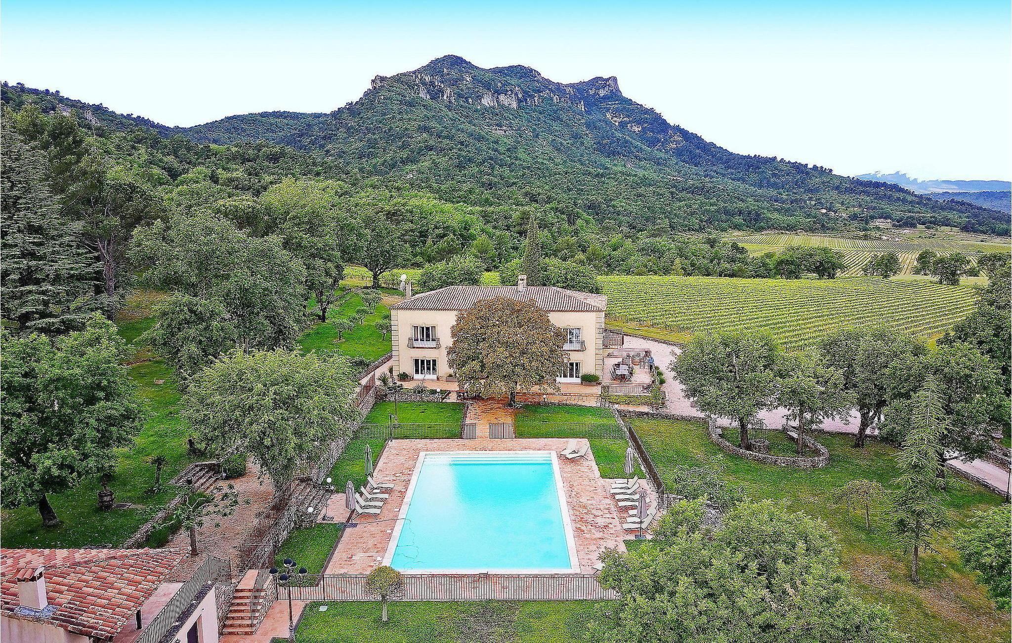 Die Ferienvilla in der Region Var überblickt das Tal eines Weinguts. Die Villa verfügt über ein Spielezimmer, ein Hamam, eine gut ausgestattete Küche, einen geräumigen Wohn-/Essbereich mit Terrassen und einen Bouleplatz. Die Schlafzimmer verteilen sich auf die beiden Etagen und verfügen jeweils über ein eigenes Bad. Das Hauptschlafzimmer im ersten Stock verfügt über einen eigenen separaten Wohnbereich. Zu den Außenbereichen gehören zwei Terrassen, ein großer, geschlossener Pool mit Sonnenliegen, ein Obstgarten und ein Poolhaus mit Küche und Spielbereich. Die Villa bietet einen Panoramablick, Zugang zu Wanderwegen und eine ruhige Umgebung für die lokale Flora und Fauna. Die Villa befindet sich auf einem Weingut auf der Spitze eines Hügels, von dem aus Sie einen Blick auf das Weingut auf dem Sainte-Baume-Massiv haben. Alle Geschäfte befinden sich in La Celle (8 km).