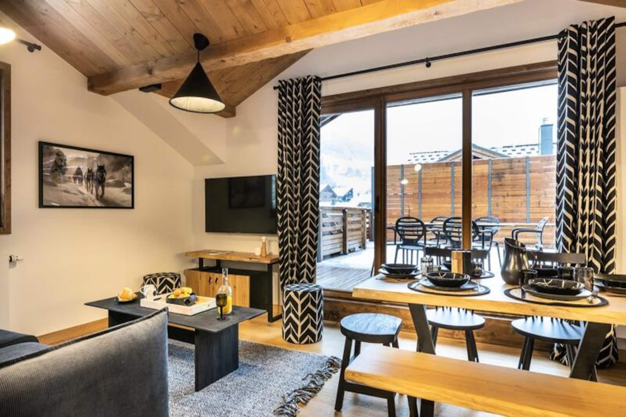 In the picturesque village of La Chapelle d’Abondance, where the charm of Savoyard traditions meets breathtaking alpine vistas, the Terresens Le Flocon Blanc residence offers an idyllic retreat for nature lovers and adventure seekers alike. Imagine waking up to unobstructed views of the serene Abondance Valley, surrounded by snow-capped peaks and the tranquil beauty of the French Alps. Whether you’re here for winter sports or summer hikes, this residence is the perfect base for unforgettable mountain escapes. \n\nEach apartment in this newly built residence is thoughtfully designed with spacious interiors, modern amenities, and tasteful decor that blends contemporary comfort with alpine warmth. From the cozy living room with a sofa bed to the fully equipped kitchen, every detail ensures a relaxing stay. The sleeping arrangements are ideal for families or groups, featuring a double bedroom with an en-suite shower, a sleeping cabin with bunk beds, and a balcony or terrace to soak in the views. High-speed WiFi keeps you connected, while optional extras like baby kits and pet-friendly accommodations cater to your specific needs. \n\nStep outside and ski directly to the Crêt-Béni chairlift, granting you access to the expansive Portes du Soleil ski area. Beyond skiing, the village offers a variety of activities, including dog sledding, snowshoeing, and cross-country trails, ensuring every guest finds their own adventure. In summer, explore lush hiking paths, mountain biking trails, and the vibrant alpine flora. \n\nWith its prime location, thoughtful amenities, and the allure of the Abondance Valley, Terresens Le Flocon Blanc invites you to create lasting memories in the heart of the Alps. Whether you seek thrilling outdoor pursuits or peaceful moments surrounded by nature, this residence is your gateway to an extraordinary alpine experience.