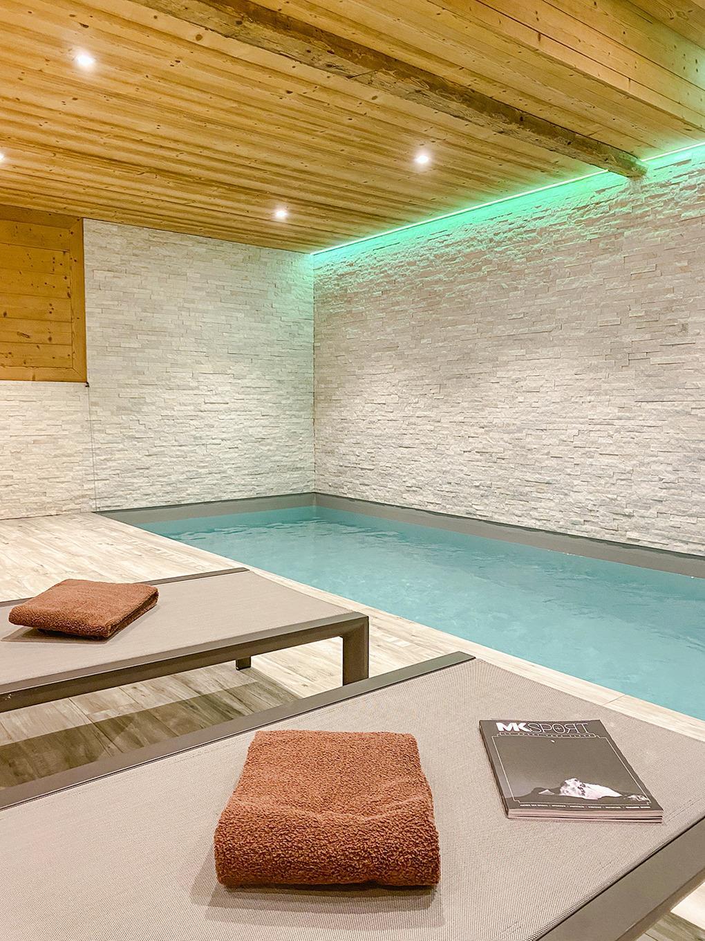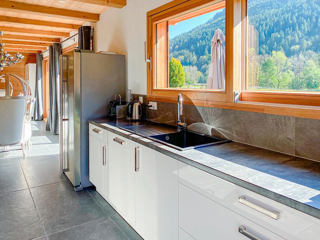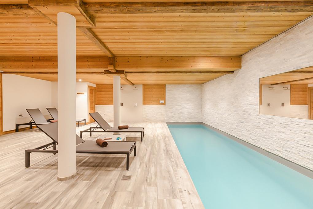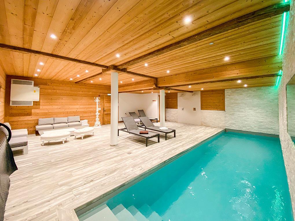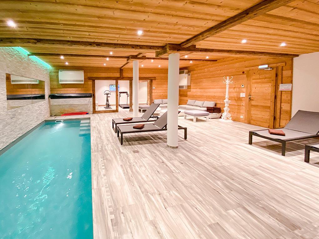 Haus: Einzigartiges Luxus-Chalet mit eigenem Schwimmbad. 9-Zimmer-Chalet mit 280 qm Wohnfläche über 3 Etagen. 5 schöne Schlafräume, alle mit Tresor, eigenem Bad (Du, Wb, Fön). Geschmackvolle Einrichtung, moderne Komfort-Ausstattung. Internet über W-Lan. Großer Wellnessbereich mit Indoor-Pool (8 m x 2,30 m), Ruheliegen, Fitnessraum. Waschmaschine, Trockner. Beheizter Ski-/Schuhraum mit Schuhtrocknern. E-Zentral-/Fußbodenheizung. Große Garage mit 4-5 Pkw-Stellplätzen, Tischtennisplatte. Nichtraucherhaus. Balkone, Terrasse mit Sitzmöbeln.