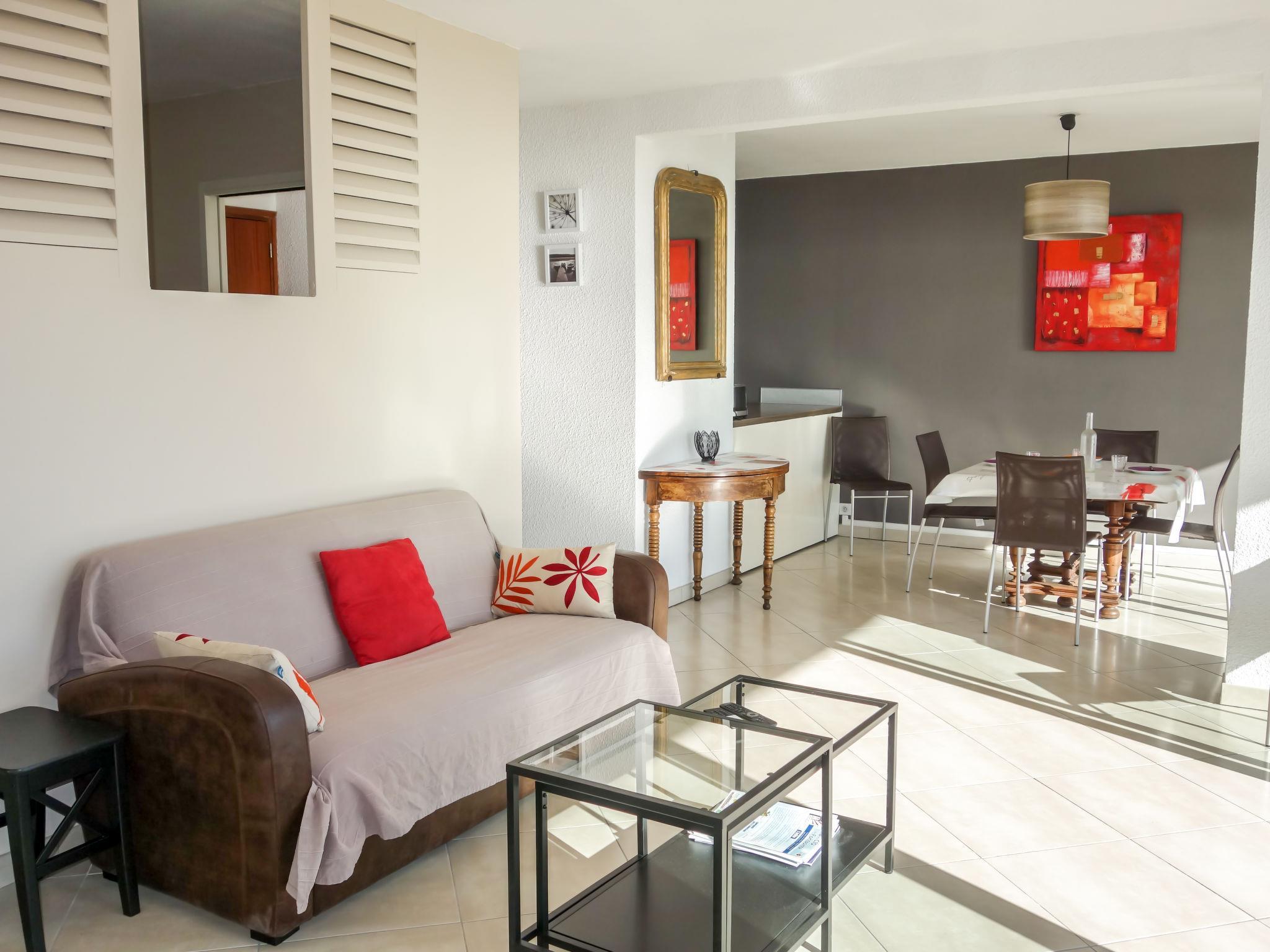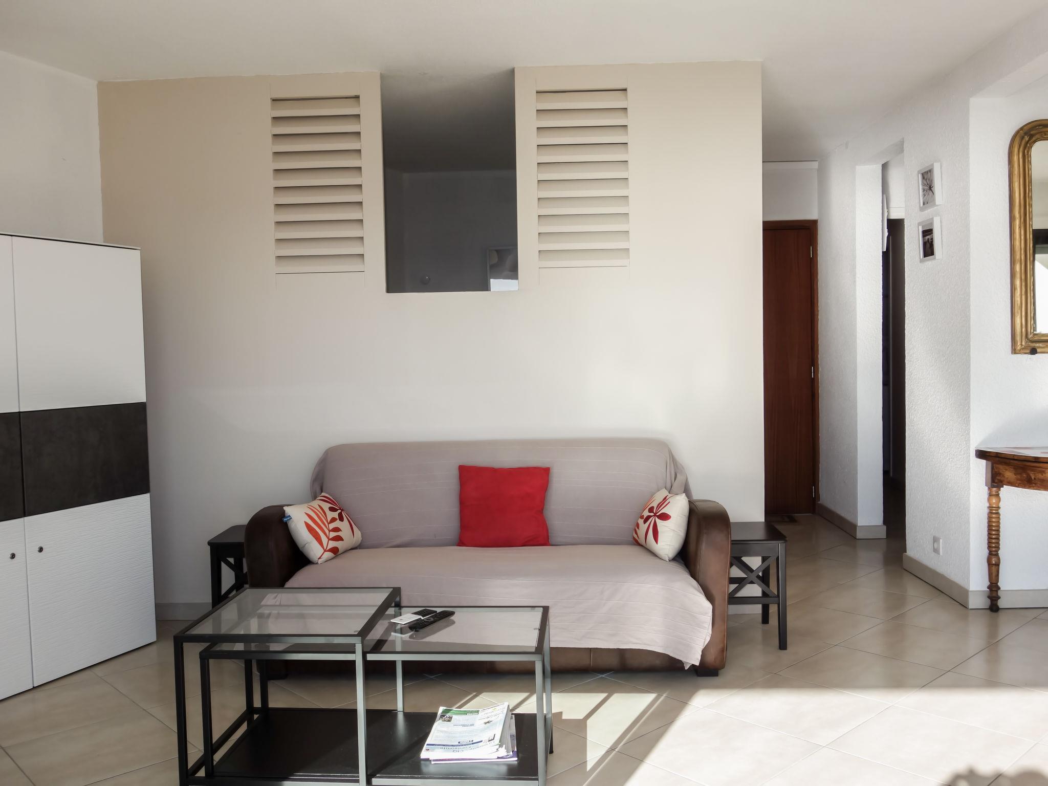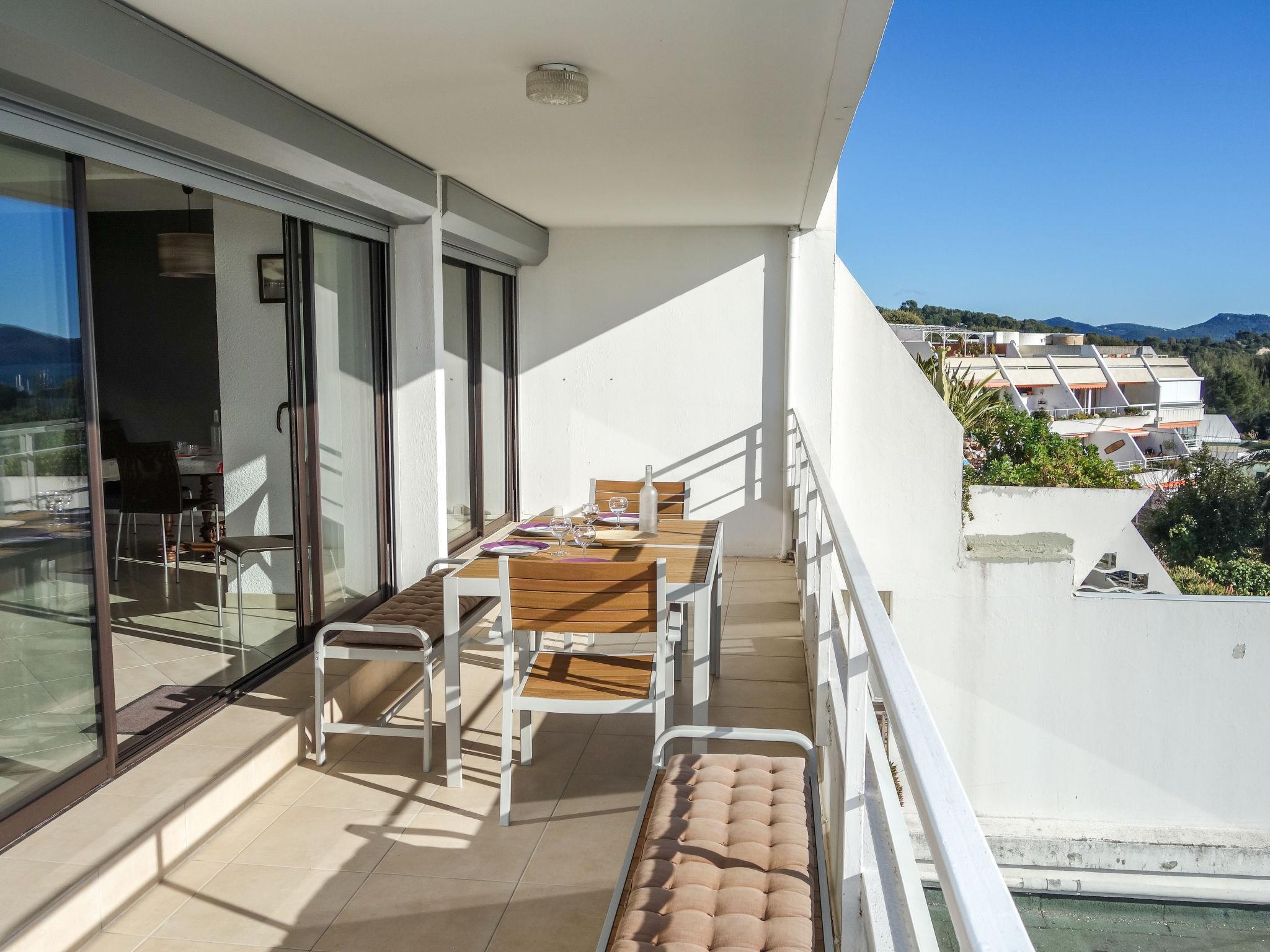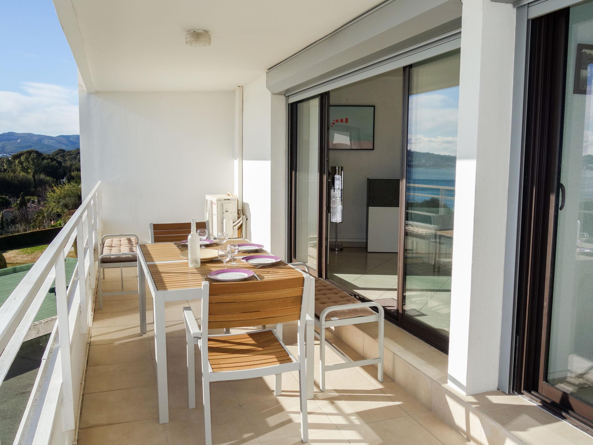 3-room apartment 56 m2 on 1st floor. Comfortable and beautiful furnishings: living/dining room with TV (flat screen), air conditioning. Exit to the terrace. 1 room with 2 beds (90 cm, length 190 cm), TV. 1 small room, window onto the living room with 1 french bed (140 cm, length 190 cm). Open kitchen (oven, dishwasher, 4 induction hot plates, toaster, kettle, microwave, freezer, electric coffee machine, Capsules for coffee machine (SENSEO) extra). Shower, sep. WC. Forced-air heating. Terrace 16 m2, roofed, south-west facing position. Terrace furniture, electric barbecue. Very beautiful panoramic view of the sea. Facilities: washing machine, iron. Internet (WiFi, free). Parking space n 646. Please note: TV only FR. Smoke alarm. 130280000986A