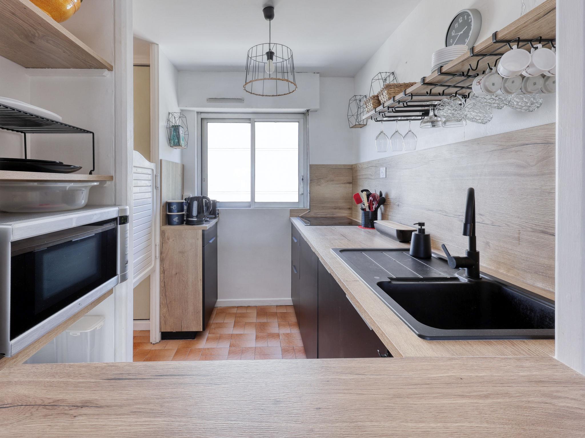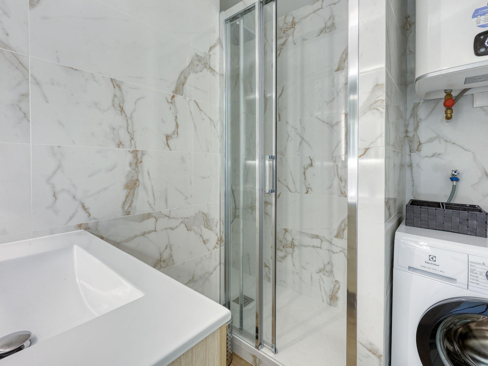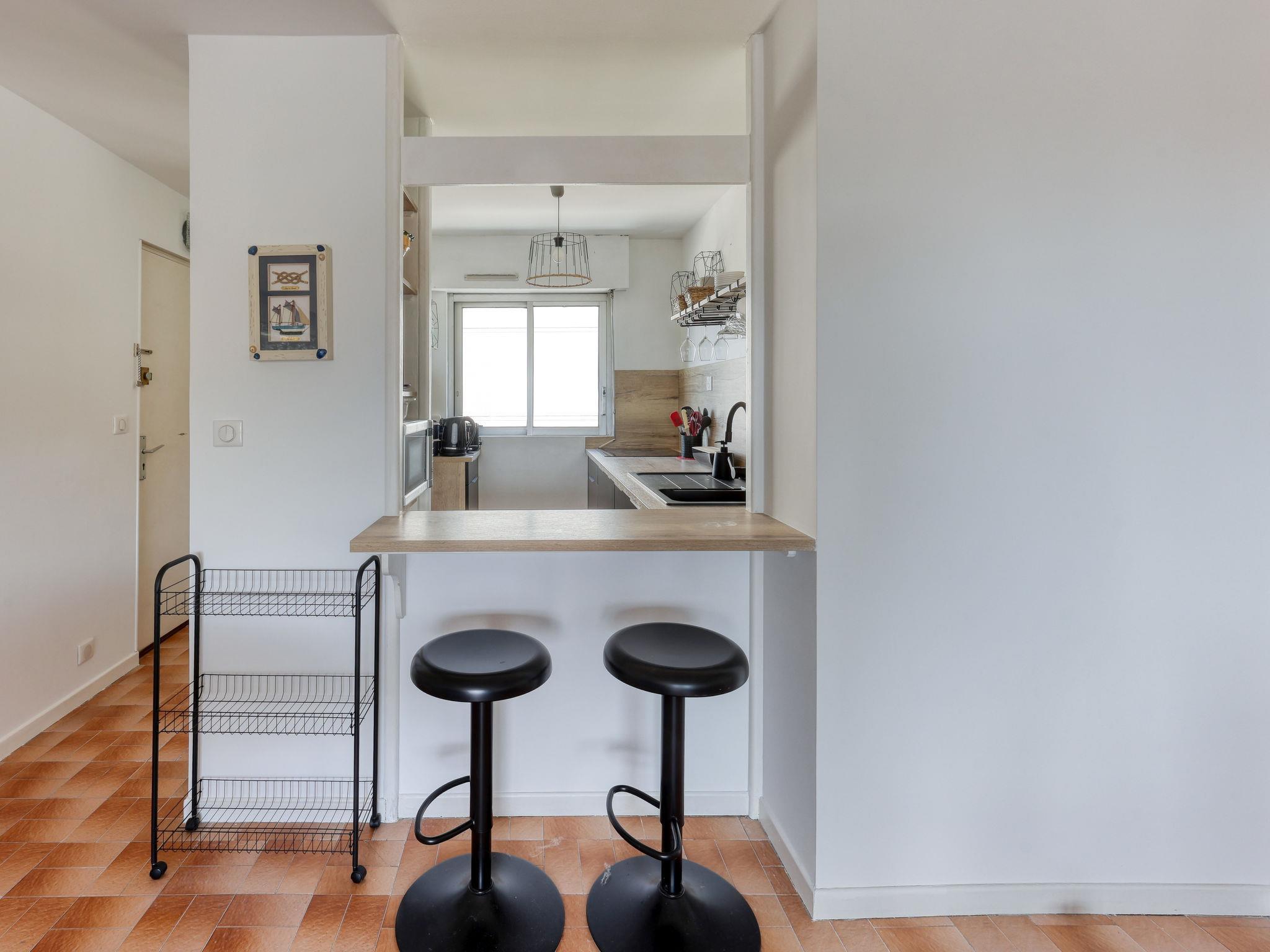 3-room apartment 50 m2 on 2nd floor. Comfortable and beautiful furnishings: living/dining room with TV (flat screen), air conditioning. Exit to the terrace. 1 room with 1 french bed (1 x 140 cm, length 190 cm), air conditioning. 1 room with 2 beds (80 cm, length 190 cm). Open kitchen (dishwasher, 3 induction hot plates, toaster, kettle, microwave, electric coffee machine, Capsules for coffee machine (Nespresso) extra). Shower, sep. WC. Forced-air heating. Terrace 15 m2. Terrace furniture. Side view of the sea. Facilities: washing machine, iron. Internet (WiFi, free). Parking space n 680. Please note: 1 small pet/ dog allowed. TV only FR. Smoke alarm. Offer by a private individual according to Art. 155, IV of CGI. 1302800273713
