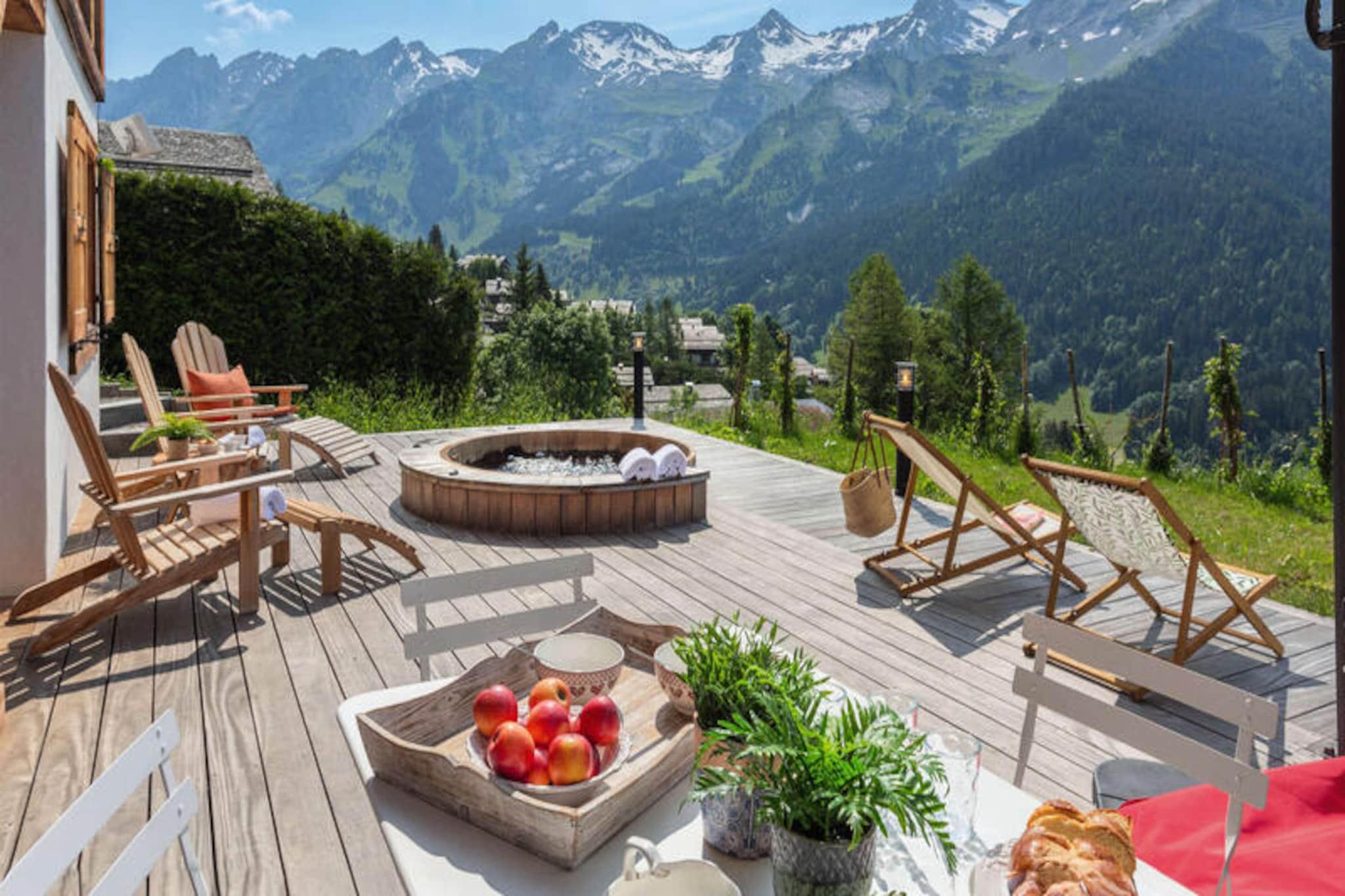 High in the enchanting Aravis mountains, the Arpitan Lodge invites you to experience a luxurious alpine retreat like no other. At an altitude of 1,276 meters, this four-star chalet blends modern elegance with the raw beauty of nature. Imagine waking up to panoramic views of snow-capped peaks from the expansive south-facing terrace, where the crisp mountain air invigorates your senses. Whether you're seeking a serene escape or an active adventure, this chalet offers the perfect balance of comfort and connection to the outdoors. \n\nSpanning 240 m² across three levels, the Arpitan Lodge accommodates up to 10 guests in five beautifully appointed bedrooms, each with its own en-suite bathroom. The first floor boasts a fully equipped kitchen with premium appliances, a dining area for ten, and a cozy living room with a fireplace and SONOS sound system. The outdoor jacuzzi, heated to 37°C, provides the ultimate relaxation after a day on the slopes or exploring the trails. Additional amenities include a garage with a boot dryer, a TV lounge with games, and a summer barbecue for warmer months. \n\nConveniently located just 2 km from the slopes and 2.7 km from the charming town center of La Clusaz, the chalet is perfectly positioned for both winter sports enthusiasts and summer adventurers. A ski shuttle is only 220 meters away, ensuring easy access to the region's renowned ski areas. In summer, the surrounding trails and lush landscapes offer endless opportunities for hiking, biking, and wildlife spotting. \n\nWhether you're soaking in the jacuzzi under a starlit sky or savoring a raclette dinner by the fire, the Arpitan Lodge promises an unforgettable alpine getaway. Let the magic of the Aravis mountains create memories that will last a lifetime.