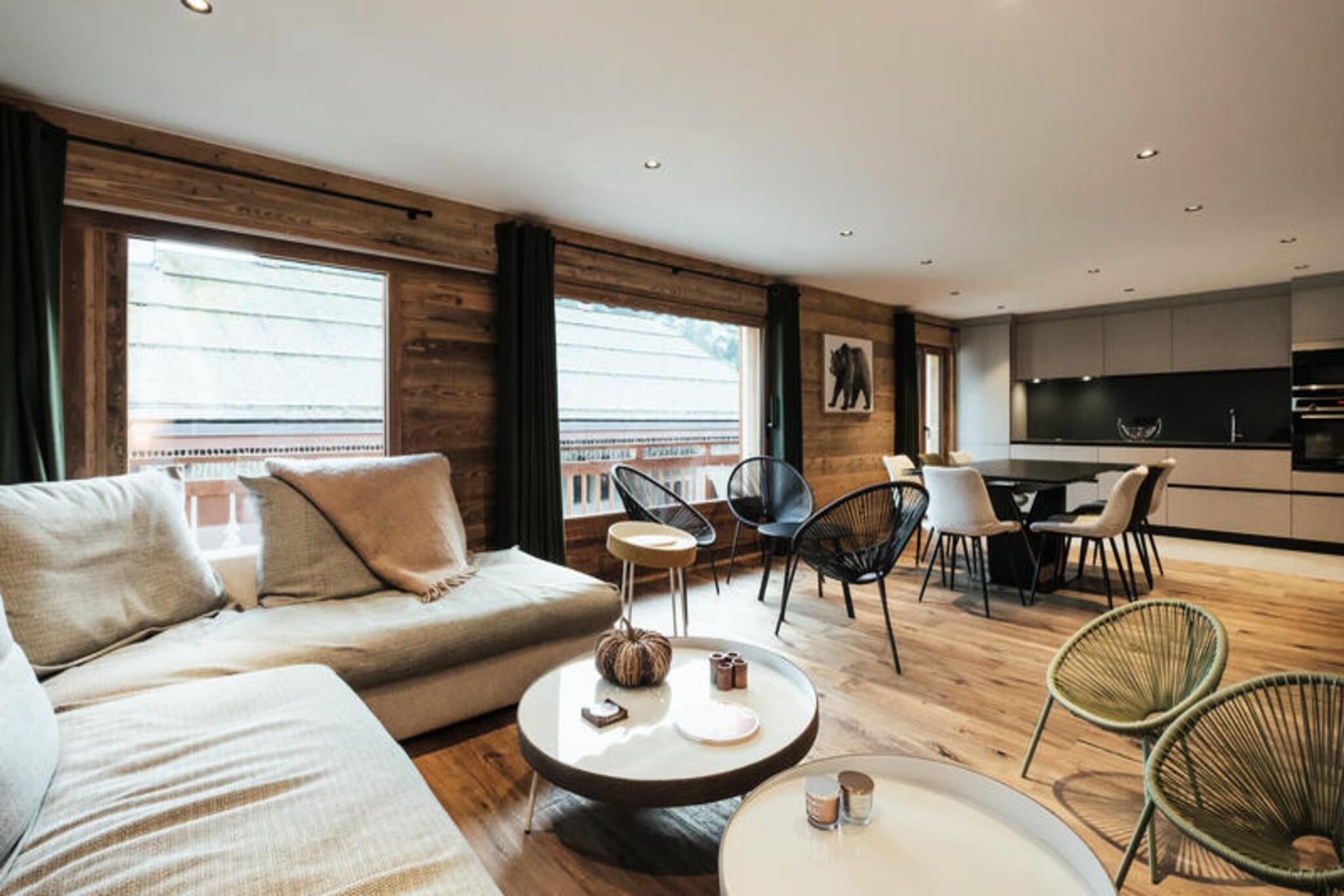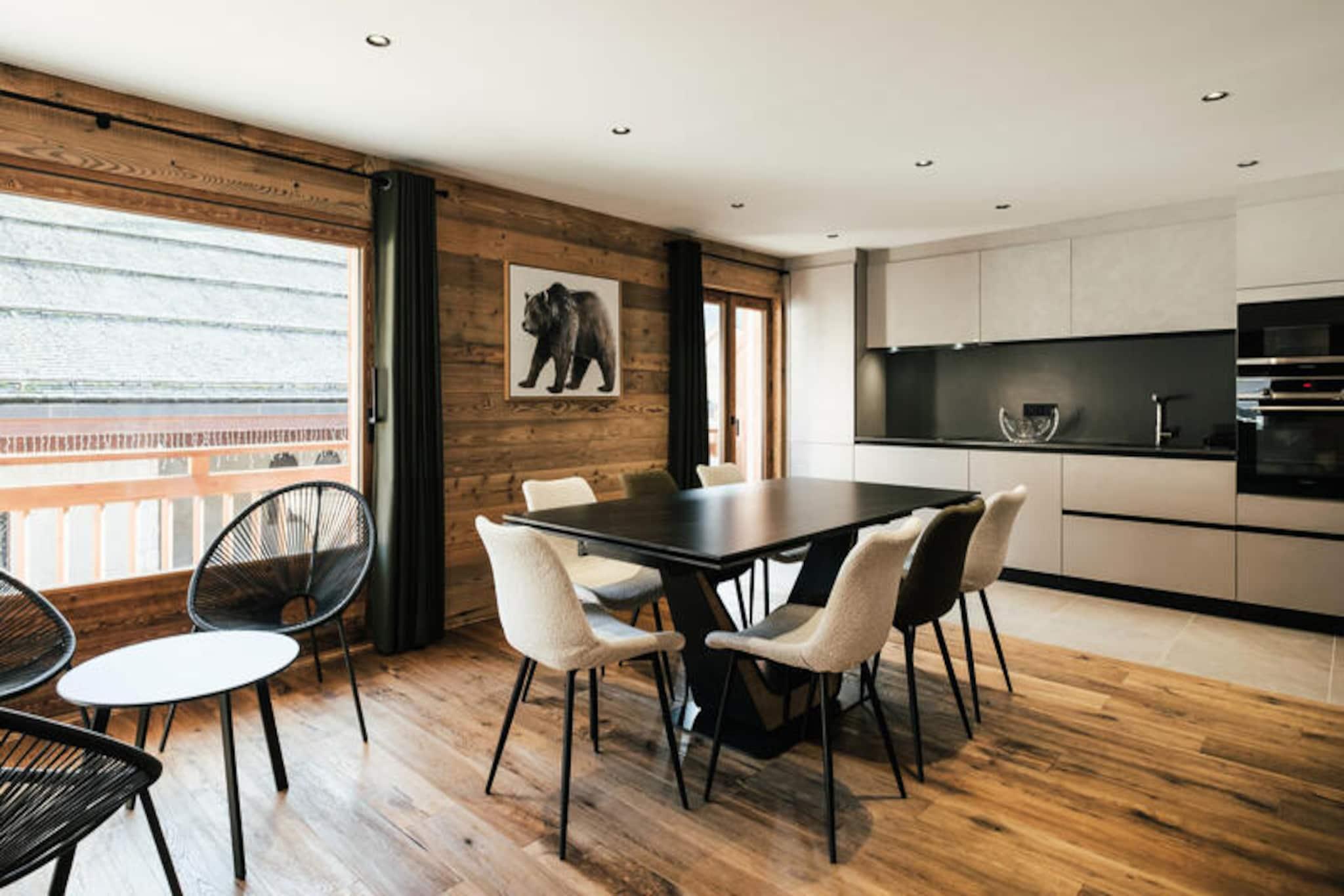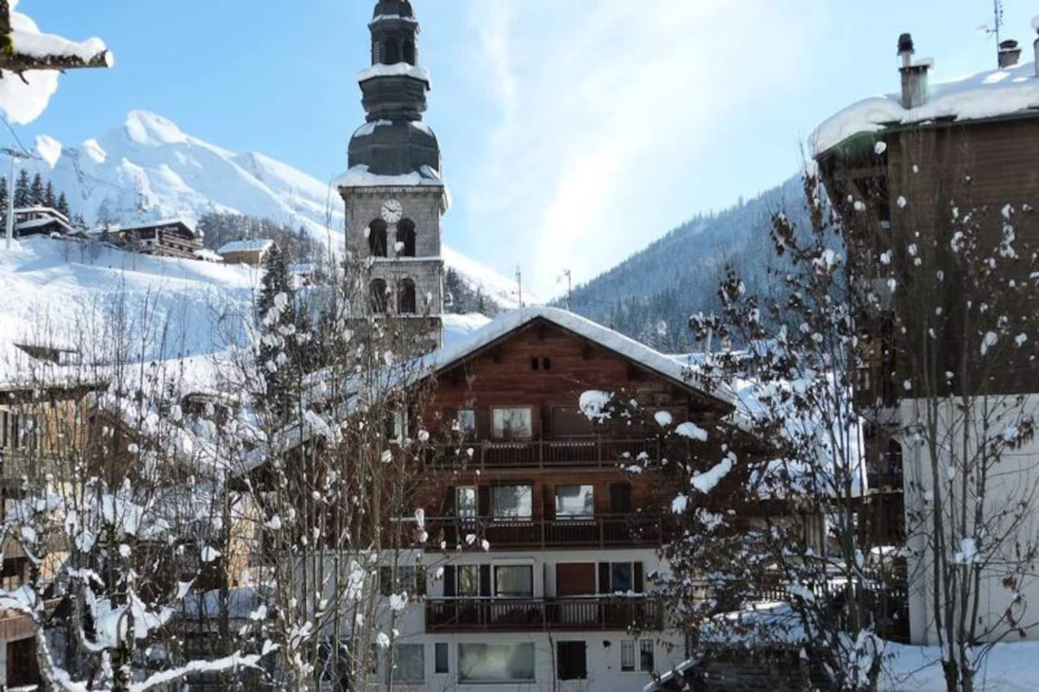 In the vibrant heart of the picturesque village, this charming residence offers a perfect blend of modern comfort and alpine tradition. Just steps from the iconic church, it places you at the center of everything, with the Champ Giguet ski school departure point only 130 meters away and the Beauregard gondolas within a short 150-meter stroll. Whether you're here for winter sports or summer leisure, the location ensures convenience and immersion in the local charm, with a shuttle stop just 30 meters away in winter and 400 meters in summer. \n\nInside, the spacious 91 m² apartment is thoughtfully designed to accommodate up to seven guests. The living area, bathed in natural light, features a cozy seating space, a flat-screen TV, and access to a south-facing balcony with enchanting views of the church and surrounding mountains. The open kitchen is fully equipped with modern appliances, including an induction hob, oven, microwave, and Nespresso machine, making it easy to prepare meals after a day of adventure. Three comfortable bedrooms provide restful retreats, including a master suite with an en-suite bathroom and private balcony overlooking serene green spaces and a gentle stream. \n\nBeyond the residence, you'll find a wealth of activities and amenities. Ski enthusiasts will appreciate the proximity to the slopes, while summer visitors can enjoy the nearby leisure center, ice rink, and scenic hiking trails. Restaurants and shops are conveniently located below the building, and the vibrant village atmosphere ensures there's always something to explore. For those seeking a lively evening, a nightclub is just next door, adding to the dynamic appeal of this location. \n\nWith its unbeatable location, spacious interiors, and thoughtful amenities like a ski room with boot and glove dryers, this residence is the ideal base for creating unforgettable memories in the French Alps. Whether you're drawn by the thrill of the slopes or the tranquility of the mountains, this home offers a warm and welcoming retreat for every season.