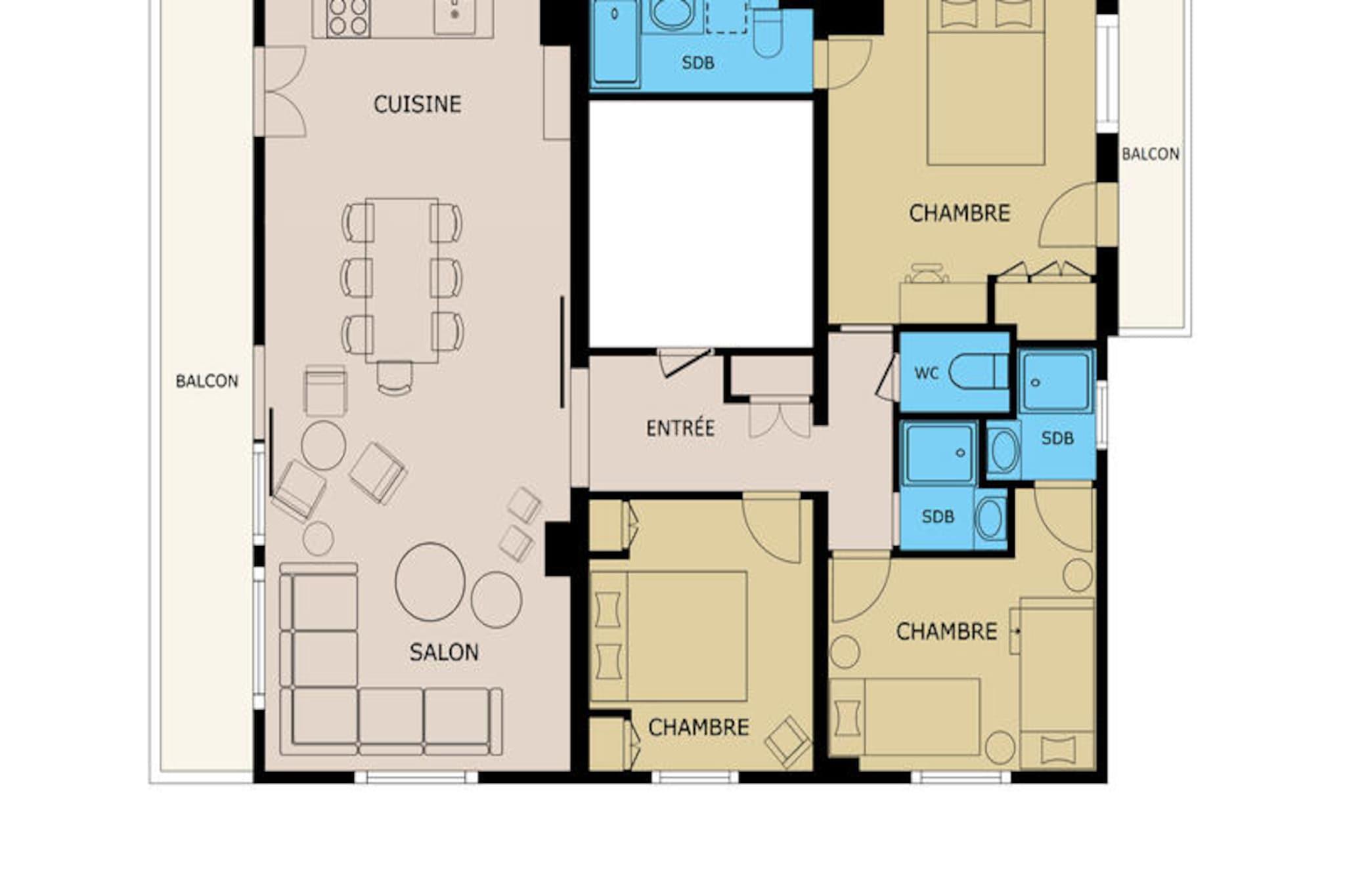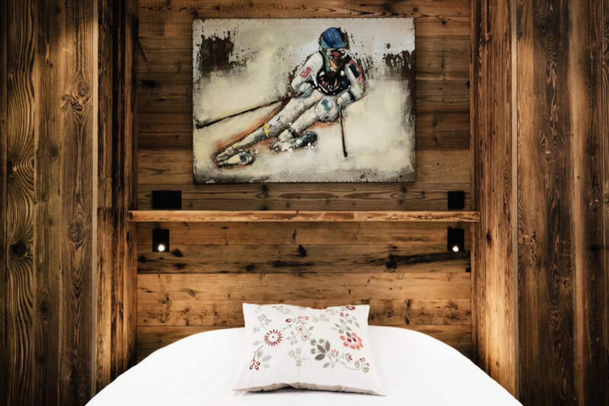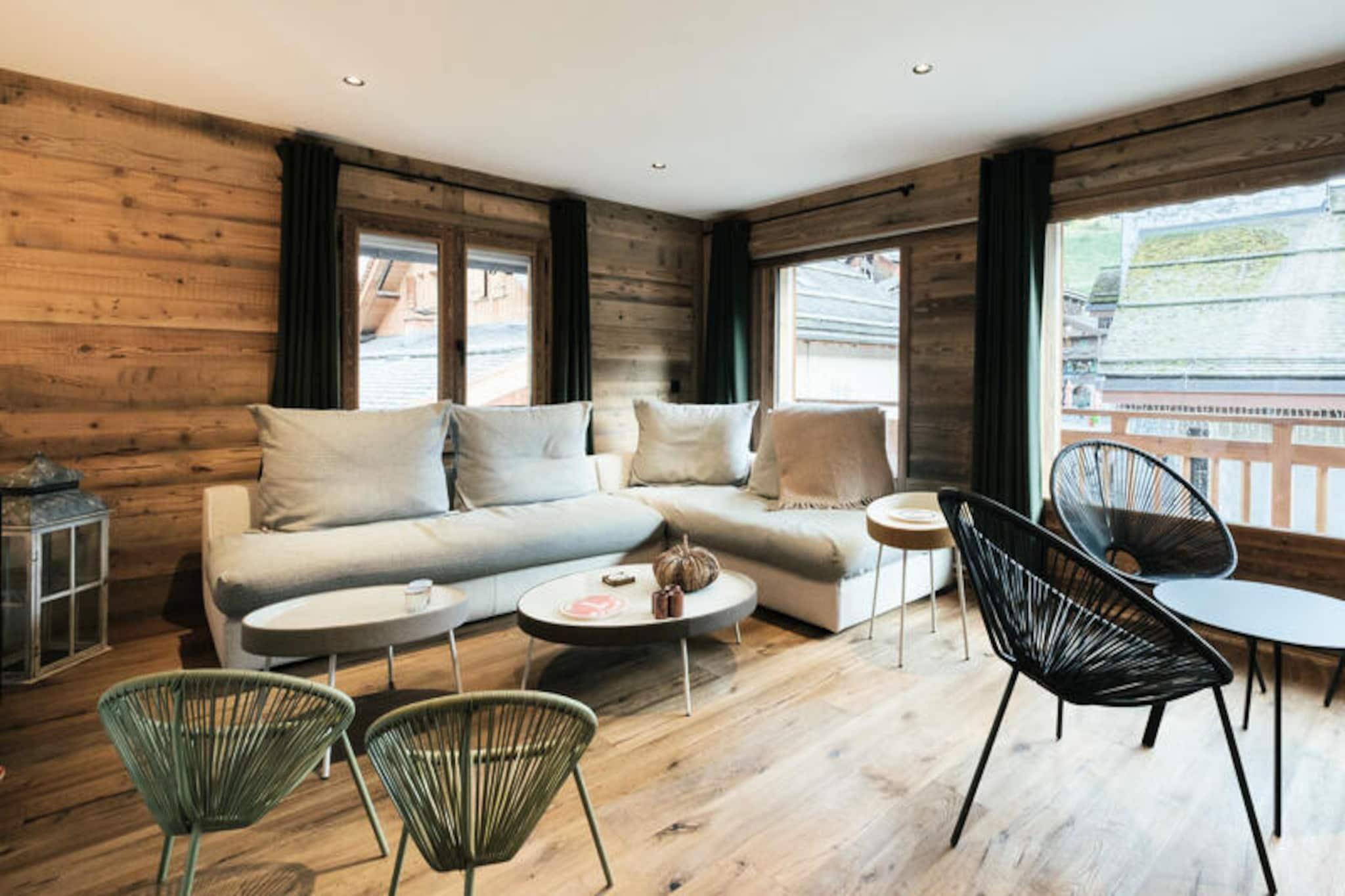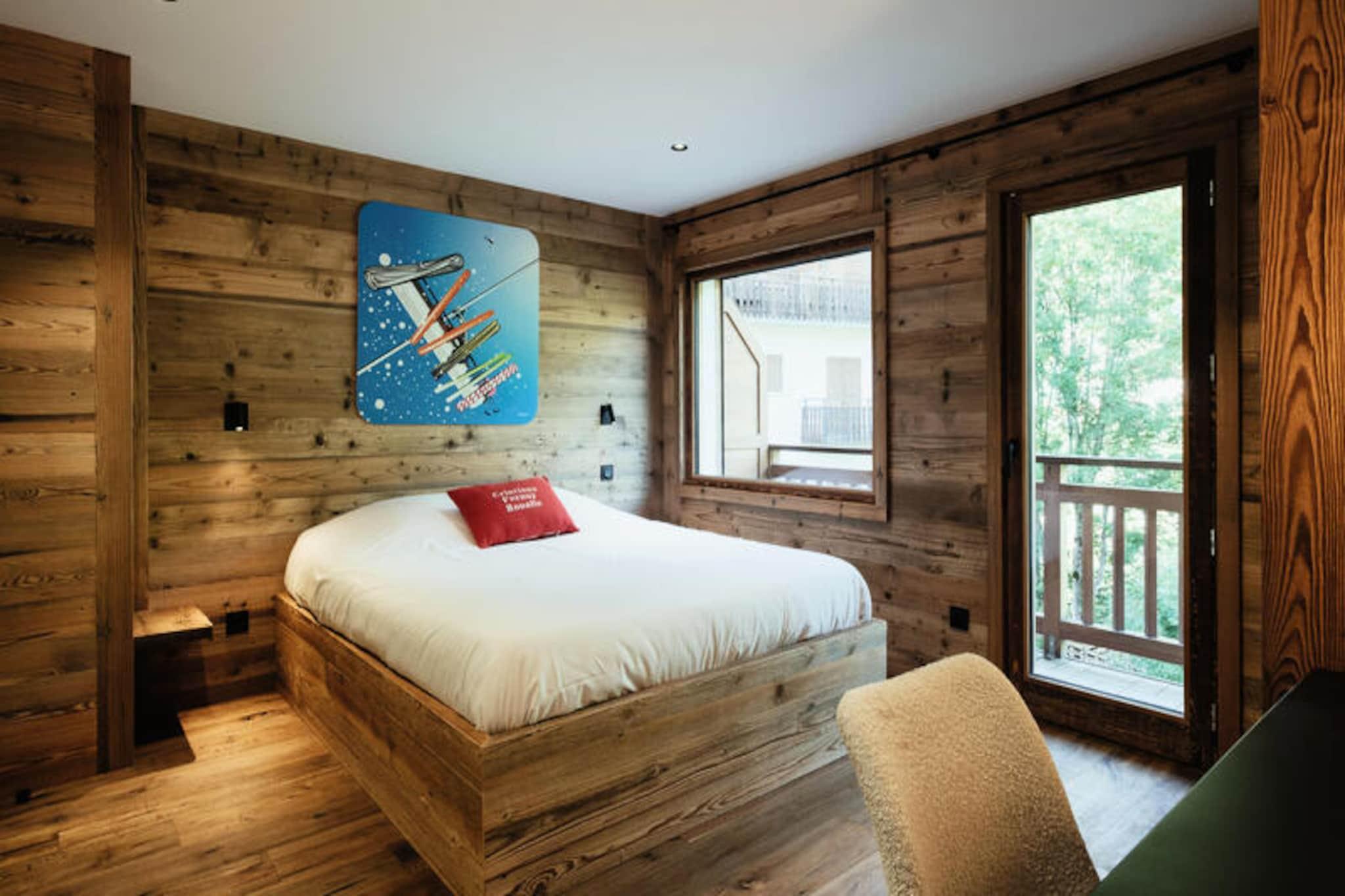 In the vibrant heart of the picturesque village, this charming residence offers a perfect blend of modern comfort and alpine tradition. Just steps from the iconic church, it places you at the center of everything, with the Champ Giguet ski school departure point only 130 meters away and the Beauregard gondolas within a short 150-meter stroll. Whether you're here for winter sports or summer leisure, the location ensures convenience and immersion in the local charm, with a shuttle stop just 30 meters away in winter and 400 meters in summer. \n\nInside, the spacious 91 m² apartment is thoughtfully designed to accommodate up to seven guests. The living area, bathed in natural light, features a cozy seating space, a flat-screen TV, and access to a south-facing balcony with enchanting views of the church and surrounding mountains. The open kitchen is fully equipped with modern appliances, including an induction hob, oven, microwave, and Nespresso machine, making it easy to prepare meals after a day of adventure. Three comfortable bedrooms provide restful retreats, including a master suite with an en-suite bathroom and private balcony overlooking serene green spaces and a gentle stream. \n\nBeyond the residence, you'll find a wealth of activities and amenities. Ski enthusiasts will appreciate the proximity to the slopes, while summer visitors can enjoy the nearby leisure center, ice rink, and scenic hiking trails. Restaurants and shops are conveniently located below the building, and the vibrant village atmosphere ensures there's always something to explore. For those seeking a lively evening, a nightclub is just next door, adding to the dynamic appeal of this location. \n\nWith its unbeatable location, spacious interiors, and thoughtful amenities like a ski room with boot and glove dryers, this residence is the ideal base for creating unforgettable memories in the French Alps. Whether you're drawn by the thrill of the slopes or the tranquility of the mountains, this home offers a warm and welcoming retreat for every season.