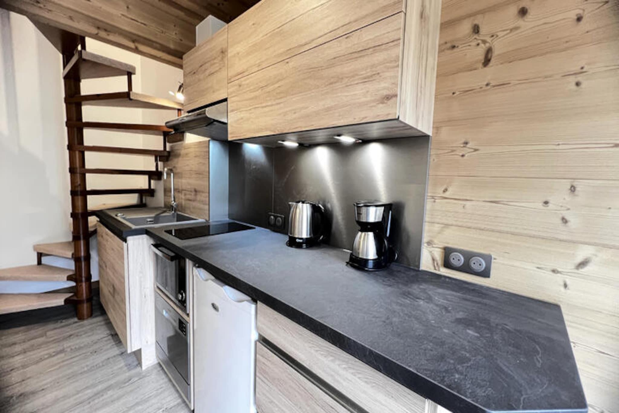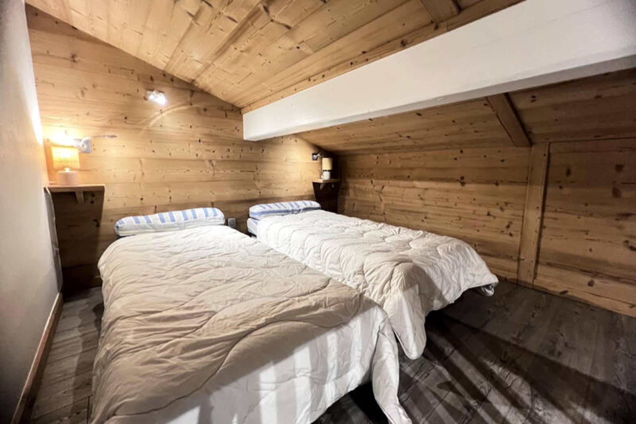 In the serene Riffroids district of La Clusaz, this charming chalet apartment offers a cozy alpine retreat with breathtaking views and an unbeatable location. Just 350 meters from the village center and Champ Giguet, and only 250 meters from the ski slopes, it’s the perfect base for both winter sports enthusiasts and those seeking a tranquil mountain escape. The peaceful surroundings and the picturesque scenery create a truly relaxing atmosphere, ideal for recharging and enjoying the beauty of the Alps. \n\nThis thoughtfully renovated apartment, completed in 2025, comfortably accommodates up to four guests. The living room features a comfortable sofa, armchairs, and a television, with French doors leading to an east-facing balcony that invites you to soak in the morning sun and the stunning alpine views. The fully equipped kitchen includes a 2-burner induction hob, multi-function oven, refrigerator, and dishwasher, making it easy to prepare delicious meals after a day of adventure. Upstairs, the cozy bedrooms include two single beds that can be joined to form a double, as well as an additional open loggia area with two single beds. The attic bathroom, with its charming skylight, adds to the apartment’s unique character.\n\nWith its proximity to the slopes and the village, you’ll have everything you need within walking distance. Whether you’re skiing in winter or exploring the lush mountain trails in summer, La Clusaz offers a wealth of activities to suit every season. The apartment also includes convenient amenities such as a ski locker, shared Wi-Fi, and on-site parking. For added convenience, guests can take advantage of services like linen rentals and end-of-stay cleaning.\n\nThis delightful alpine retreat combines comfort, charm, and an unbeatable location, making it the perfect choice for your next mountain getaway. Whether you’re here to carve through fresh powder or simply relax and take in the stunning surroundings, this chalet apartment promises an unforgettable stay.