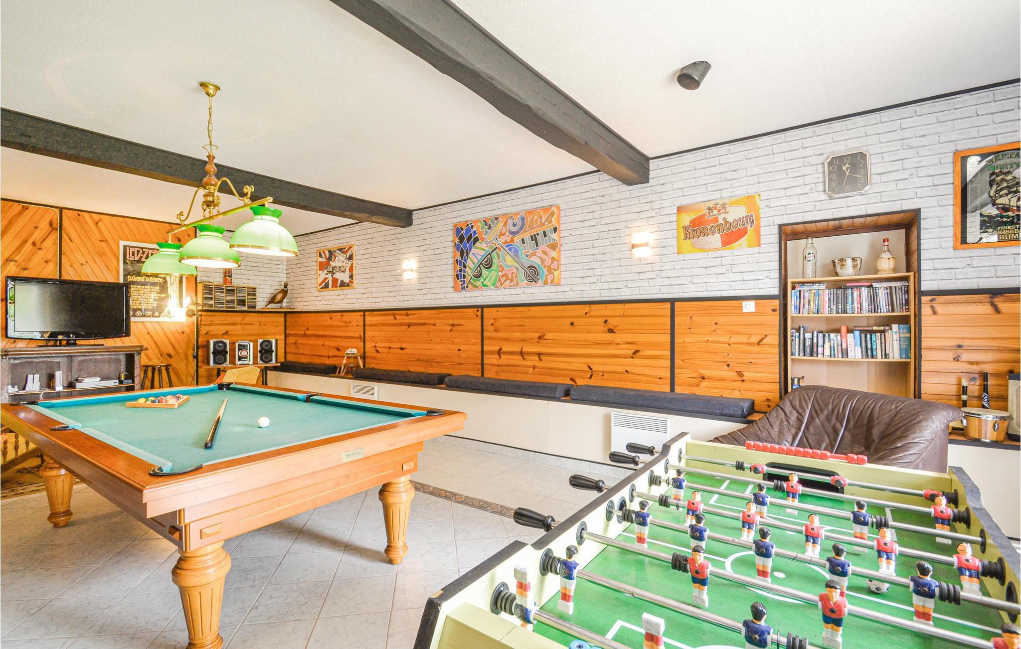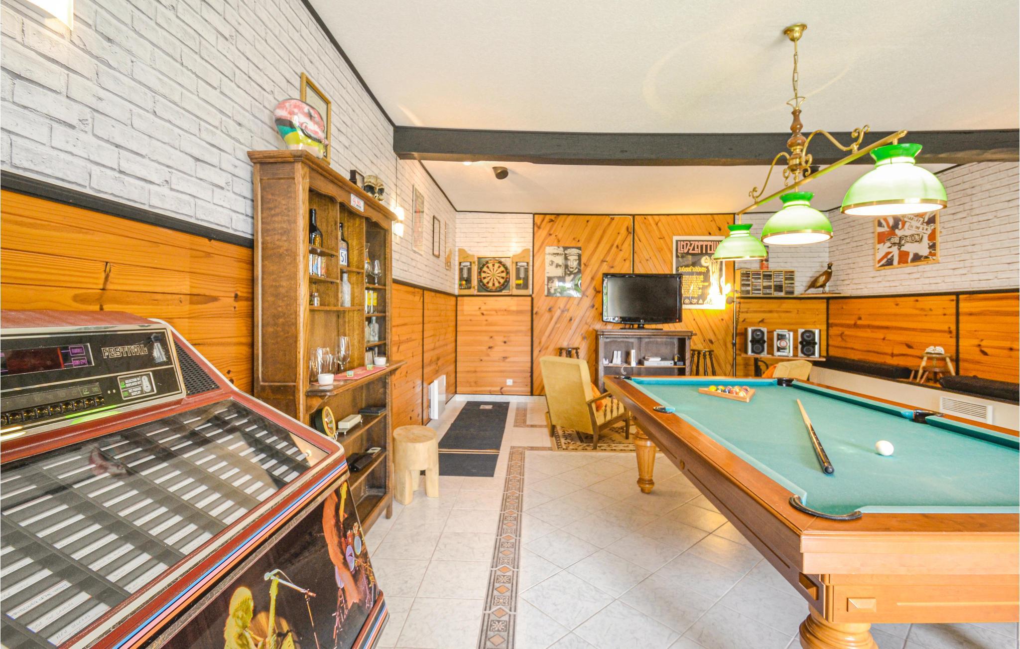 Ihre Ferienwohnung bietet viel Platz und ist daher für Familien geeignet. Machen Sie es sich im Wohnbereich gemütlich, der mit Sofa, Sesseln und Fernseher ausgestattet ist. Nutzen Sie die schöne Küche mit Esstisch, die praktisch eingerichtet ist, und bereiten Sie Ihre Mahlzeiten in geselliger Atmosphäre zu. Entdecken Sie die beiden großen Aktivitätsräume im Erdgeschoss. Spielen Sie Billard, Tischtennis, Tischfußball oder Darts und stöbern Sie in der Sammlung von Büchern, CDs und DVDs. Verbringen Sie abwechslungsreiche Stunden unabhängig vom Wetter und gestalten Sie Ihre Freizeit aktiv.