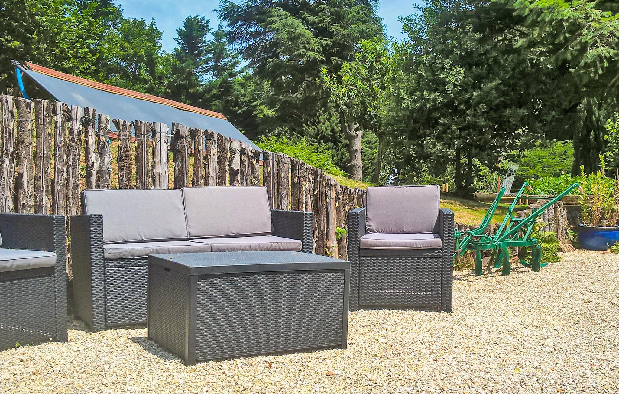 Treten Sie hinaus in den weitläufigen Garten, der mit einer Terrasse und Sitzgelegenheiten ausgestattet ist. Nutzen Sie den privaten Pool für eine Erfrischung an warmen Tagen oder entspannen Sie im Schatten. Der Außenbereich bietet viel Platz, um sich zurückzuziehen oder Zeit in der Sonne zu verbringen.