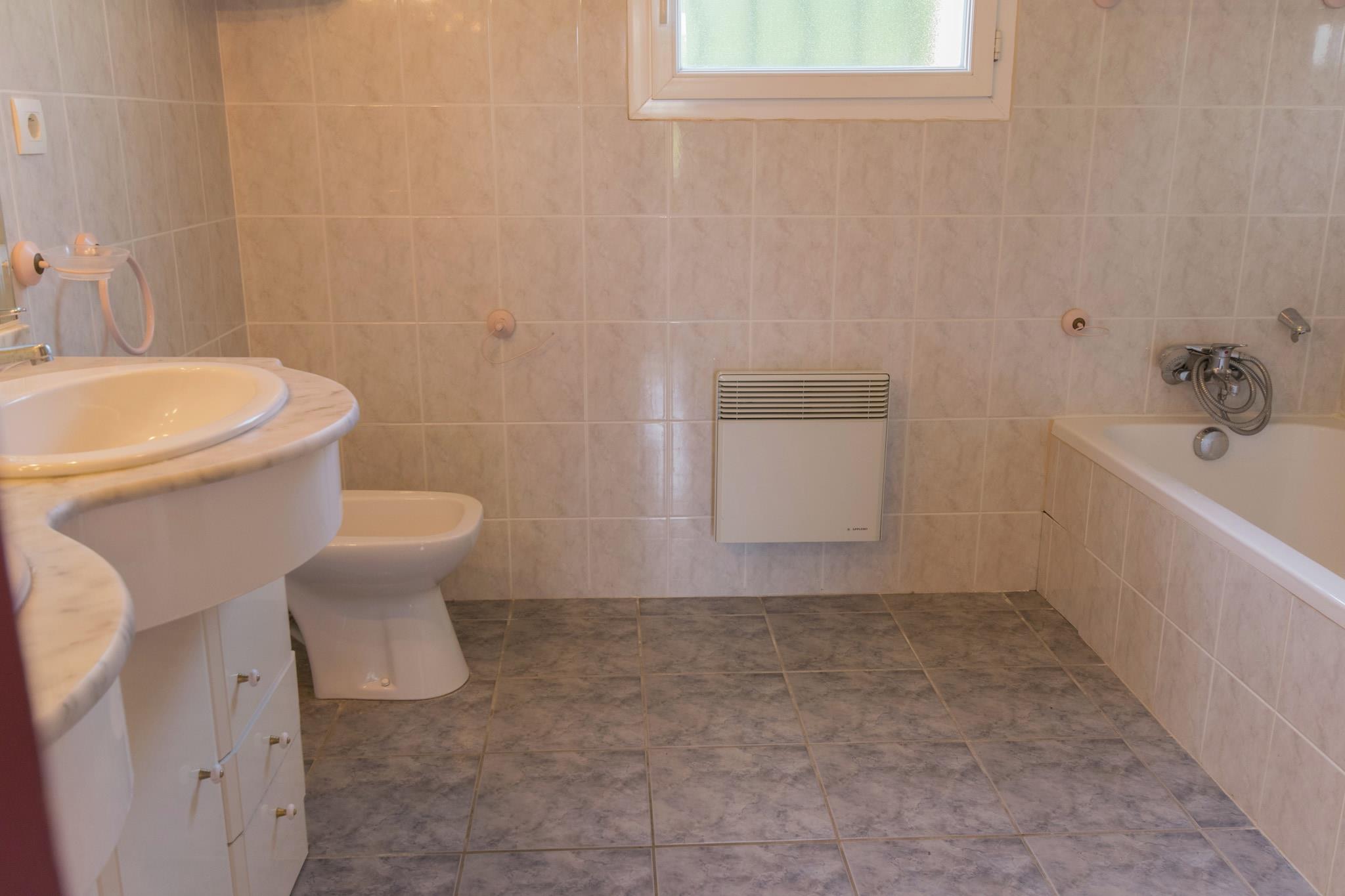 Ground floor: (Kitchen(electric kettle, toaster, cooker(4 ring stoves), coffee machine(filter), oven, microwave, dishwasher, fridge-freezer), Living/diningroom(TV(flatscreen, satellite, dutch television channels, international television channels), dining table(8 persons), CD player), bedroom(double bed(twin duvet , synthetics)), bedroom(bunk bed), bedroom(2x bunk bed(duvet, synthetics)), bathroom(bath tub, shower, 2x washbasin, bidet), toilet) garage, tumble dryer, washing machine, heating(electric), terrace(private), garden(private, fenced, > 1000 m2), garden furniture(8 persons), sun loungers, BBQ, parking, parasol, swimming pool(private, 10 x 5 m.), table tennis table, bicycles available, children's bed, high chair, ironing board, iron