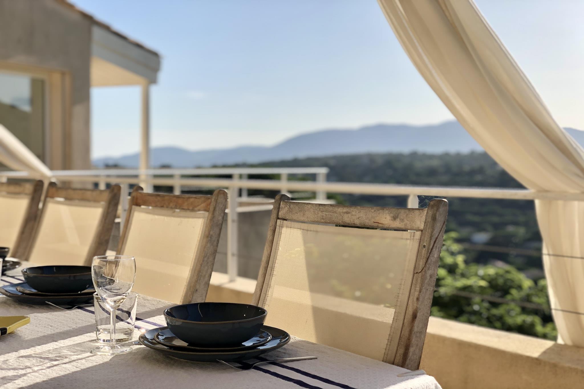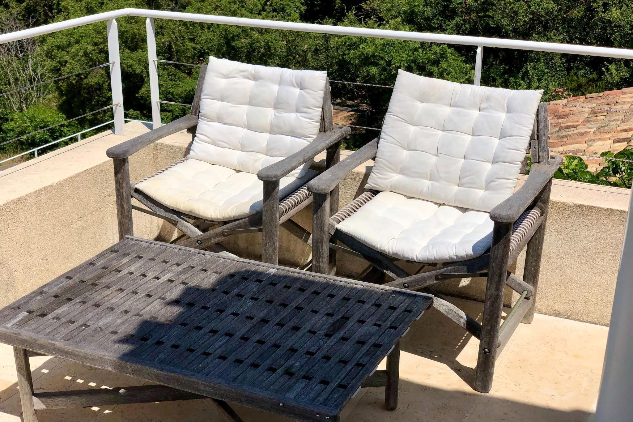 Located in the heart of the French Riviera, this luxury 4-bedroom villa in La Croix-Valmer is perfect for families or groups of up to 10 guests. Surrounded by sea views and pine forests, the villa features a private swimming pool, a fenced garden, and multiple terraces across different levels, offering privacy and stunning panoramas of the Mediterranean. Just 5 km away, you’ll find the sandy beaches of Gigaro and Pampelonne, perfect for sunbathing or swimming. For a taste of local life, visit the famous Sunday market in La Croix-Valmer or grab fresh pastries at the nearby bakery. Looking for some glamour? A short drive will take you to iconic Saint-Tropez, where the jet-set lifestyle awaits. Inside, the villa is sleek and modern with floor-to-ceiling glass that fills the home with natural light. Art pieces throughout the house—indoors and outdoors—add elegance and character. Whether you're lounging in a hammock on the rooftop terrace, enjoying a meal alfresco, or watching the kids splash in the pool, this home offers the perfect mix of style, comfort, and relaxation for your Côte d’Azur getaway.