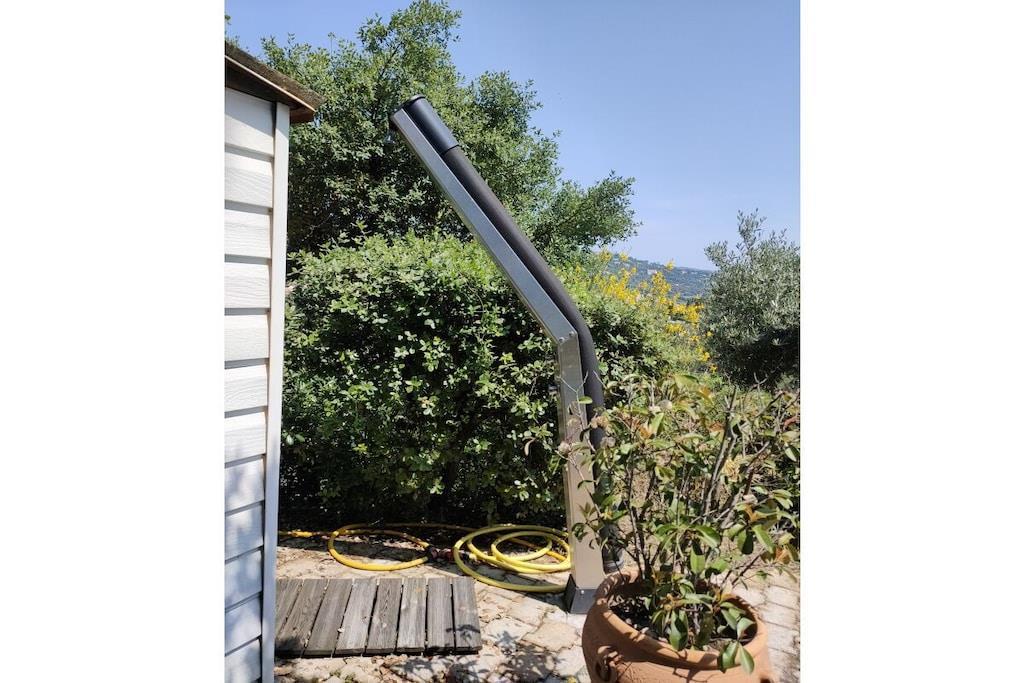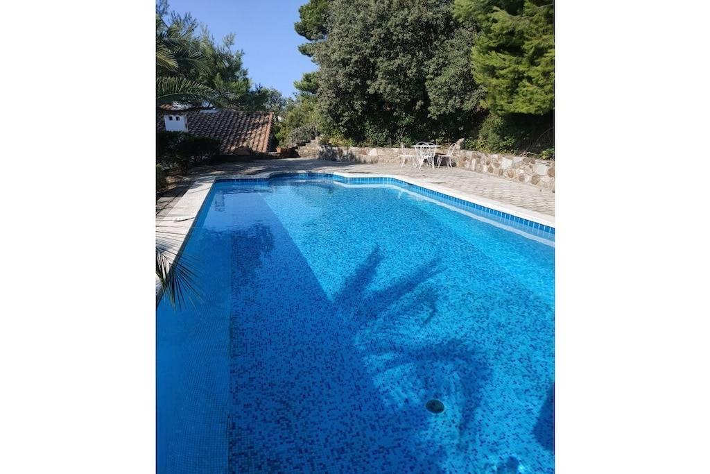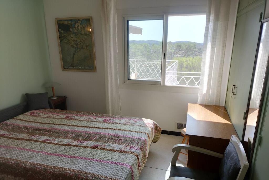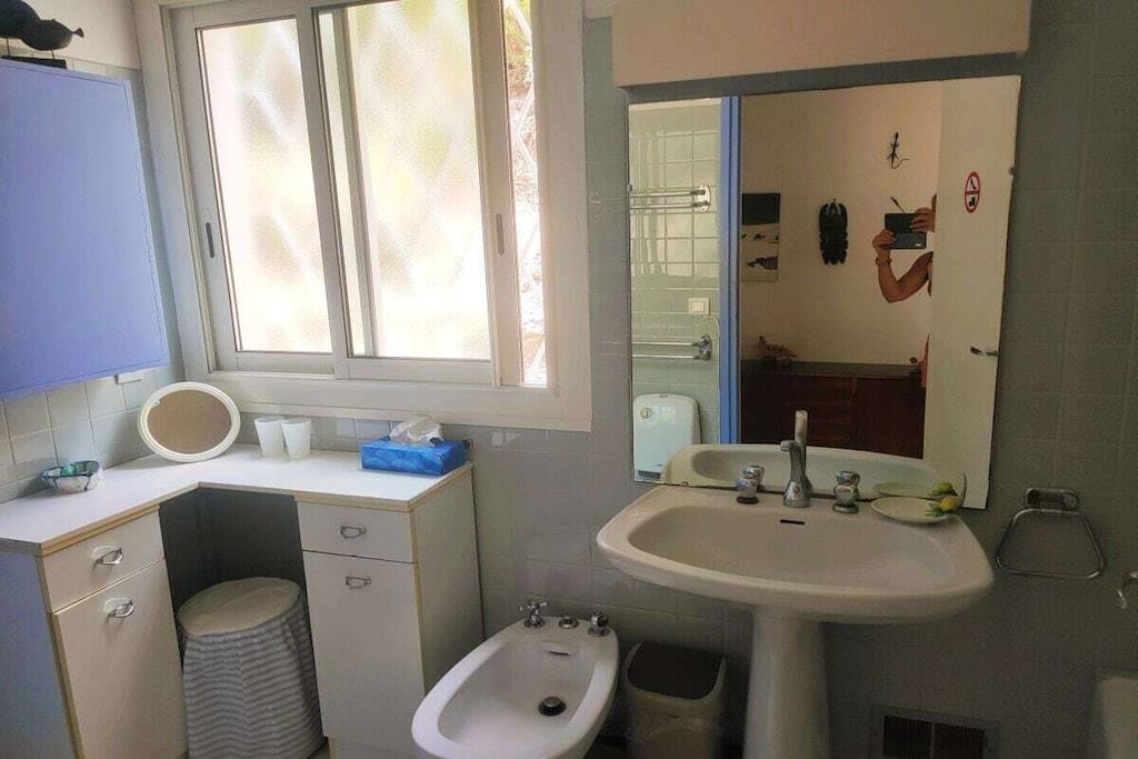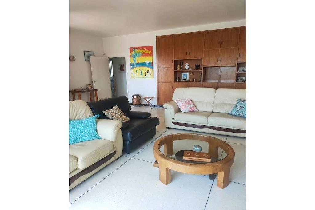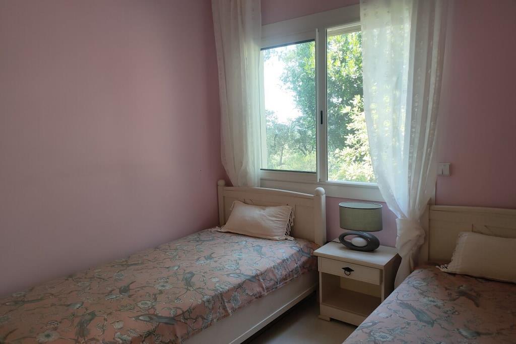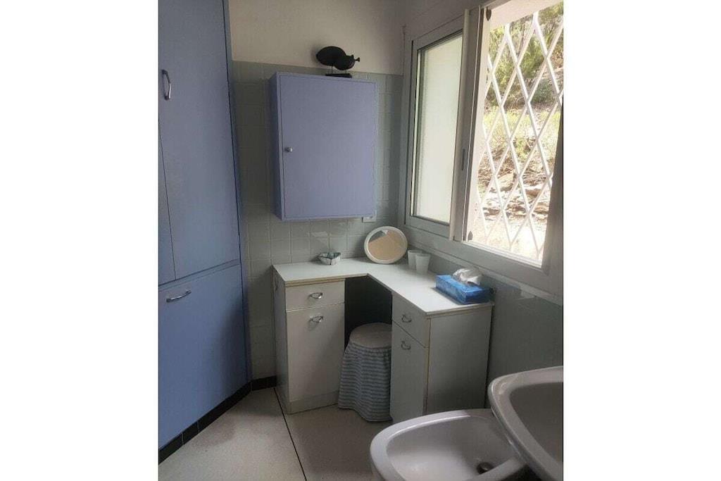 Three bedrooms, one of which has a shower and sink, a spacious living room, dining room, bathroom, and a separate toilet with a window. The three bedrooms and the window of the pink bathroom and toilet have fly screens. Depending on the wind direction, you can hear the sea. A separate studio for two people with a kitchenette and bathroom with toilet. Parking for up to four cars on a closed property with an automatic gate. The kitchen is fully equipped and has everything you need. A brick outdoor grill is located on the terrace. A Jacuzzi for two people is also located on the terrace. A second terrace with a dining table, bench, and chairs, and of course, a sea view, is also available.