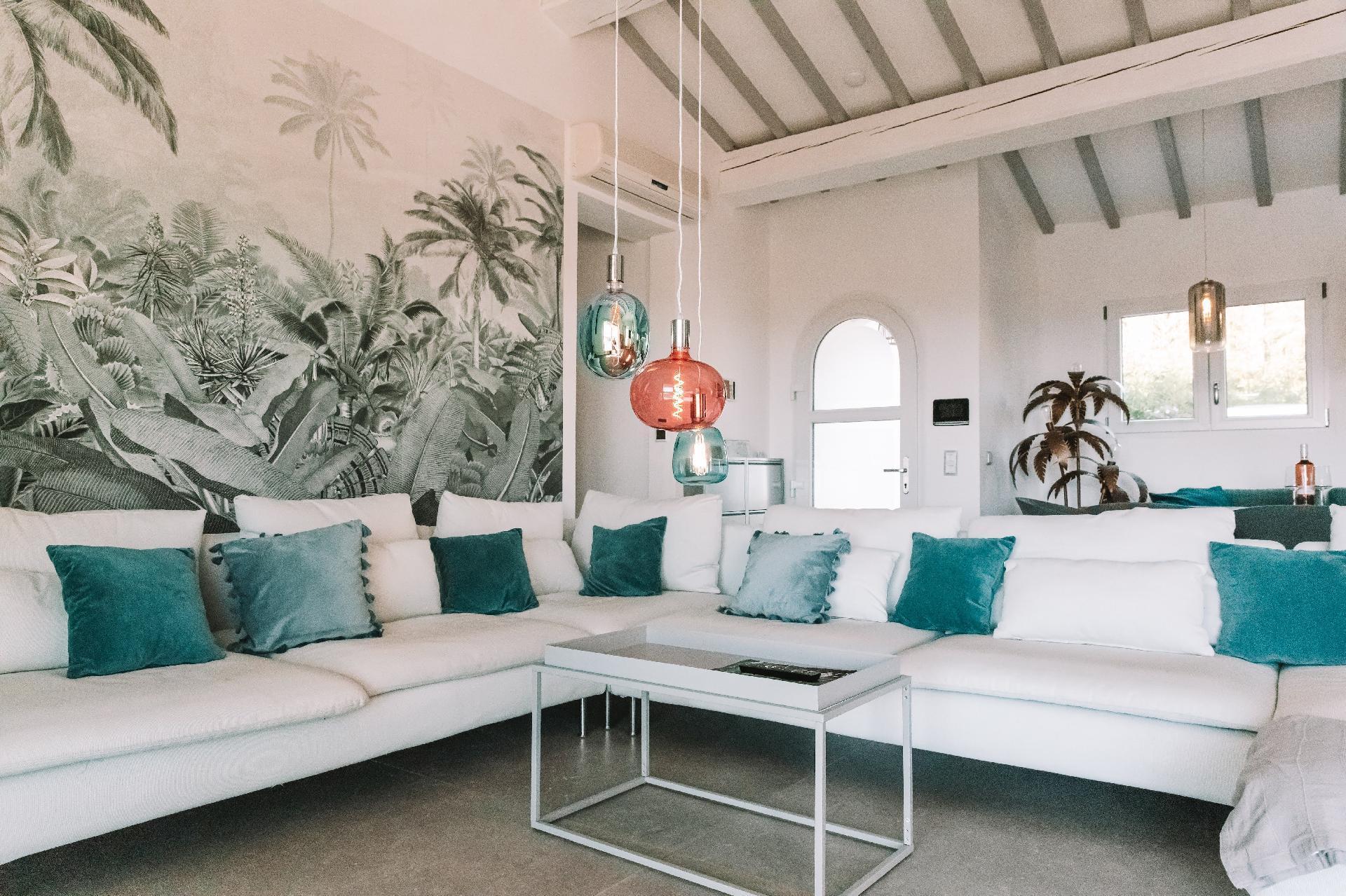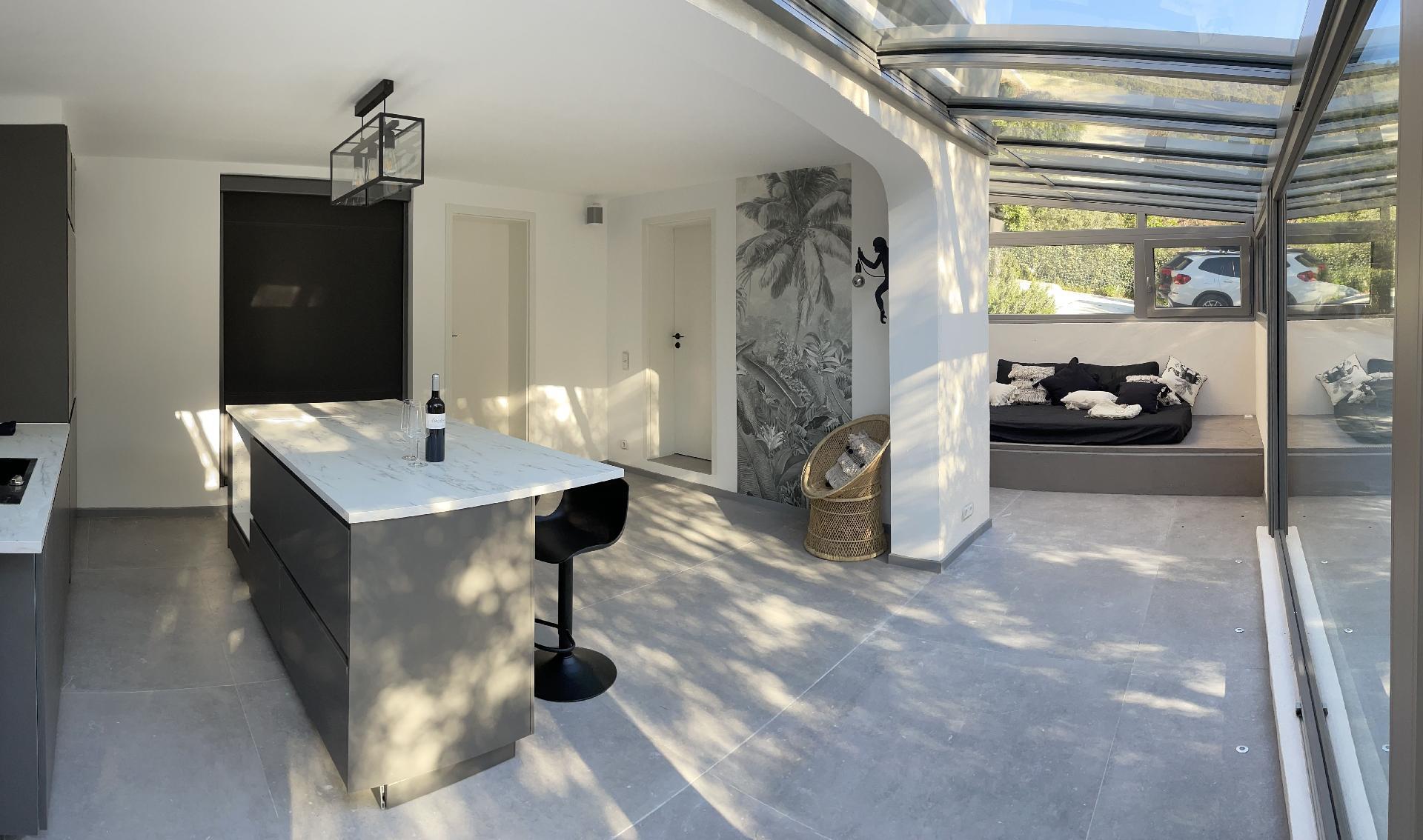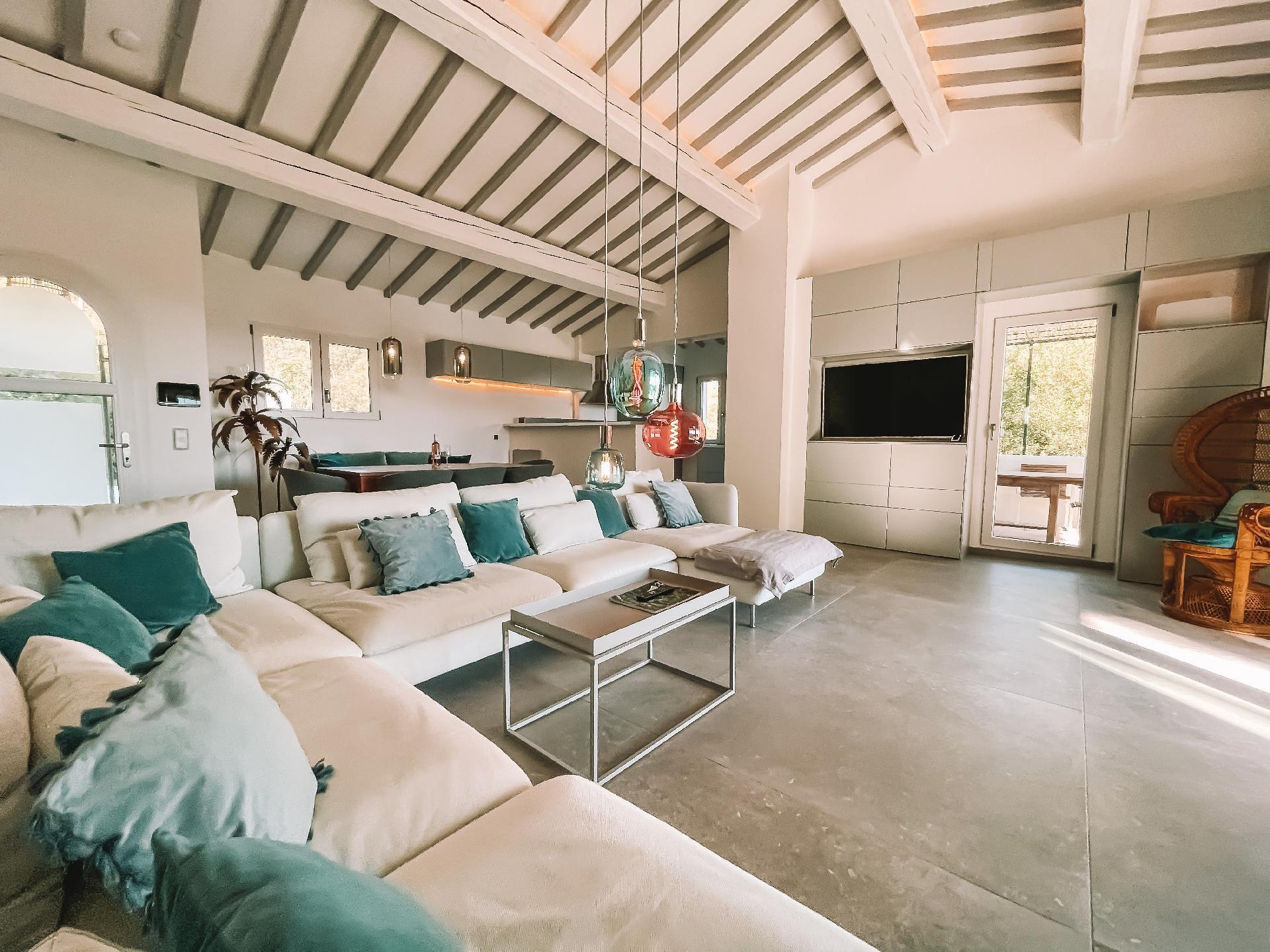 Im Inneren sorgt eine effektive Klimaanlage in allen Zimmern dafür, dass Sie sich auch an den heißesten Tagen der Region wohl und erfrischt fühlen. Für kühlere Tage gibt es eine integrierte Fußbodenheizung, die eine angenehme Wärme verbreitet. Zur hochwertigen Ausstattung gehören unter anderem eine Waschmaschine, ein Wäschetrockner, eine Induktionskochplatte und ein Kamin im Wintergarten, die gemeinsam mit der Kapsel-Kaffeemaschine und einer Geschirrspülmaschine Ihren Aufenthalt so angenehm wie möglich machen.