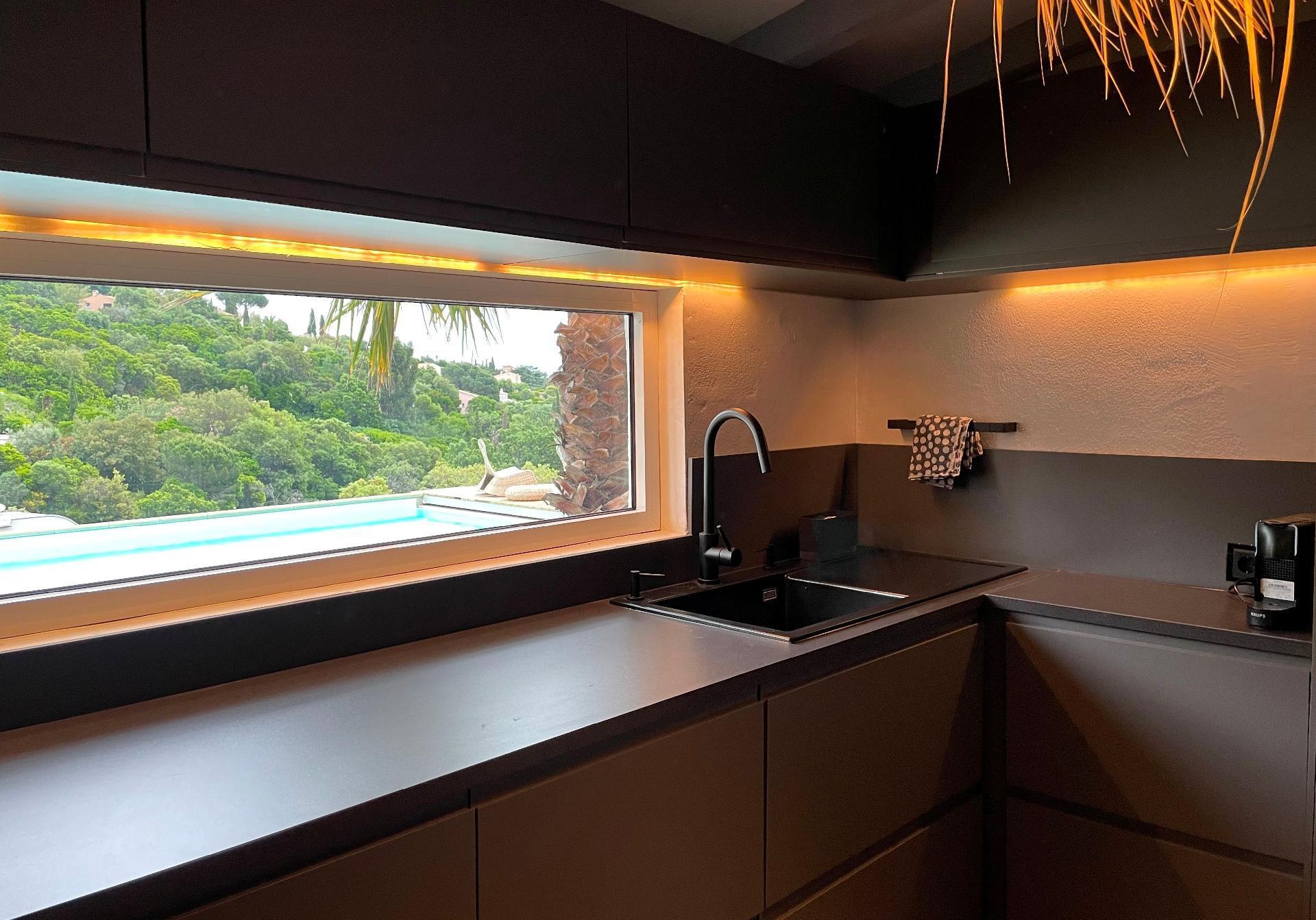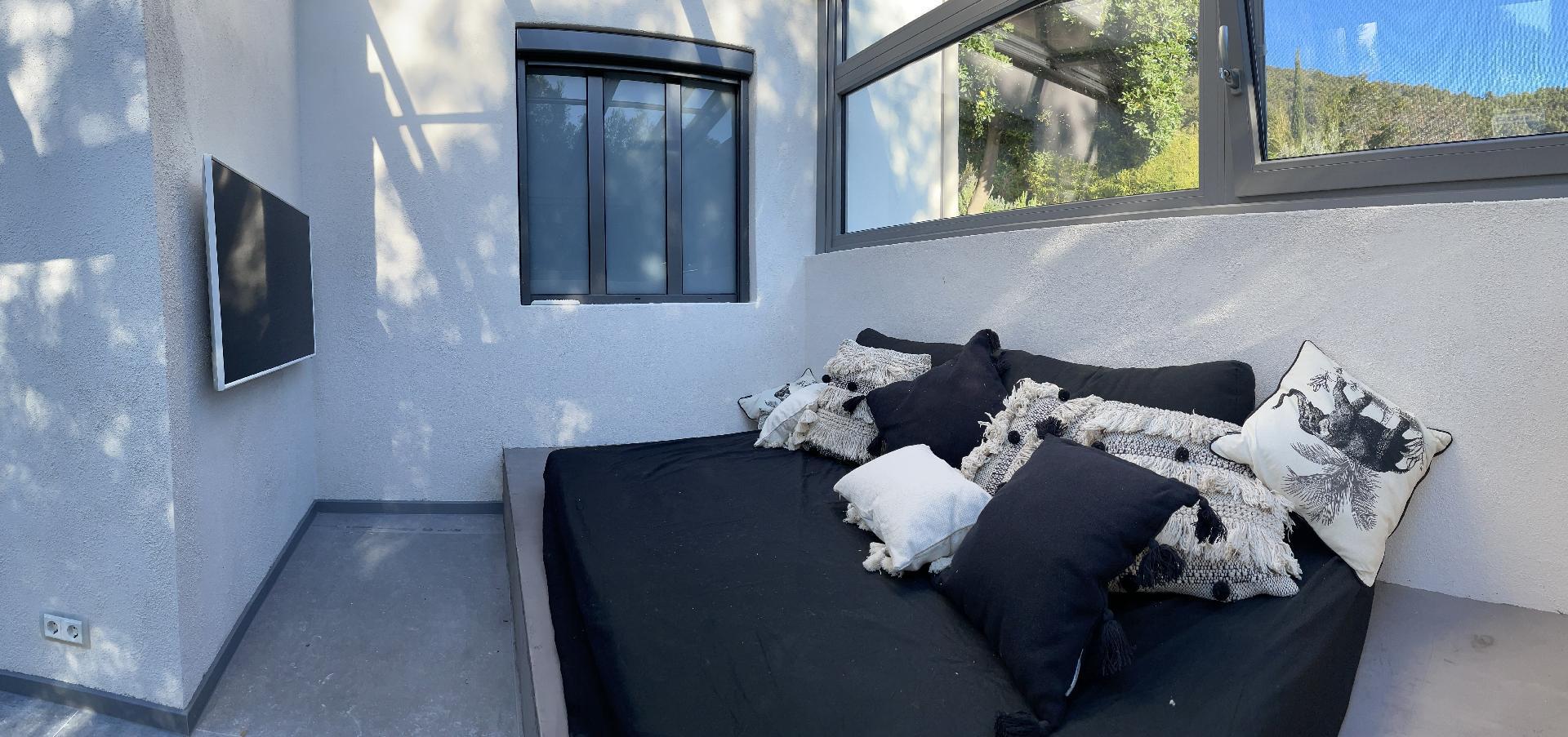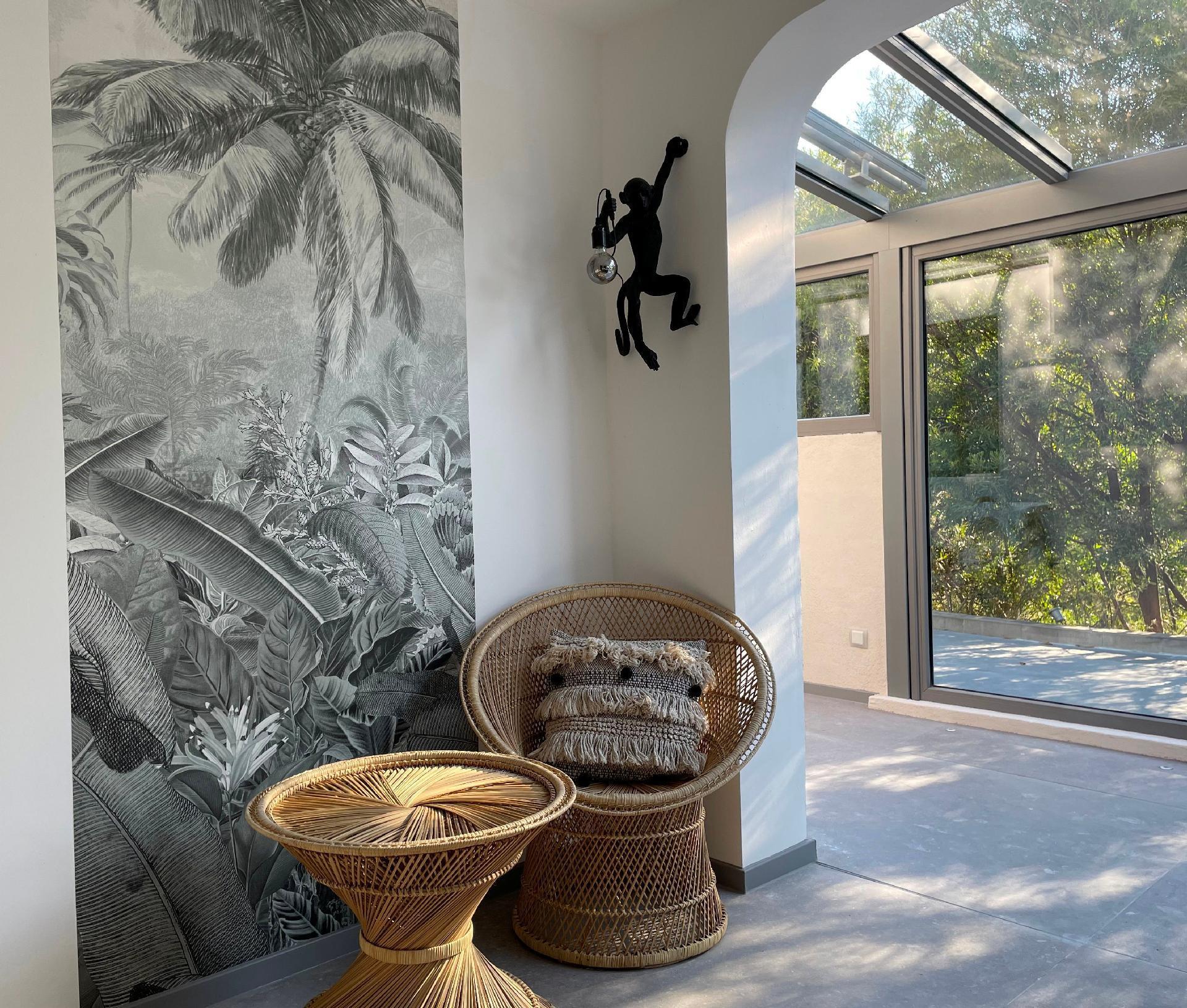 Im Inneren sorgt eine effektive Klimaanlage in allen Zimmern dafür, dass Sie sich auch an den heißesten Tagen der Region wohl und erfrischt fühlen. Für kühlere Tage gibt es eine integrierte Fußbodenheizung, die eine angenehme Wärme verbreitet. Zur hochwertigen Ausstattung gehören unter anderem eine Waschmaschine, ein Wäschetrockner, eine Induktionskochplatte und ein Kamin im Wintergarten, die gemeinsam mit der Kapsel-Kaffeemaschine und einer Geschirrspülmaschine Ihren Aufenthalt so angenehm wie möglich machen.