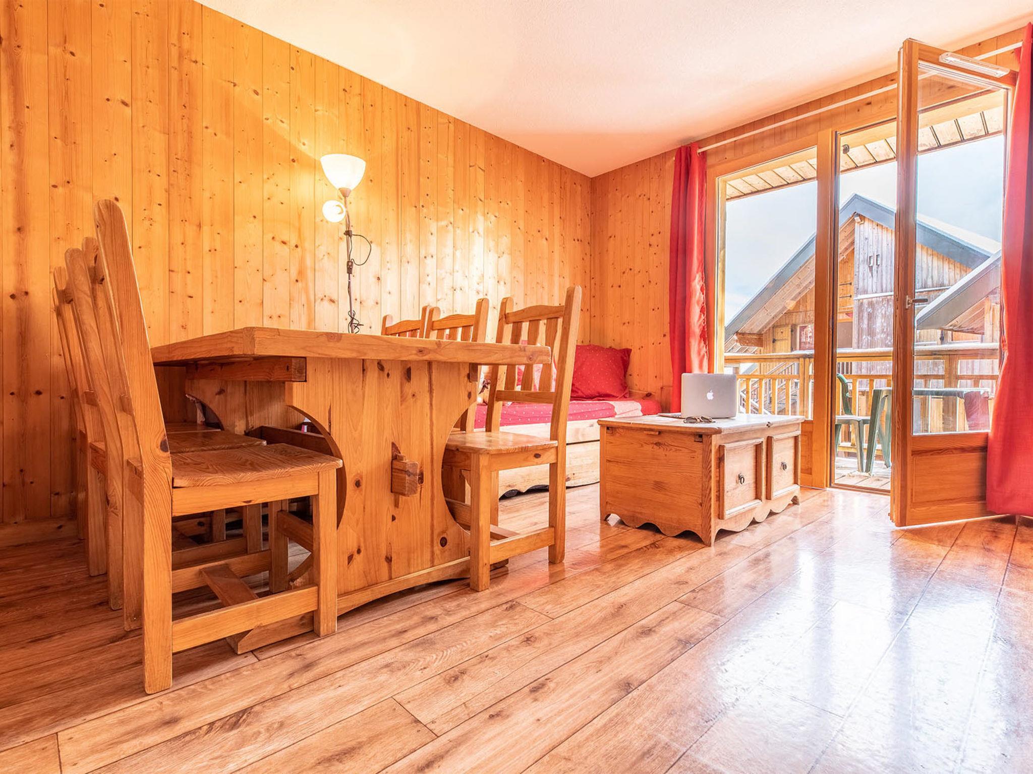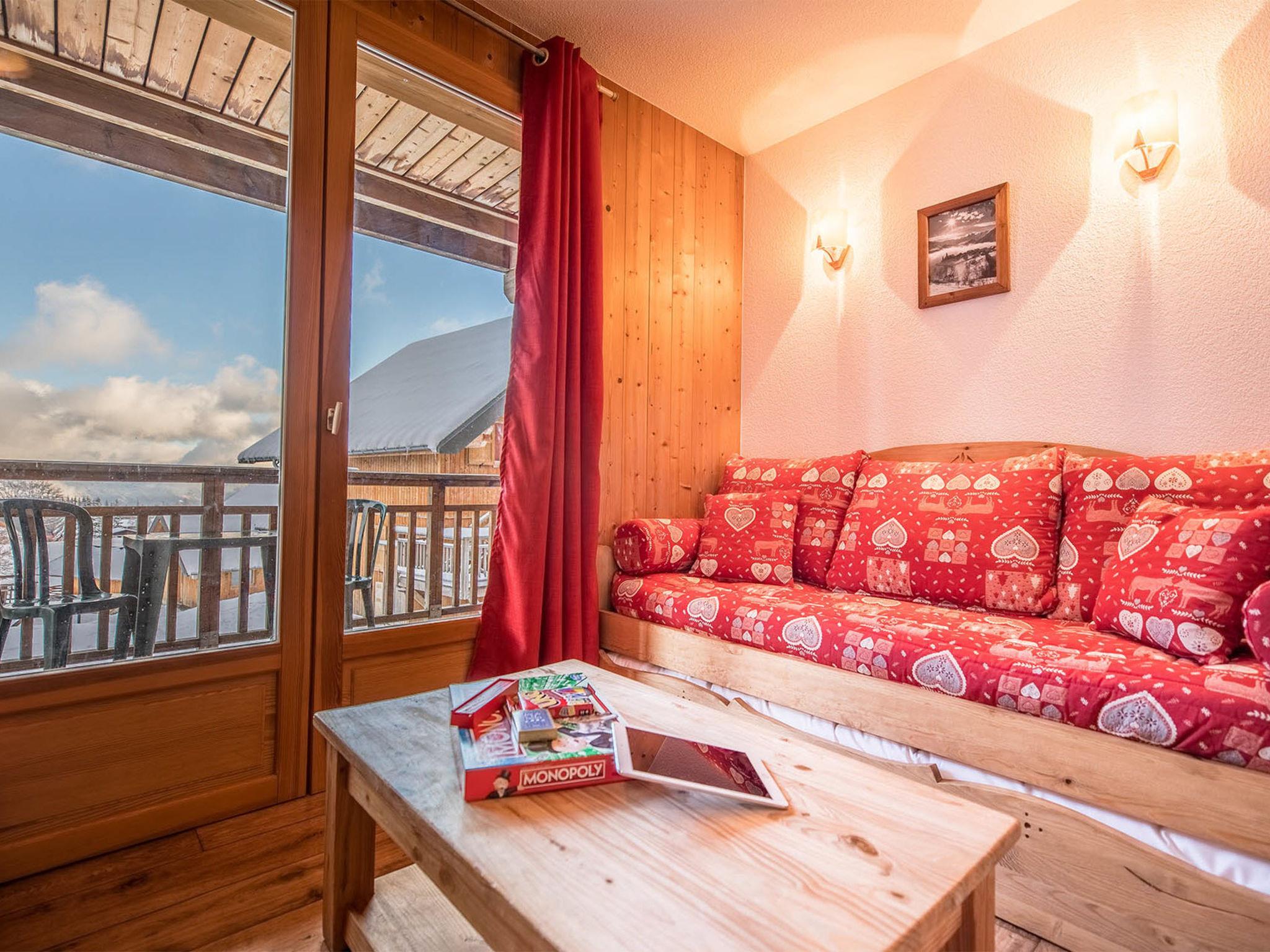 "Les Chalets du Berger", 2-room apartment 27 m2. Beautiful and cosy furnishings: living/sleeping room with 1 pull-out bed (2 pers.), dining table and TV. 1 room with 1 french bed. Open kitchen (2 hot plates, dishwasher, toaster, kettle, microwave, electric coffee machine). Bath/WC or shower/WC. Balcony or terrace. Facilities: hair dryer. Internet (WiFi, free). Please note: non-smokers only. Maximum 2 pets/ dogs allowed.