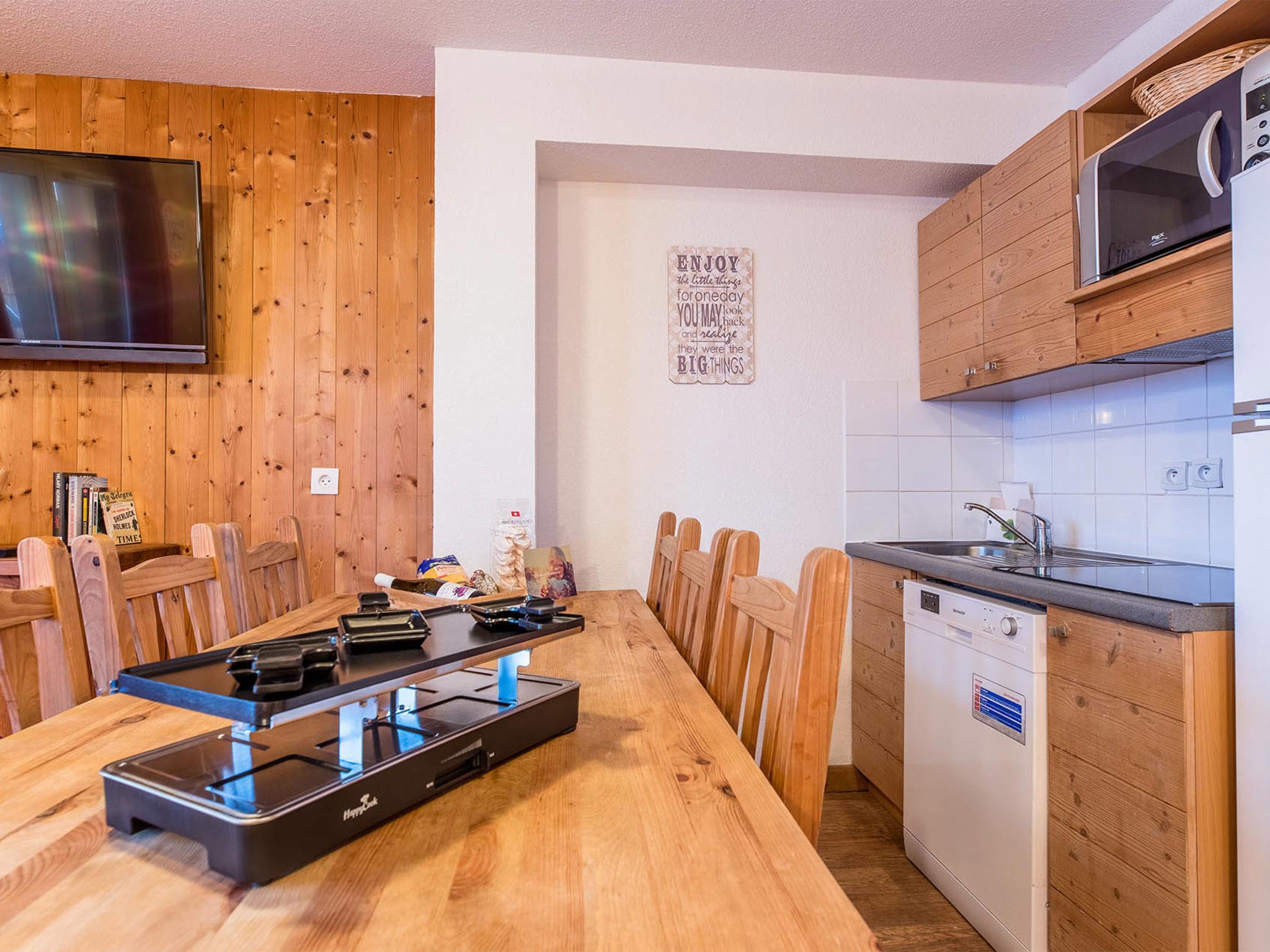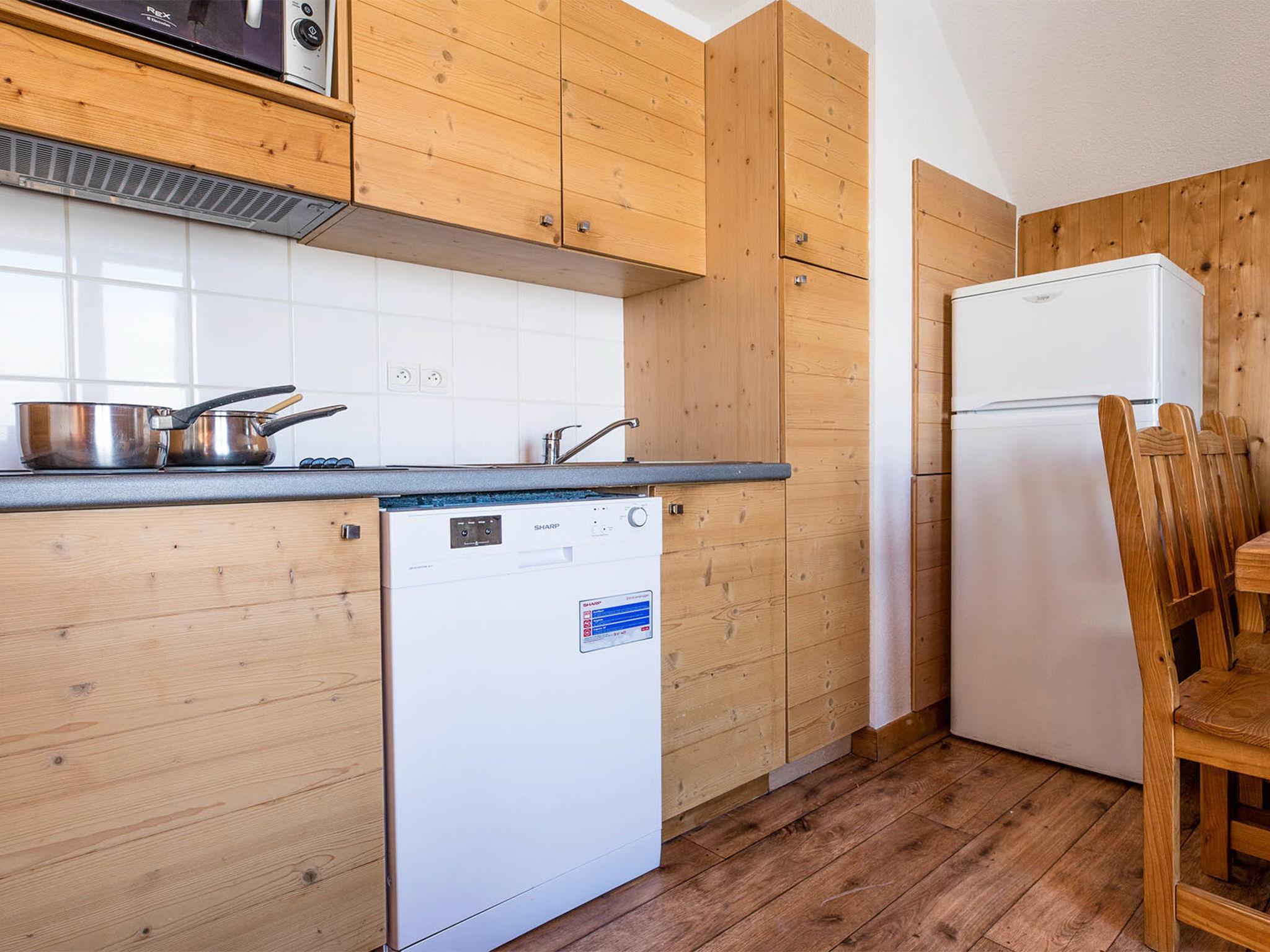 "Les Chalets du Berger", 3-room apartment 47 m2. Beautiful and cosy furnishings: living/sleeping room with 1 pull-out bed (2 pers.), dining table and TV. 1 room with 1 french bed. 1 room with 3 beds. Open kitchen (2 hot plates, dishwasher, toaster, kettle, microwave, electric coffee machine). Bath/WC or shower/WC. Balcony or terrace. Facilities: hair dryer. Internet (WiFi, free). Please note: non-smokers only. Maximum 2 pets/ dogs allowed.