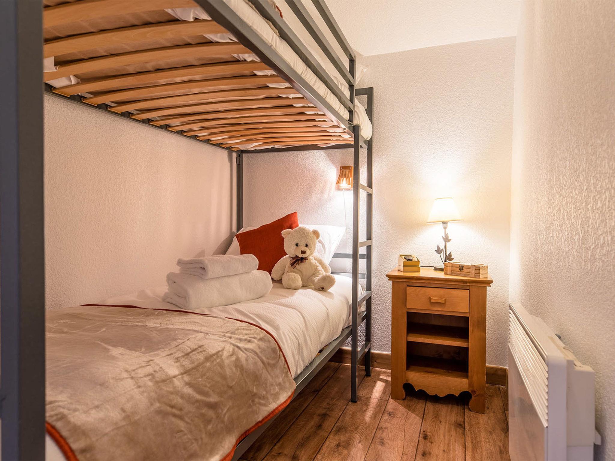 "Les Chalets du Berger", 3-room apartment 56 m2 on 2 levels. Beautiful and cosy furnishings: living/sleeping room with 1 pull-out bed (2 pers.), dining table and TV. Open kitchen (2 hot plates, dishwasher, toaster, kettle, microwave, electric coffee machine). Shower, sep. WC. Upper floor: 1 room with 1 french bed. 1 room with 2 beds. Alcove with 1 x 2 bunk beds. Bath/WC or shower/WC. Balcony or terrace. Facilities: hair dryer. Internet (WiFi, free). Please note: non-smokers only. Maximum 2 pets/ dogs allowed. Instead of an enclosed bedroom, some sleeping areas are located in an open-plan area (gallery, alcove, etc.).