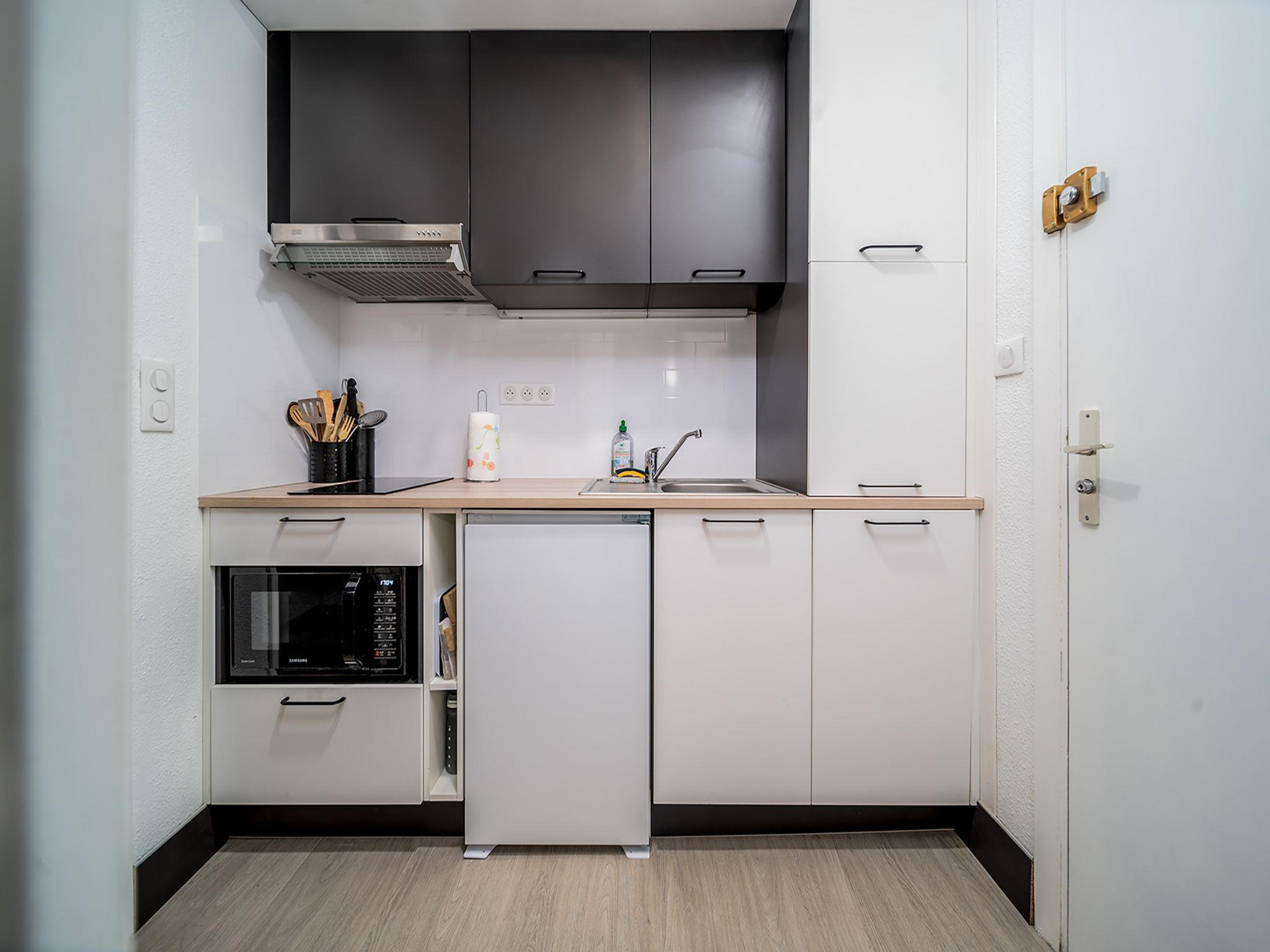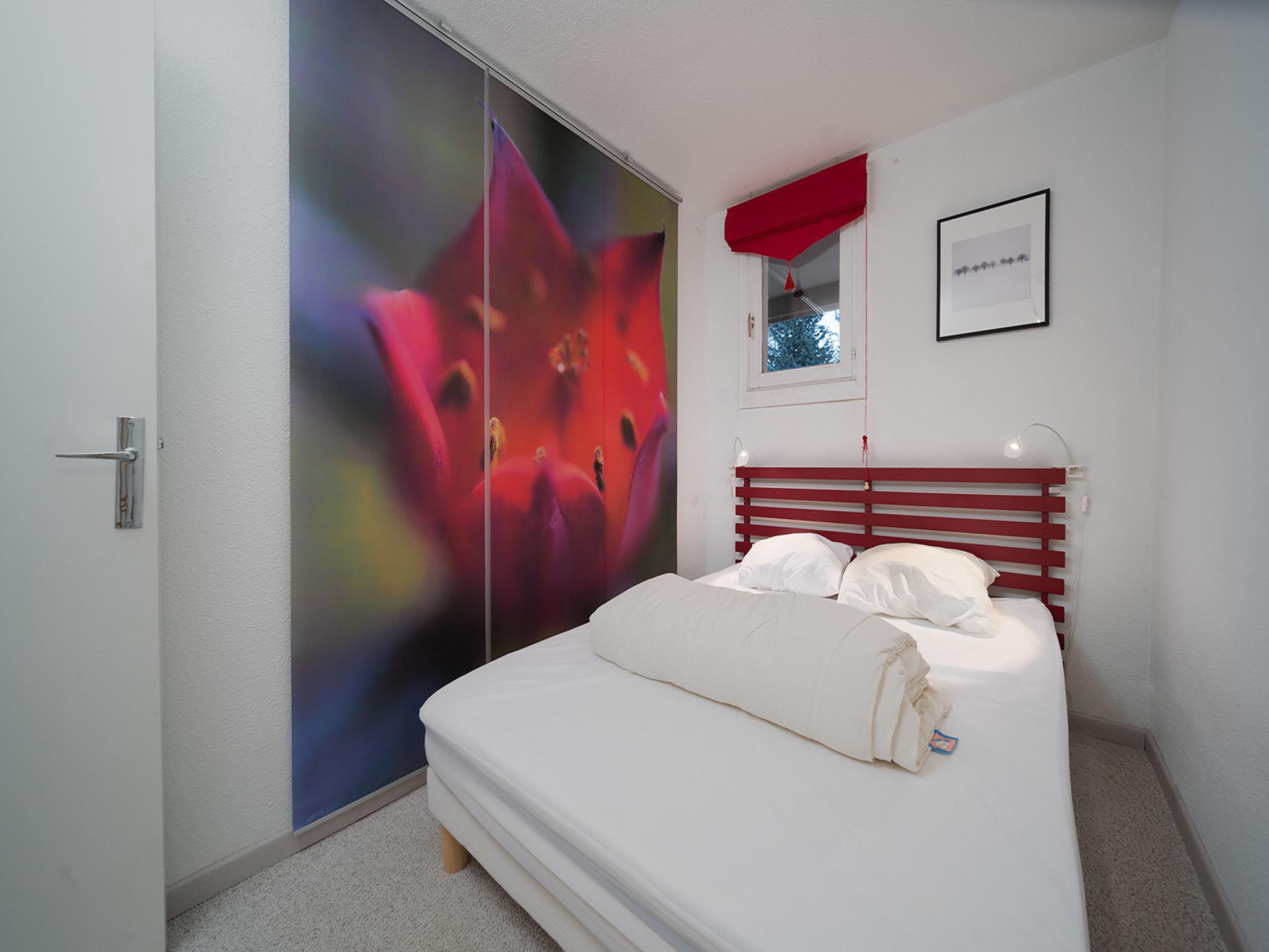 "T. De la Foux N 51 - 2P5C", 2-room apartment 33 m2 on 2nd floor. Object suitable for 5 adults. 1 room with 1 double bed. Living room with 1 x 2 bunk beds. Open kitchen (4 hot plates, dishwasher, toaster, kettle, microwave, electric coffee machine). Bath/WC. Balcony. View of the mountains. Please note: non-smokers only. Offer by a commercial proprietor according to Art. 155, IV, CGI 04006000374VB