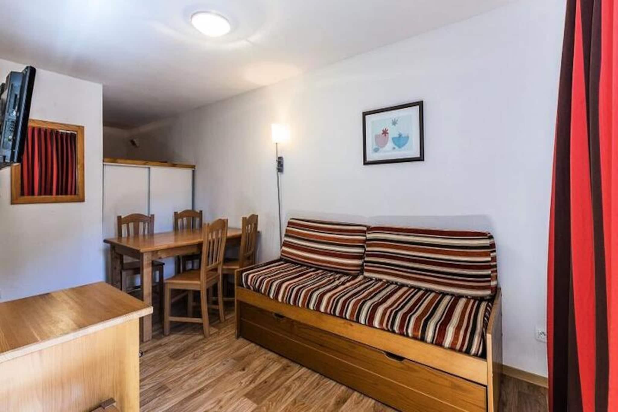 High in the serene heights of the Mercantour Regional Natural Park, this charming alpine residence offers a perfect retreat for nature lovers and adventure seekers alike. At 1,800 meters above sea level, the Résidence Les Cimes du Val d’Allos*** is a haven of tranquility and activity, ideally located at the foot of the slopes and just 50 meters from the ski lifts. Here, the crisp mountain air and breathtaking views set the stage for an unforgettable getaway. Inside, the property boasts a cozy yet functional layout, accommodating up to six guests. The living room features a sofa bed with a pull-out option, while the bedroom with a double bed and an alcove with bunk beds provide additional sleeping arrangements. The fully equipped kitchen invites you to prepare hearty meals after a day of exploration, and the private balcony offers a peaceful spot to soak in the surrounding alpine beauty. Modern amenities such as free WiFi and a flat-screen TV ensure a comfortable stay, while pet-friendly policies make it a welcoming choice for the whole family. Guests can unwind in the relaxation area, complete with an indoor heated pool, sauna, and hammam. After a day on the slopes, there’s nothing better than indulging in these soothing facilities. The Val d’Allos resort, awarded the \