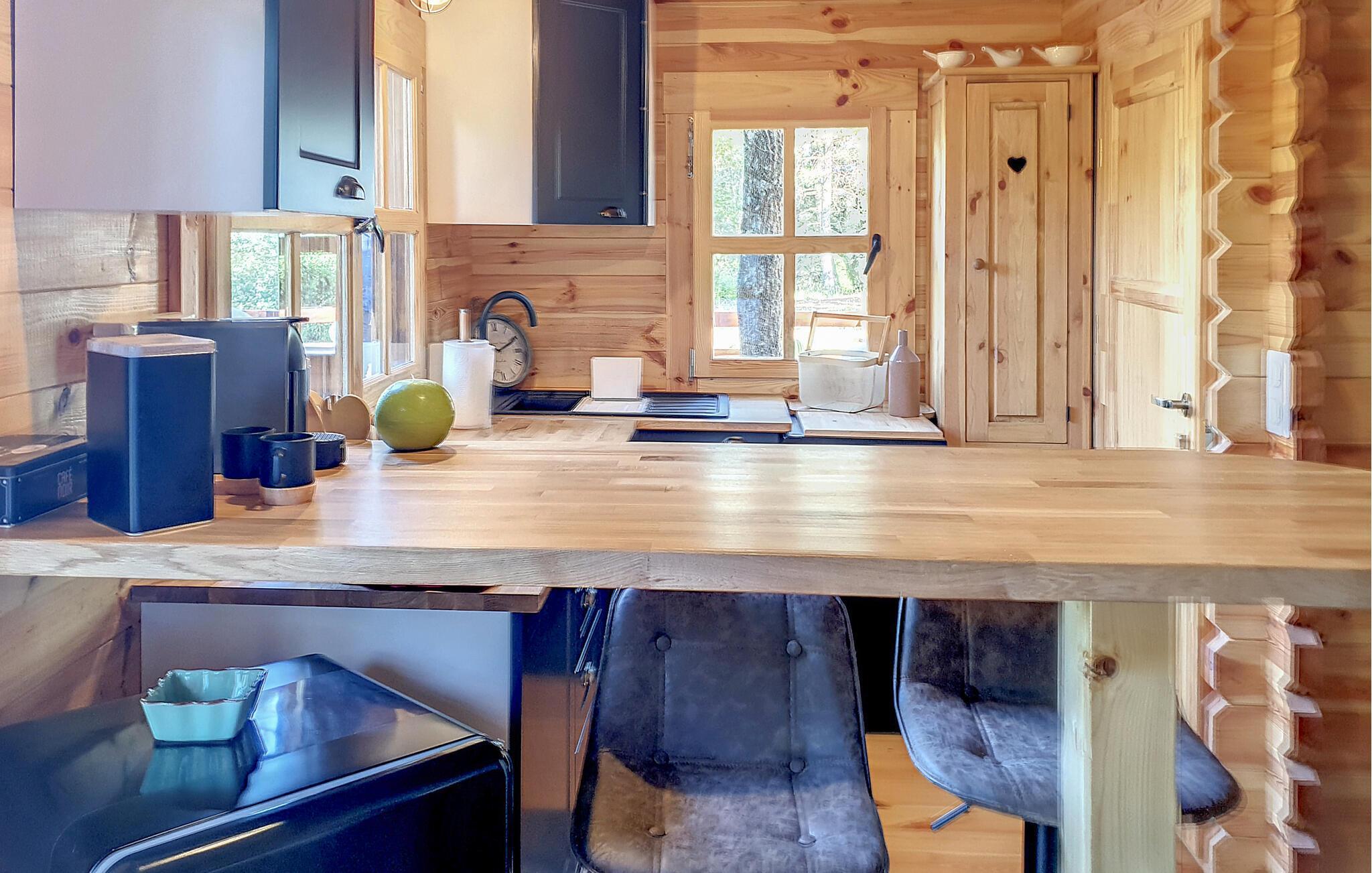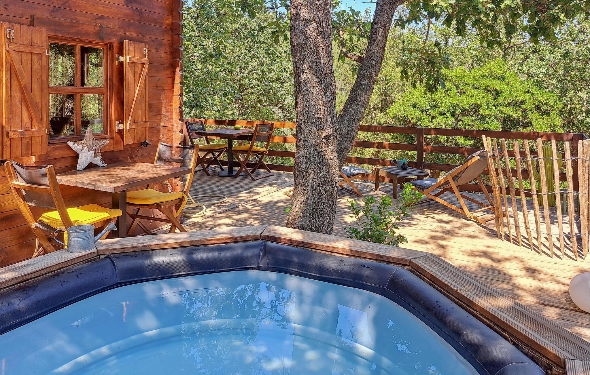 Dieses gemütliche Holzhaus strahlt Wärme und Charme aus – ideal für einen erholsamen Urlaub inmitten der Natur. Die stilvoll eingerichteten Innenräume bieten eine harmonische Mischung aus rustikalem Flair und modernem Komfort. Auf der einladenden Terrasse können Sie entspannte Stunden verbringen, während der kleine Pool und der überdachte Whirlpool für erfrischende und entspannende Momente sorgen. Das Anwesen umfasst ein weiteres Holzhaus, das Sie je nach Verfügbarkeit dazu buchen können, ideal für größere Gruppen oder Familien, außerdem leben die Hunde der Hausbesitzer auf dem Grundstück.