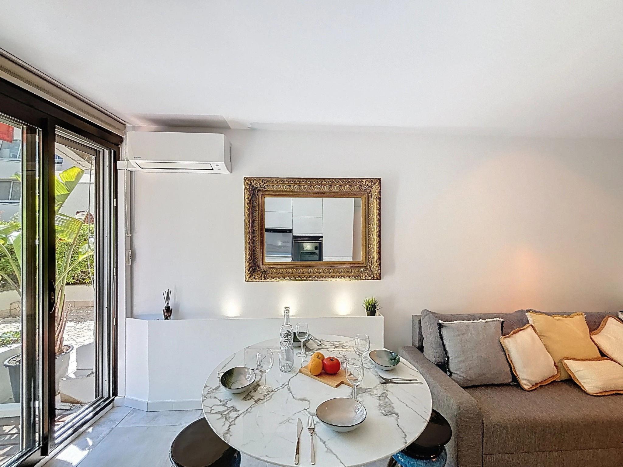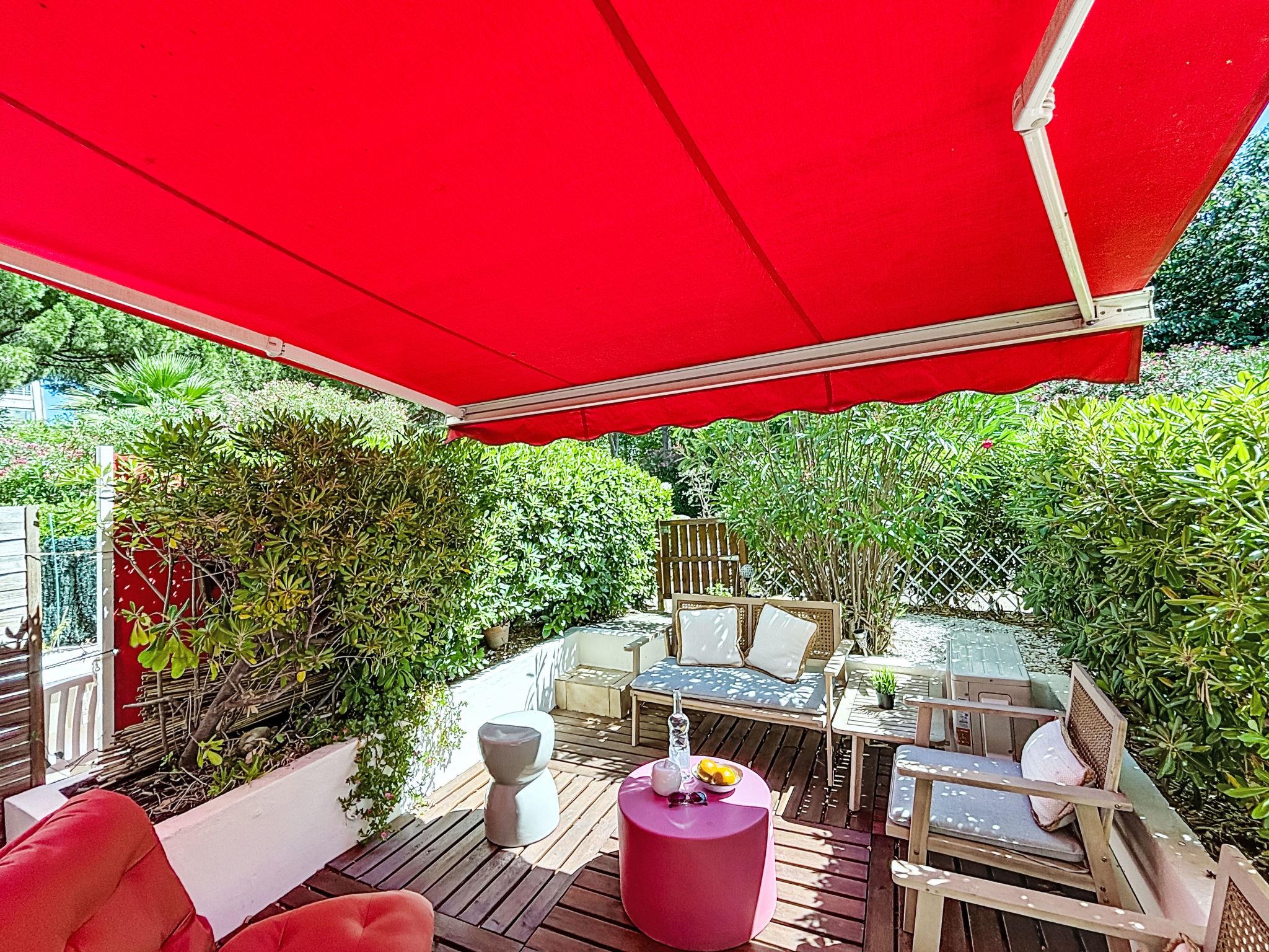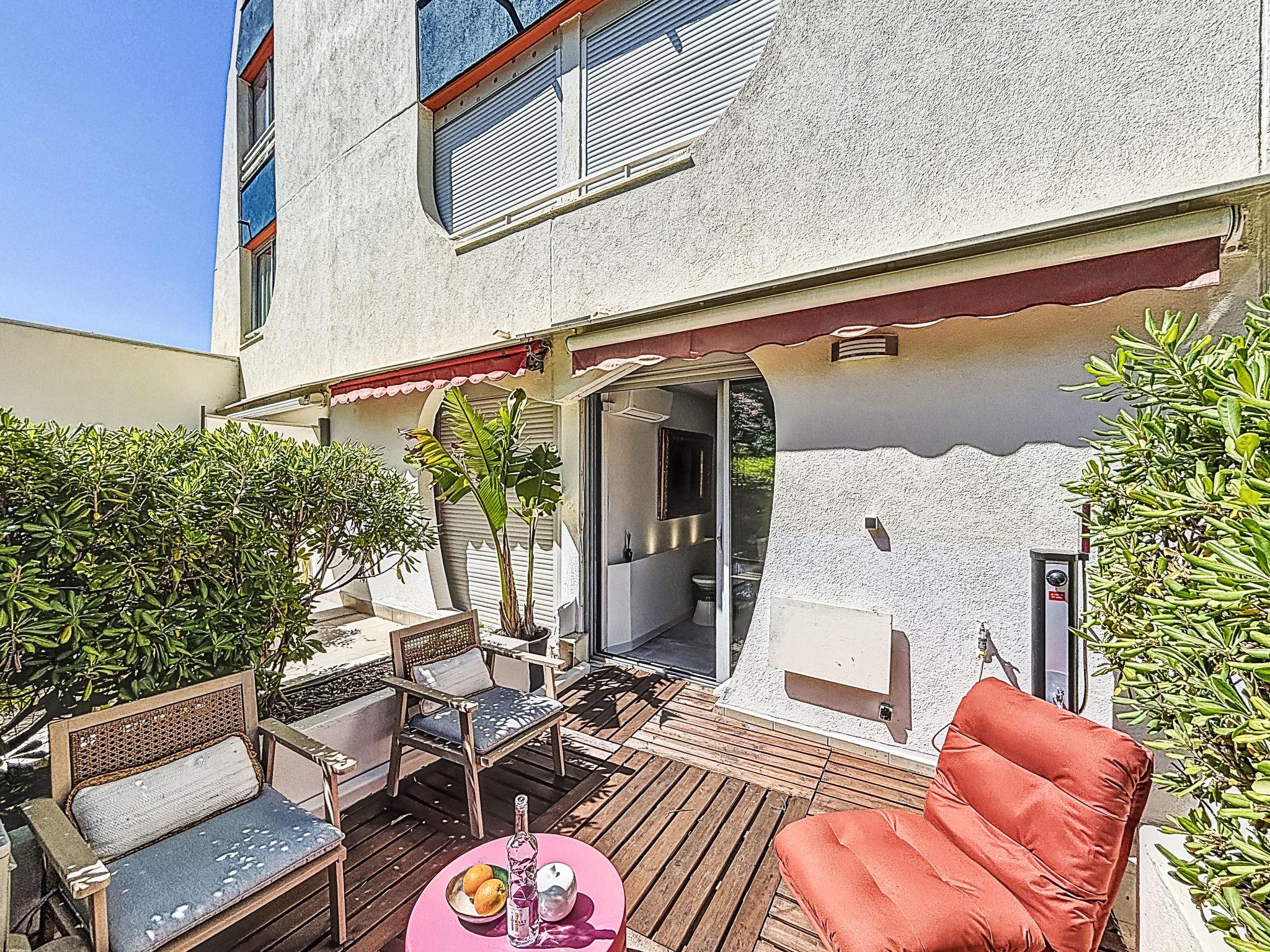 2-room apartment 27 m2, on the ground floor, south facing position. Beautiful furnishings: living/dining room with 1 double sofabed (140 cm, length 190 cm), TV (flat screen), air conditioning. Exit to the terrace. 1 small room with 1 french bed (140 cm, length 200 cm). Kitchenette (oven, dishwasher, 3 induction hot plates, toaster, kettle, microwave, freezer, electric coffee machine, Capsules for coffee machine (NESPRESSO) extra). Shower/WC. Electric heating. Large terrace 25 m2, south facing position. Terrace furniture, deck chairs (1). View of the garden. Facilities: washing machine, dryer. Internet (WiFi, extra). Please note: non-smokers only, no parking. Smoke alarm. Offer by a private individual according to Art. 155, IV of CGI.
