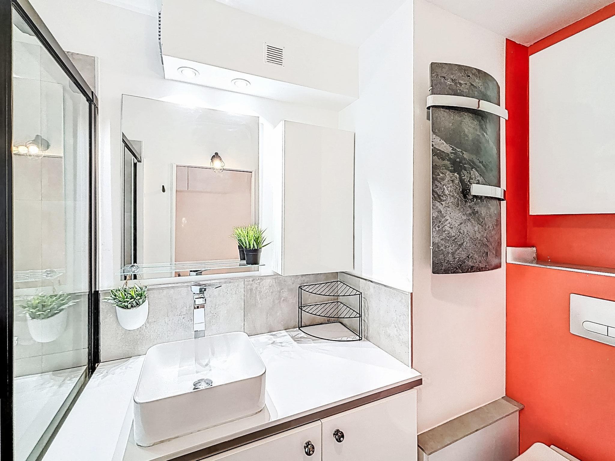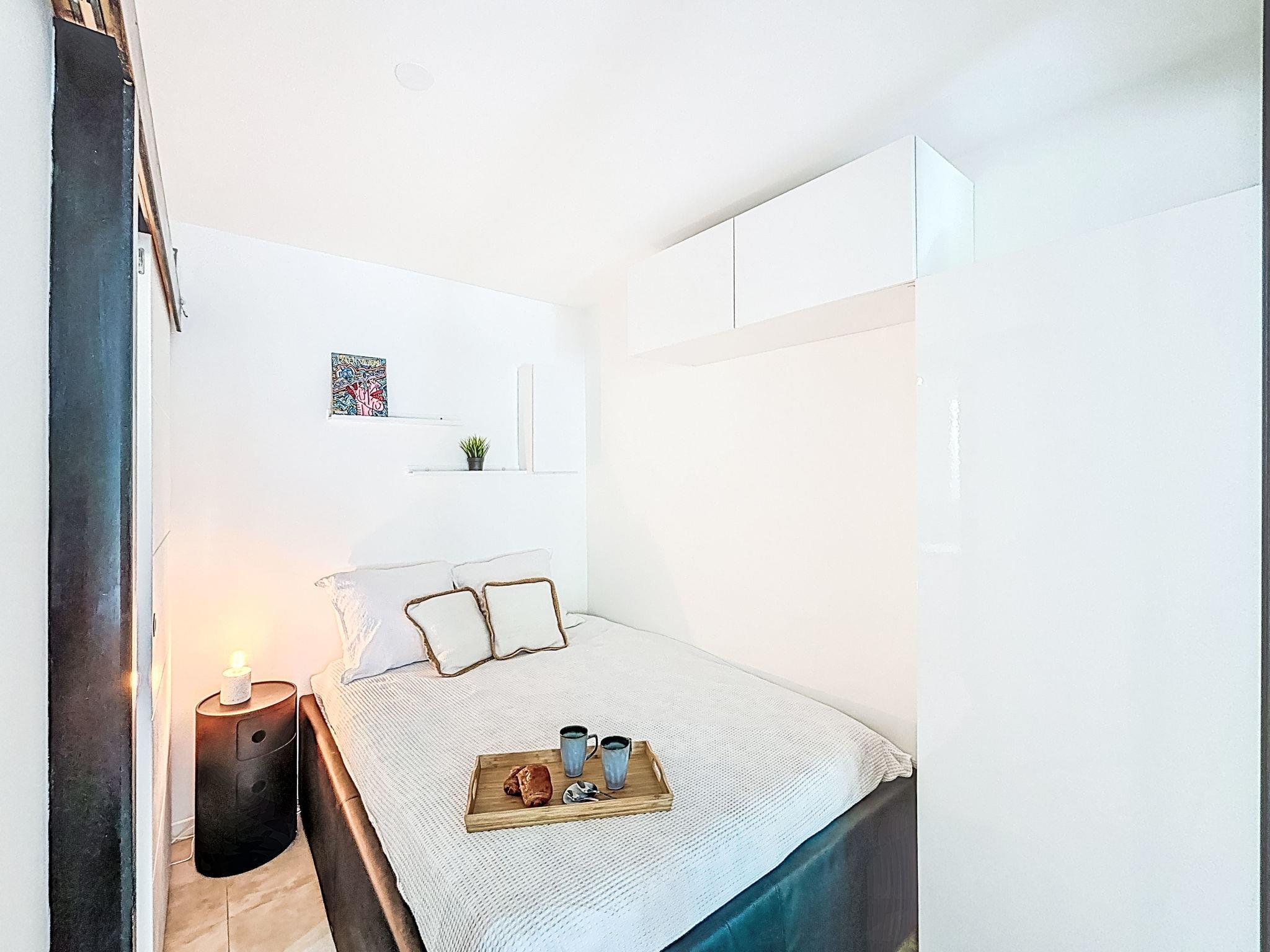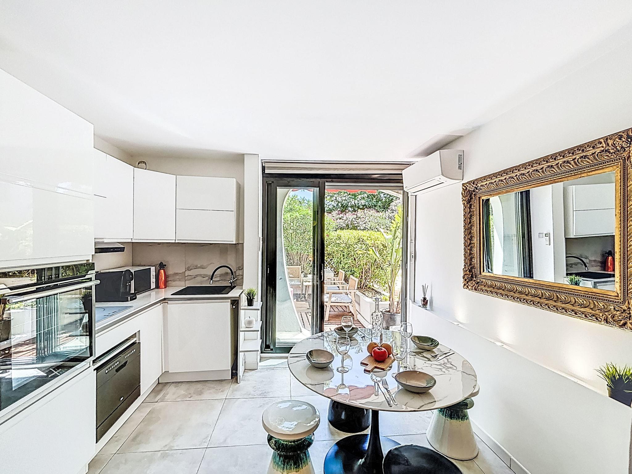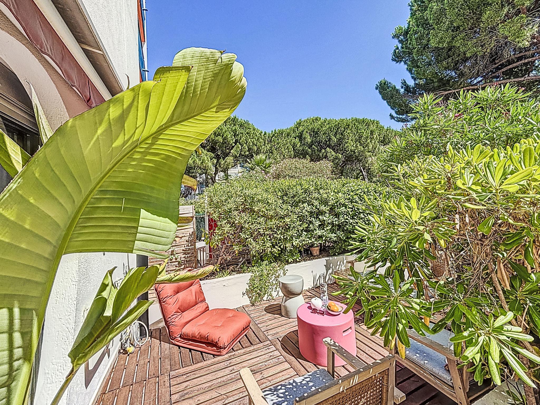 2-room apartment 27 m2, on the ground floor, south facing position. Beautiful furnishings: living/dining room with 1 double sofabed (140 cm, length 190 cm), TV (flat screen), air conditioning. Exit to the terrace. 1 small room with 1 french bed (140 cm, length 200 cm). Kitchenette (oven, dishwasher, 3 induction hot plates, toaster, kettle, microwave, freezer, electric coffee machine, Capsules for coffee machine (NESPRESSO) extra). Shower/WC. Electric heating. Large terrace 25 m2, south facing position. Terrace furniture, deck chairs (1). View of the garden. Facilities: washing machine, dryer. Internet (WiFi, extra). Please note: non-smokers only, no parking. Smoke alarm. Offer by a private individual according to Art. 155, IV of CGI.