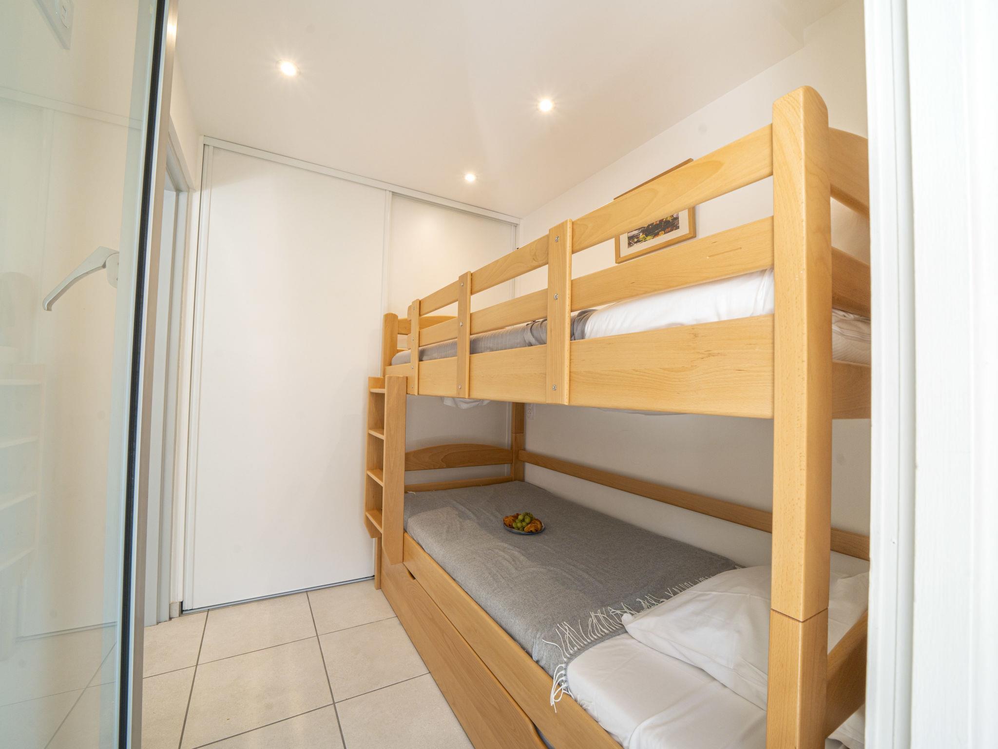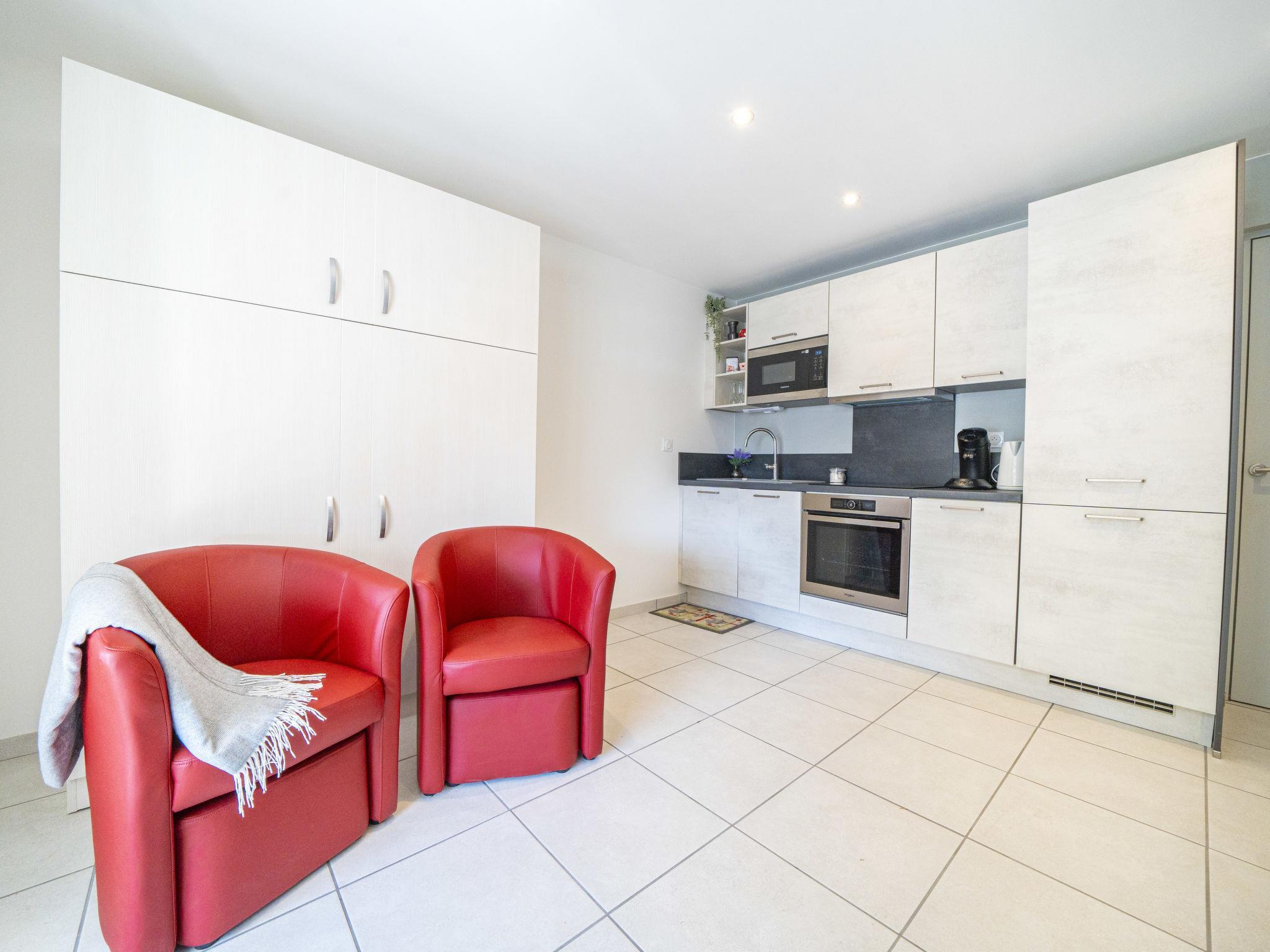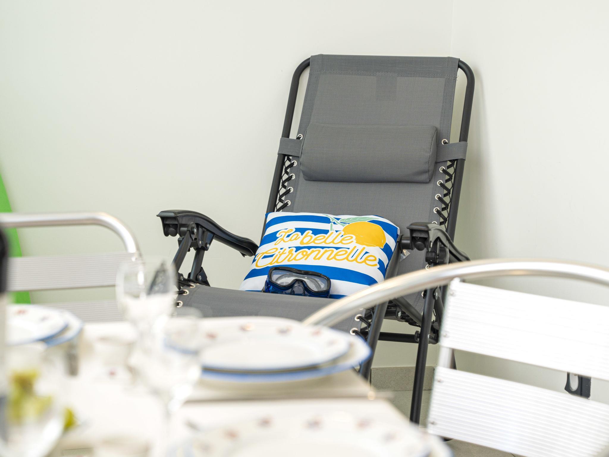 "Le Club", 2-room apartment 30 m2 on 2nd floor, south-west facing position. Renovated in 2024, comfortable furnishings: living/dining room with (140 cm, length 190 cm), TV (flat screen), electric heating and air conditioning. Exit to the loggia. 1 small room with 1 x 2 bunk beds (90 cm, length 200 cm). Open kitchen (oven, dishwasher, 3 induction hot plates, toaster, kettle, microwave, freezer, electric coffee machine, Capsules for coffee machine (SENSEO) extra). Shower/WC. Electric heating. Balcony furniture, covered balcony. Facilities: washing machine, iron. Internet (WiFi, extra). Parking space n 397 (1 car). Please note: non-smokers only. 1 small pet/ dog allowed. Smoke alarm. Offer by a private individual according to Art. 155, IV of CGI. 10 73 014 216 064