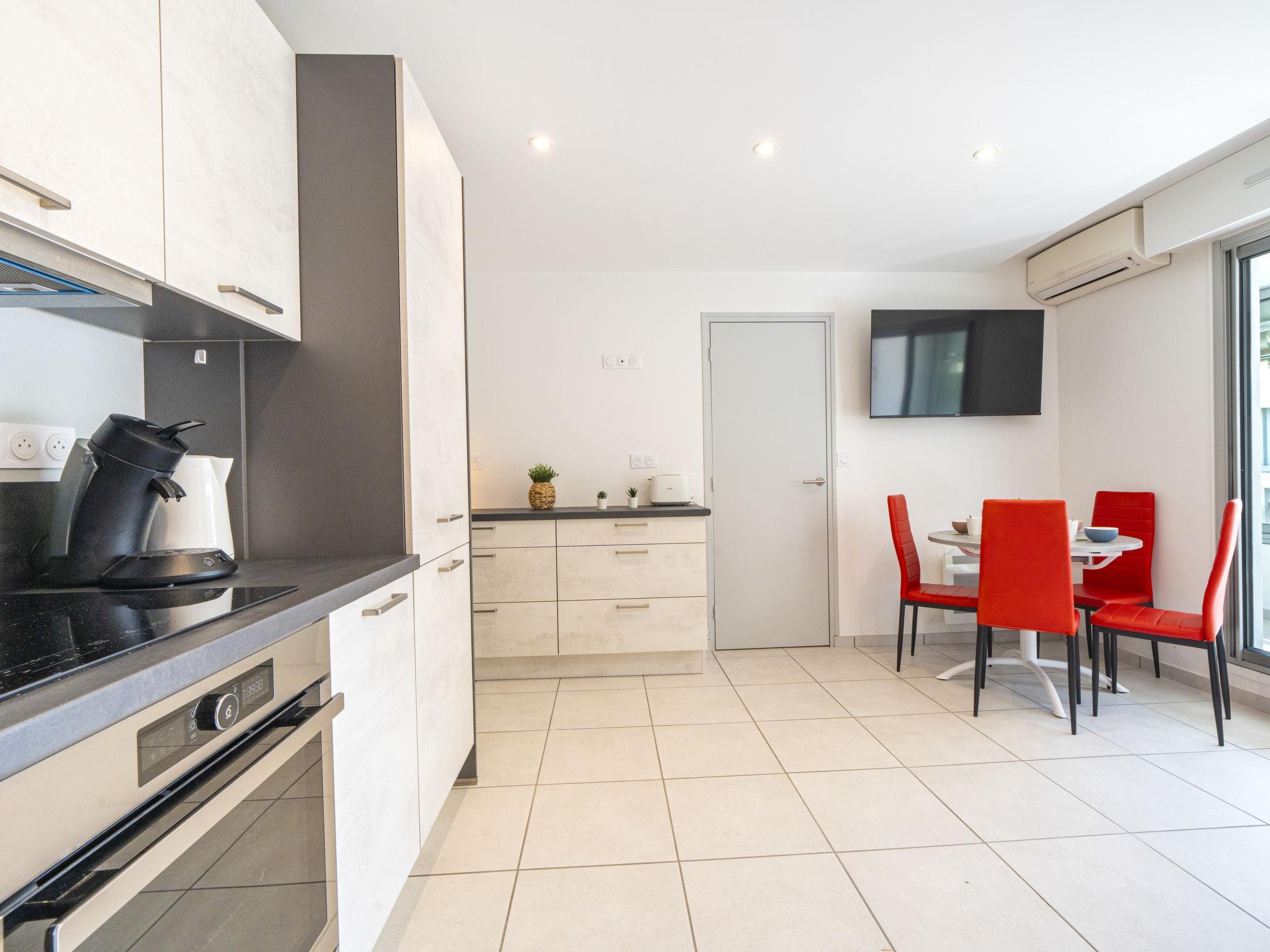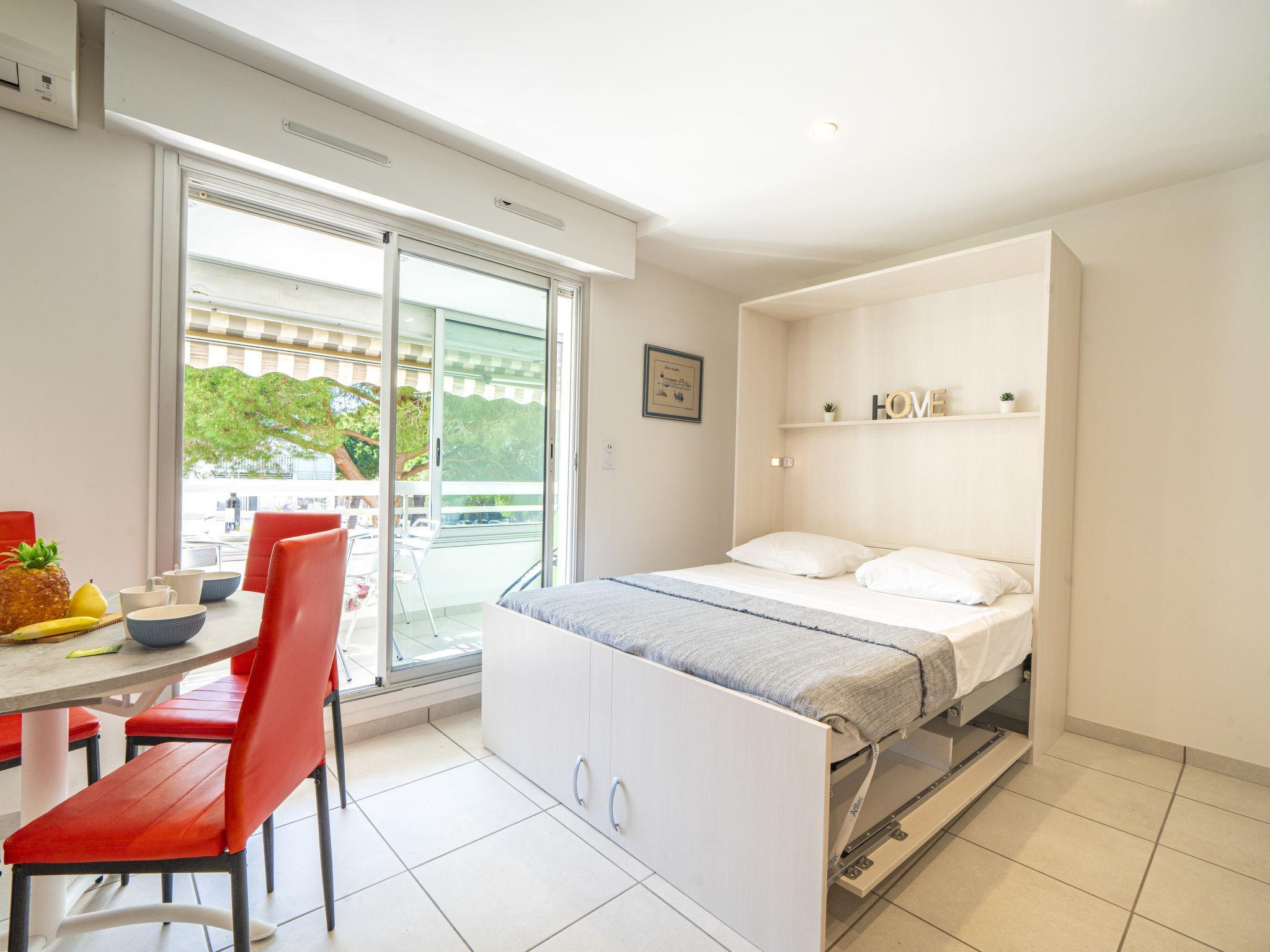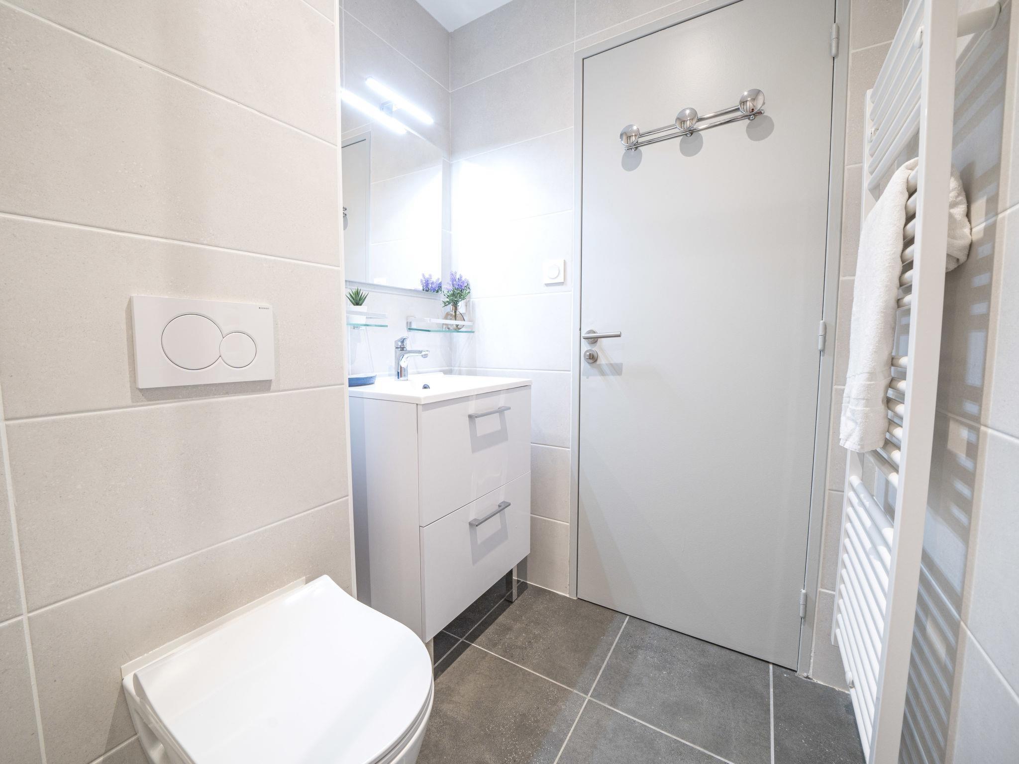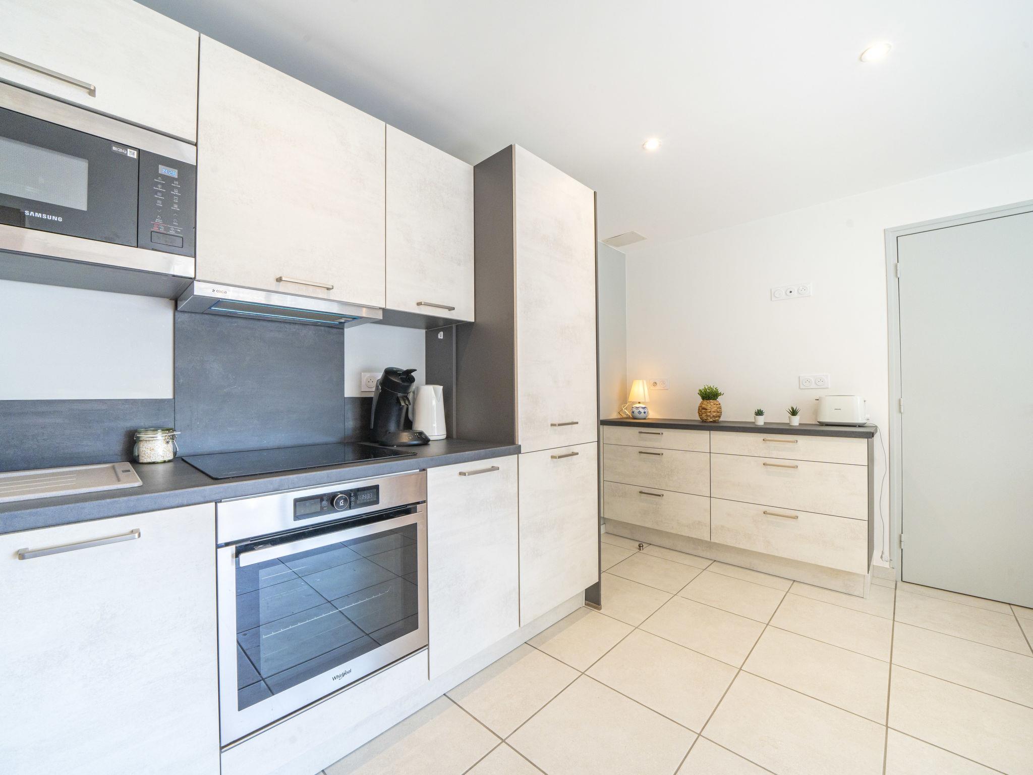 "Le Club", 2-room apartment 30 m2 on 2nd floor, south-west facing position. Renovated in 2024, comfortable furnishings: living/dining room with (140 cm, length 190 cm), TV (flat screen), electric heating and air conditioning. Exit to the loggia. 1 small room with 1 x 2 bunk beds (90 cm, length 200 cm). Open kitchen (oven, dishwasher, 3 induction hot plates, toaster, kettle, microwave, freezer, electric coffee machine, Capsules for coffee machine (SENSEO) extra). Shower/WC. Electric heating. Balcony furniture, covered balcony. Facilities: washing machine, iron. Internet (WiFi, extra). Parking space n 397 (1 car). Please note: non-smokers only. 1 small pet/ dog allowed. Smoke alarm. Offer by a private individual according to Art. 155, IV of CGI. 10 73 014 216 064