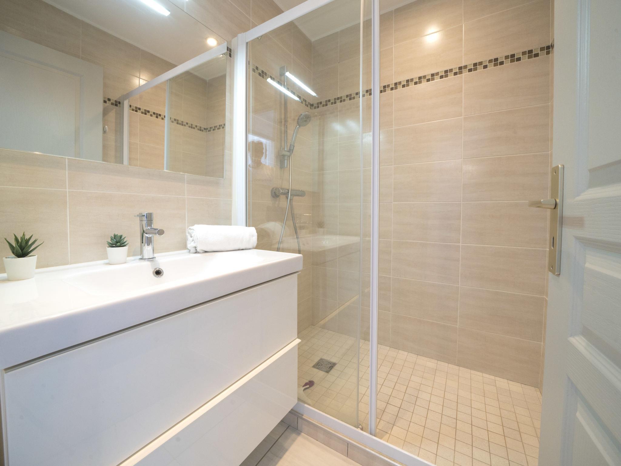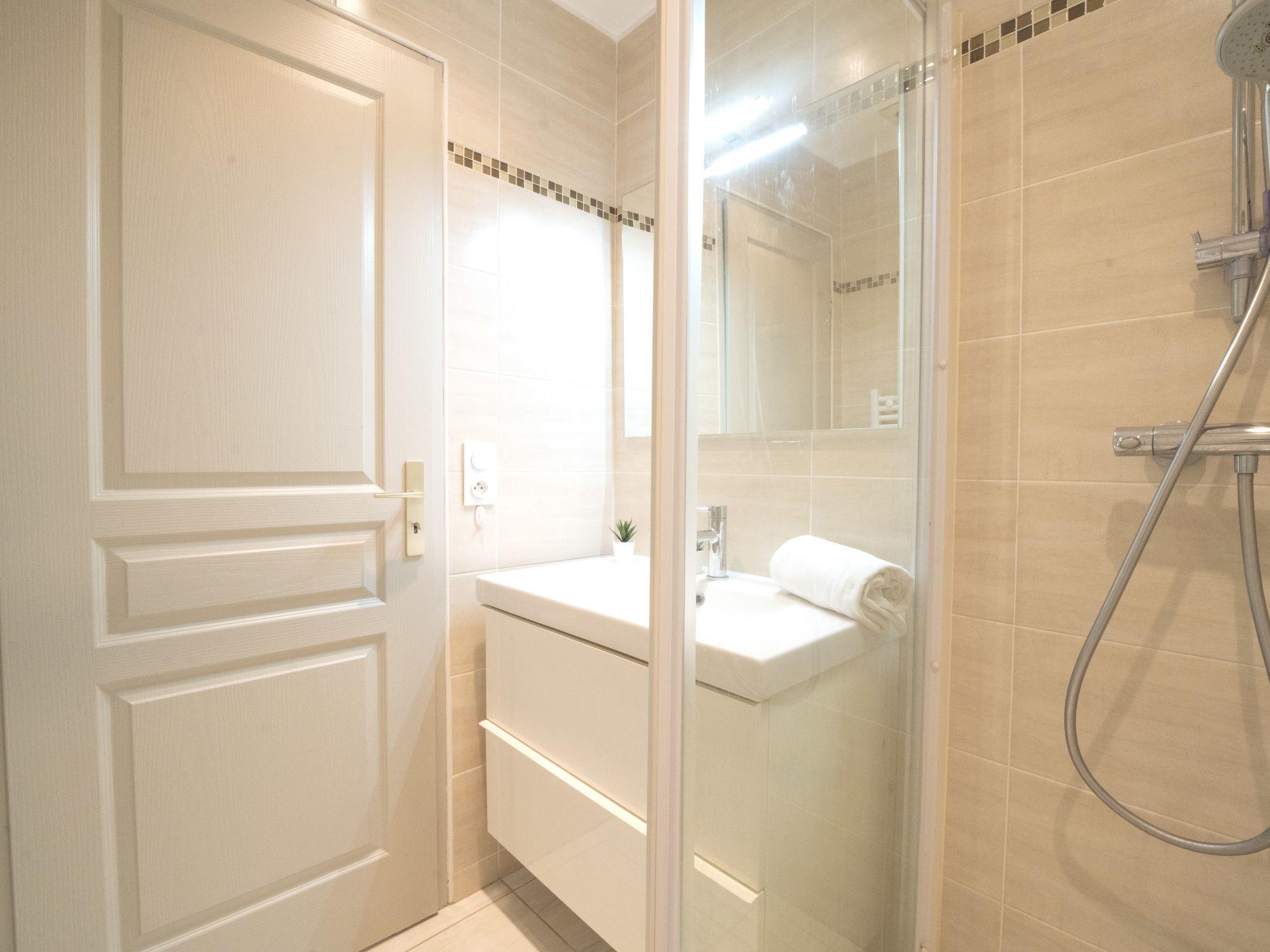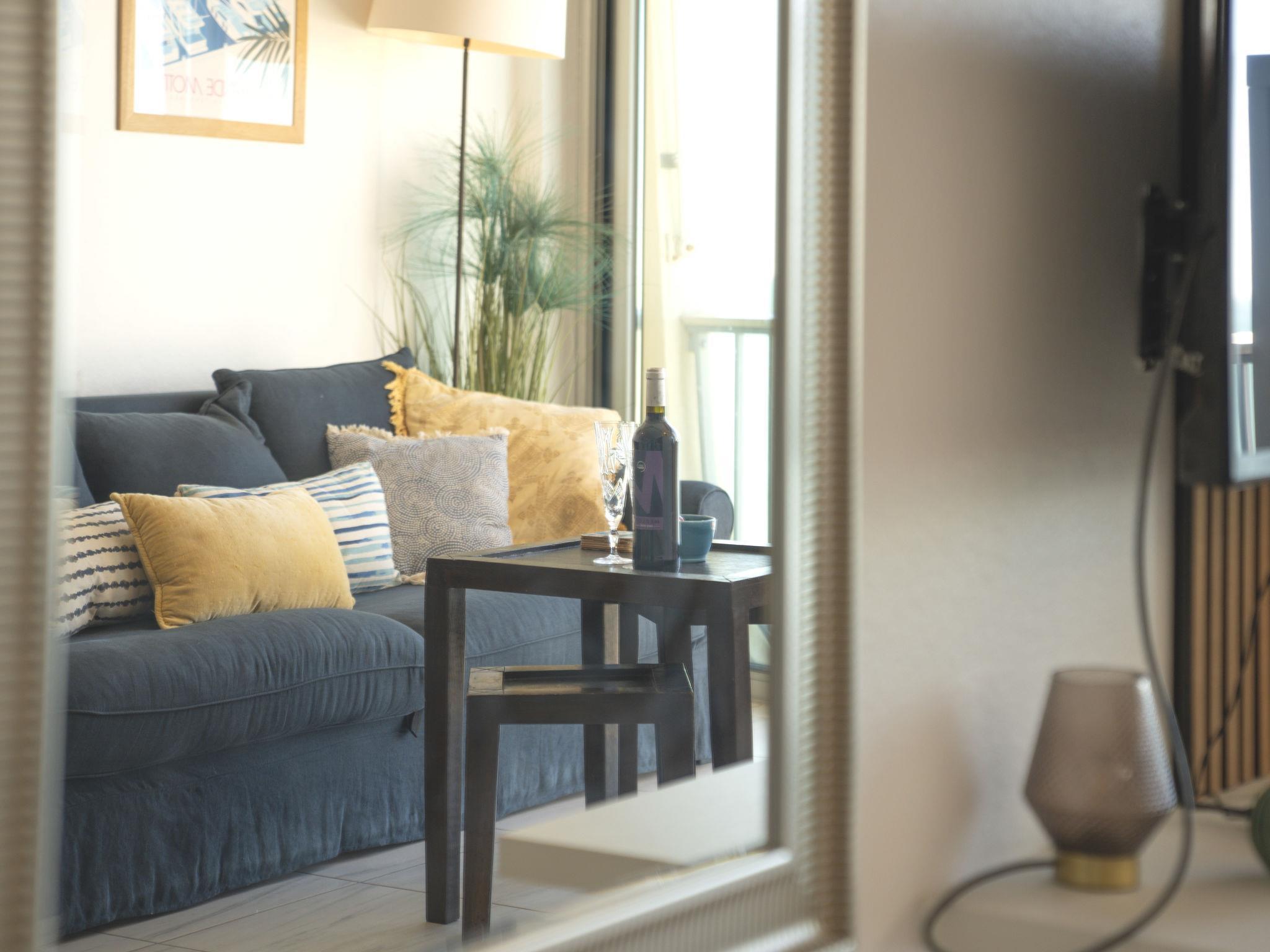 2-room apartment 44 m2 on 8th floor, south facing position. Very comfortable furnishings: living/dining room with 1 double sofabed (160 cm, length 200 cm), TV (flat screen), electric heating and air conditioning. 1 room with veranda with 1 french bed (160 cm, length 190 cm), air conditioning. Open kitchen (oven, dishwasher, 3 induction hot plates, toaster, kettle, microwave, freezer, electric coffee machine). Shower, sep. WC. Electric heating. Small terrace 4 m2, south facing position. Terrace furniture. Very beautiful view of the sea and the countryside. Facilities: washing machine, iron, hair dryer. Internet (WiFi, free). Parking (1 car). Please note: non-smokers only. Smoke alarm. Offer by a private individual according to Art. 155, IV of CGI. 30 04 503 039 356