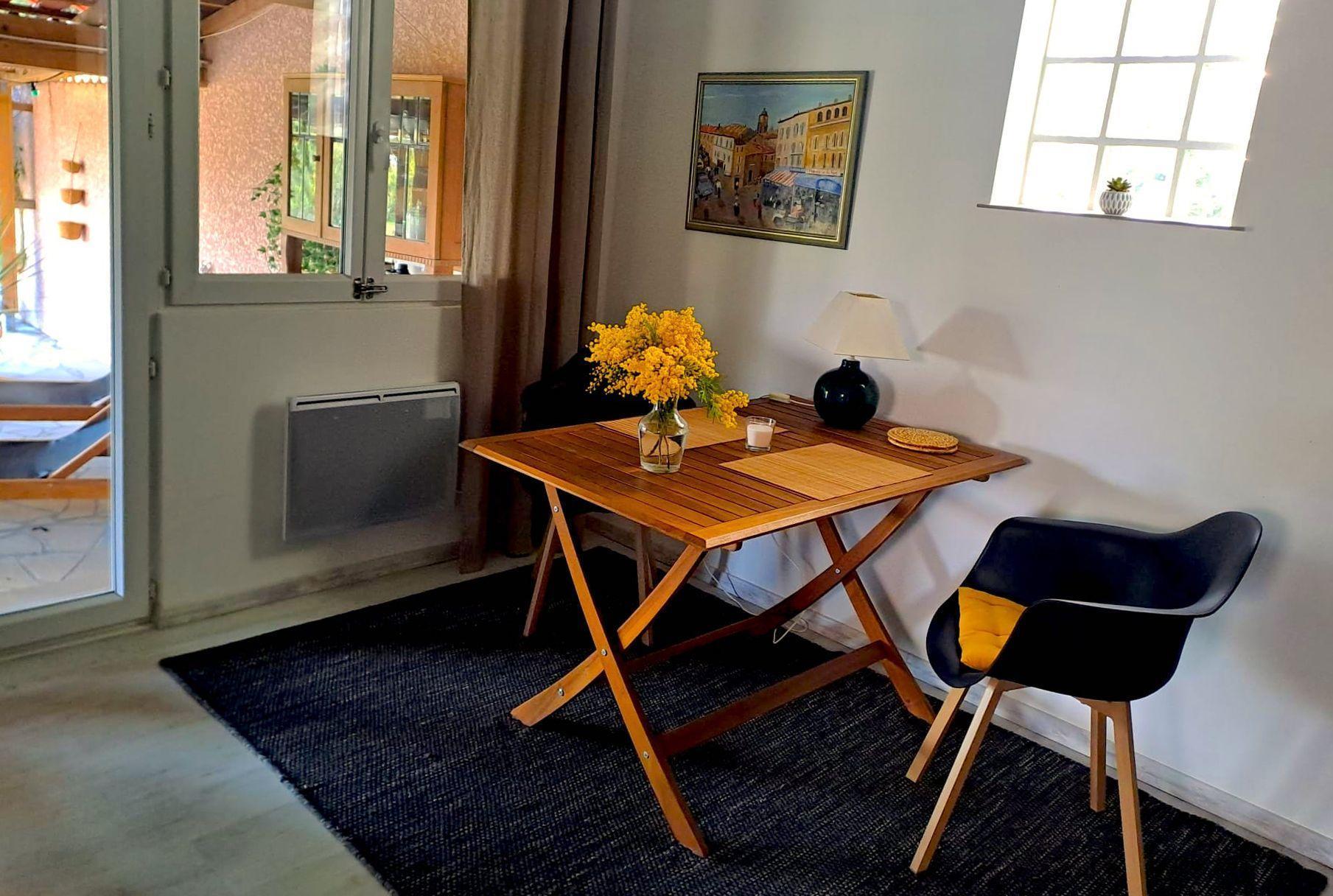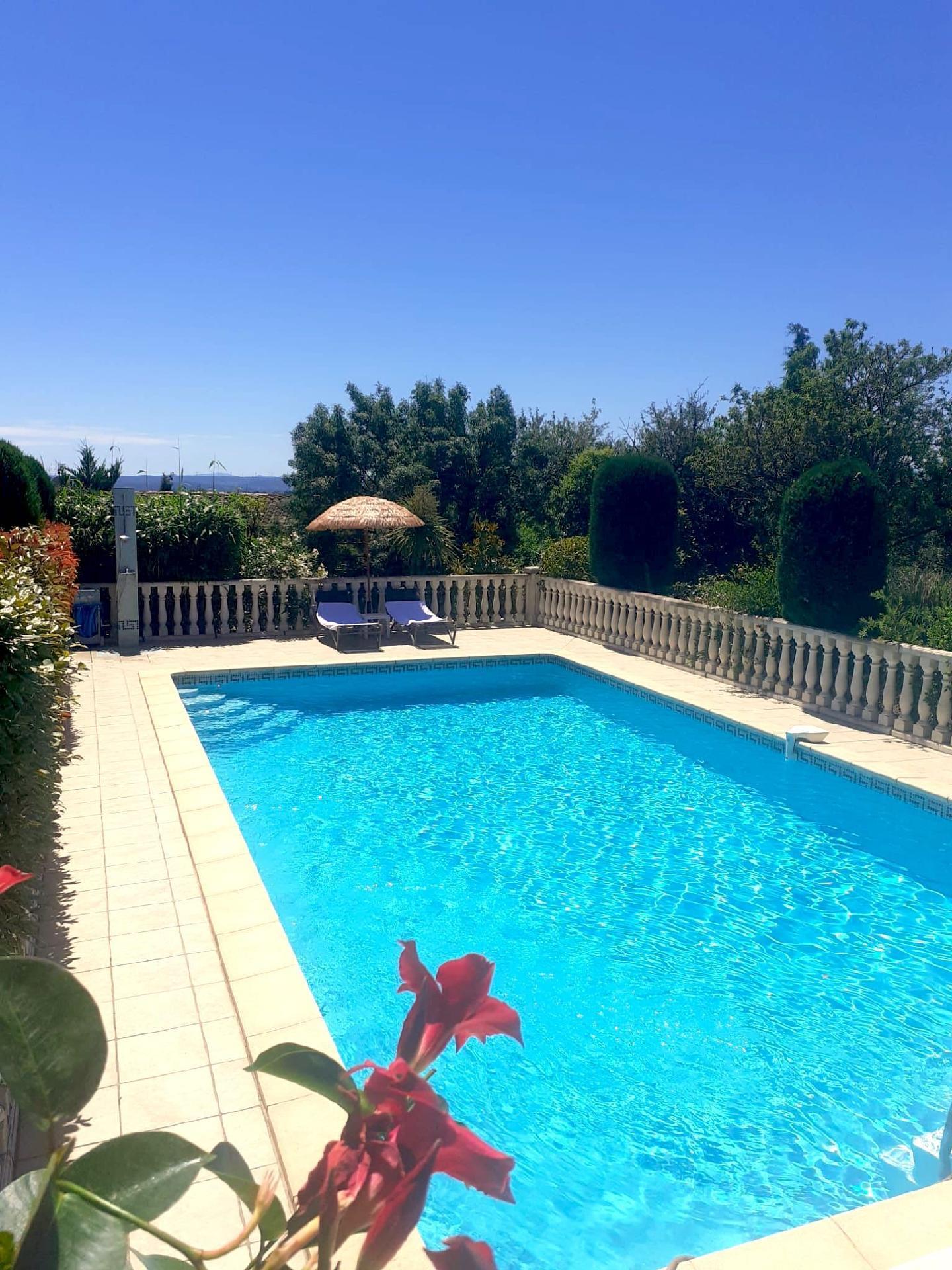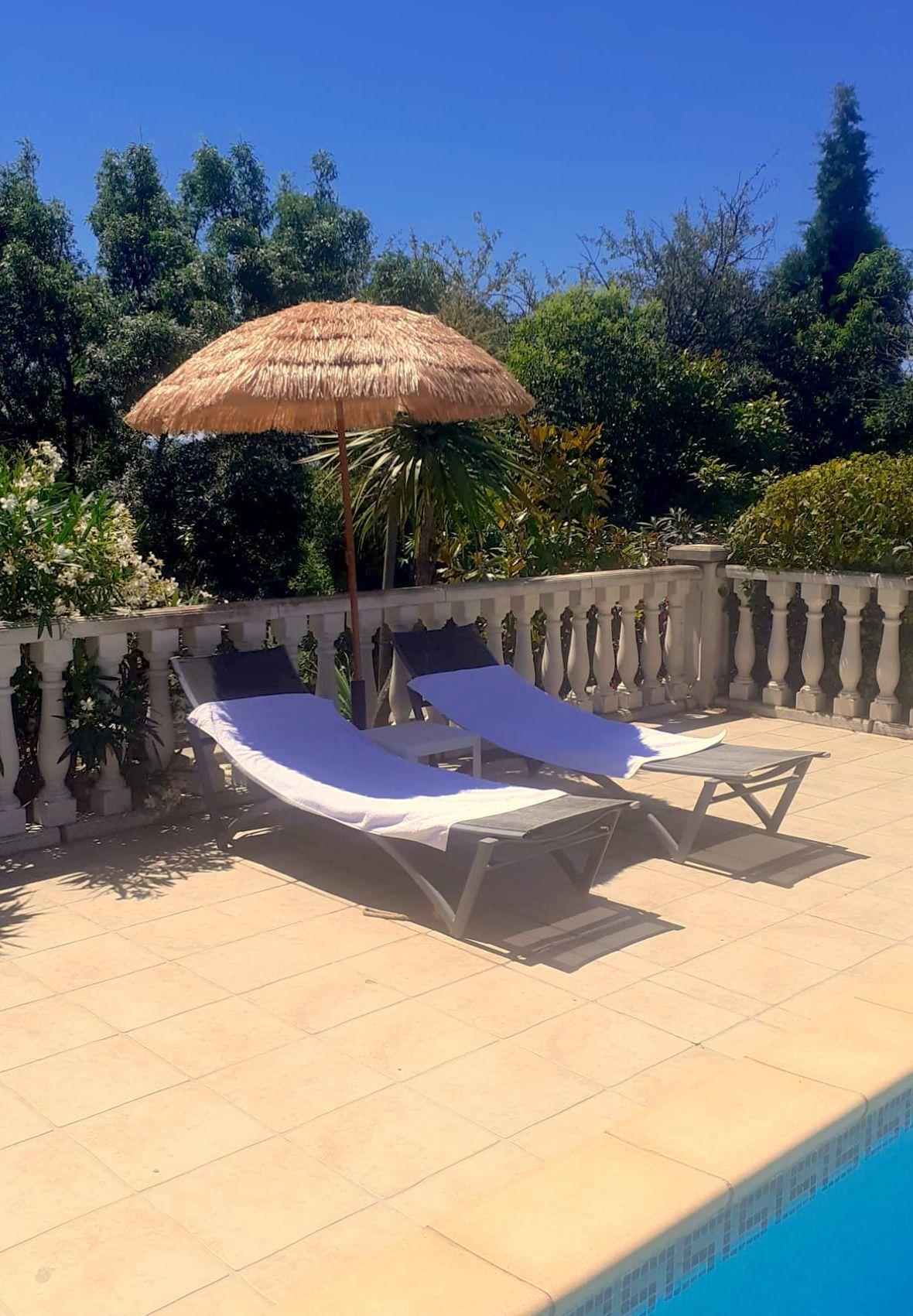 Large terrace with garden and small summer kitchen, boules court with balls and access to the swimming pool (from approx. mid-May) for shared use. The property is fenced, offers several parking spaces and security for children and dogs.