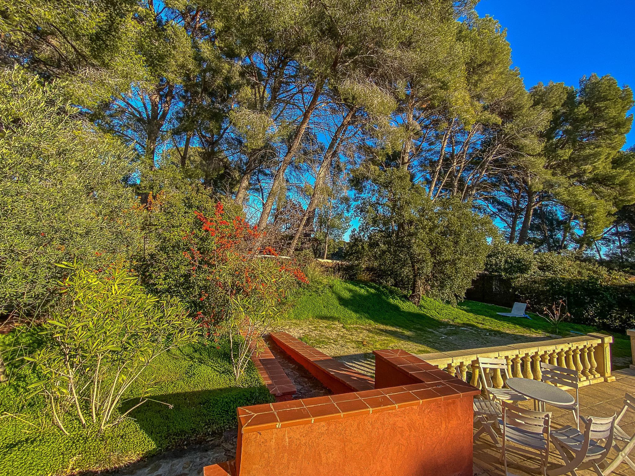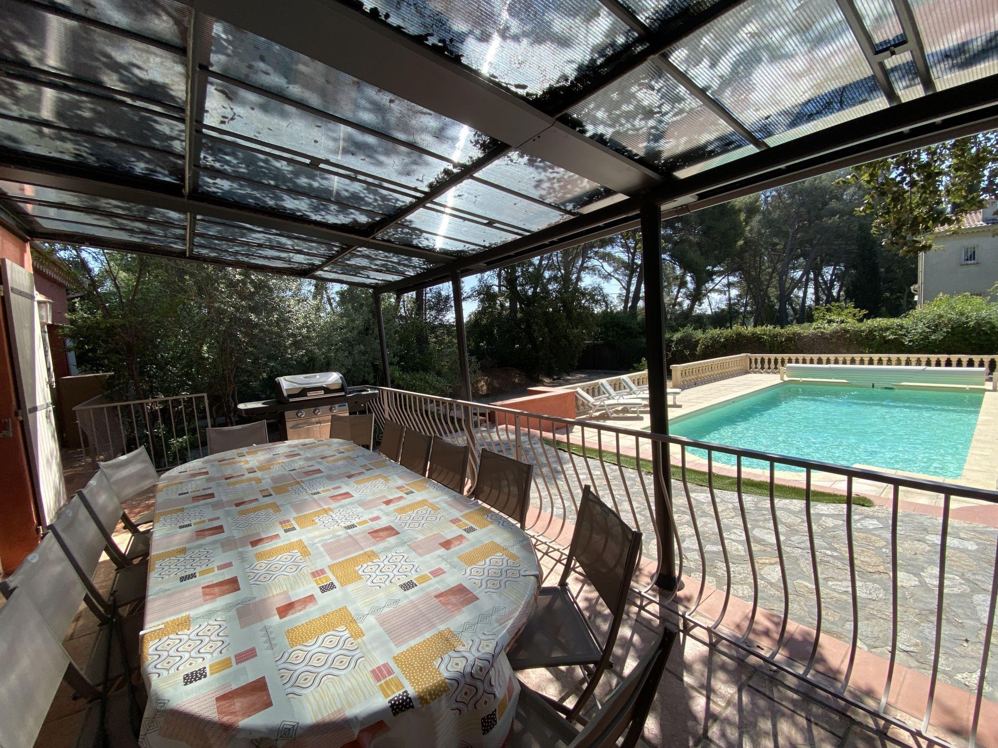 Beautiful villa "Lou Clapas", surrounded by trees and vineyards. In the district of la Londe, in a quiet, sunny position, 2.2 km from the sea, 2.2 km from the beach. Private: property 1'200 m2 (fenced), well-kept garden (fenced), swimming pool angular (5 x 10 m, depth 130 - 160 cm, seasonal availability: 28.Jun. and 30.Sep.) with shutter cover. Outdoor shower, table tennis, boules, parking (for 4 cars). Shop 1.1 km, grocery 1.1 km, supermarket 1.1 km, shopping centre 12 km, restaurant, bakery 300 m, café 1.1 km, bus stop "La Decelle" 1.7 km, railway station "Gare de Hyeres" 10 km, sandy beach "Tamaris & Miramar" 2.2 km. Sports harbour 2.1 km, golf course (18 hole) 8.5 km. Nearby attractions: Jardin Zoologique Tropical 3.3 km, Espace nature La Brûlade 850 m, Dolmen Von Gaoutabry 6.5 km, Jardin Olbius Riquier 10.3 km, Complexe Aquatique 10.4 km. Hiking paths: Espace Nature des vieux Salins 7.3 km. The owner does not accept any groups.