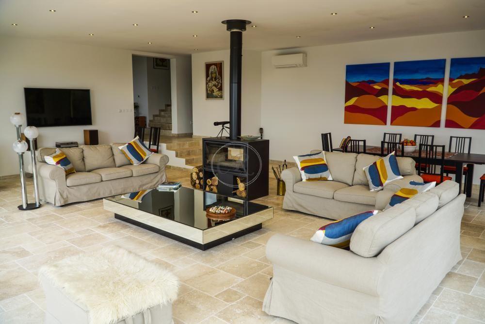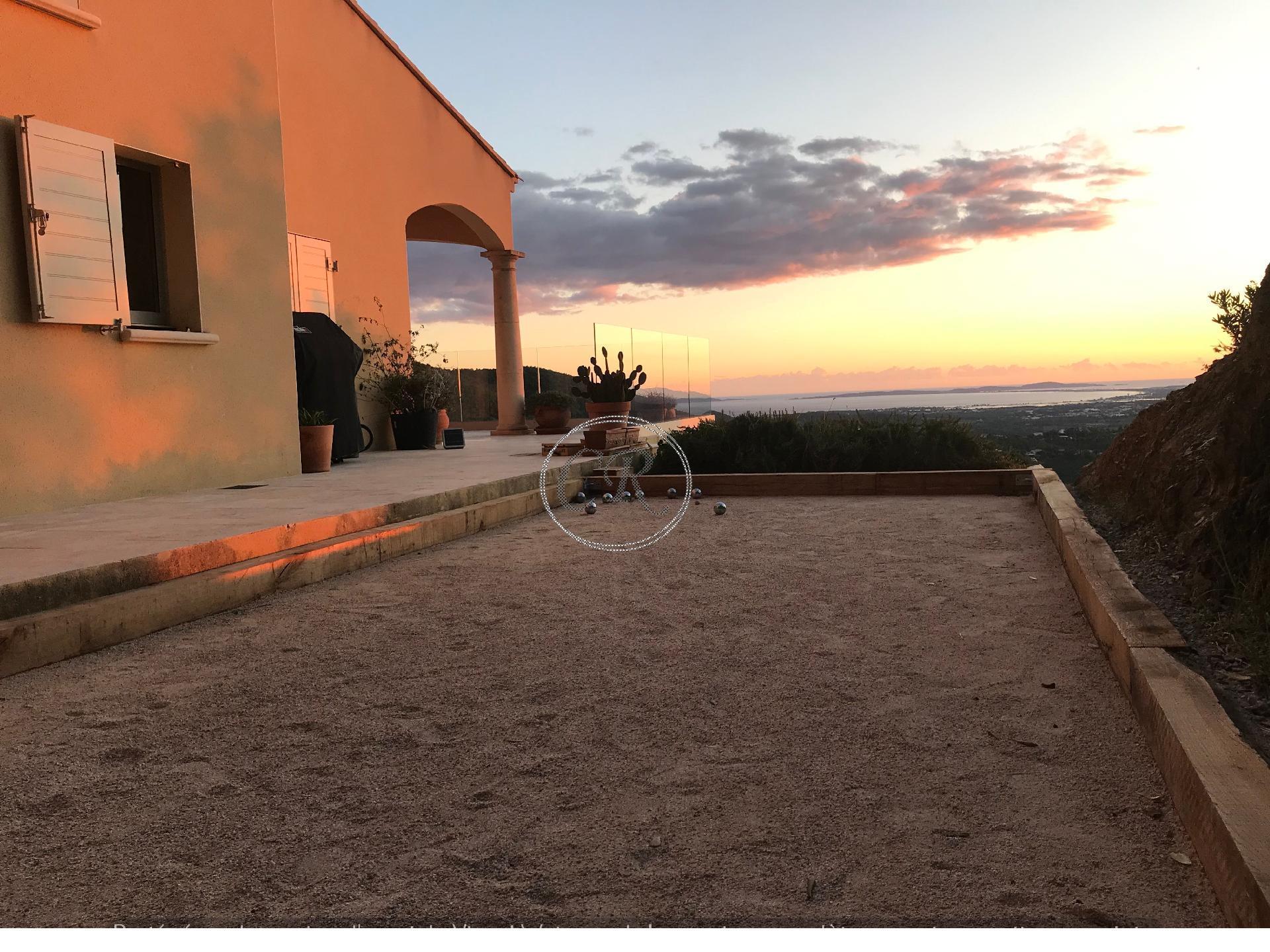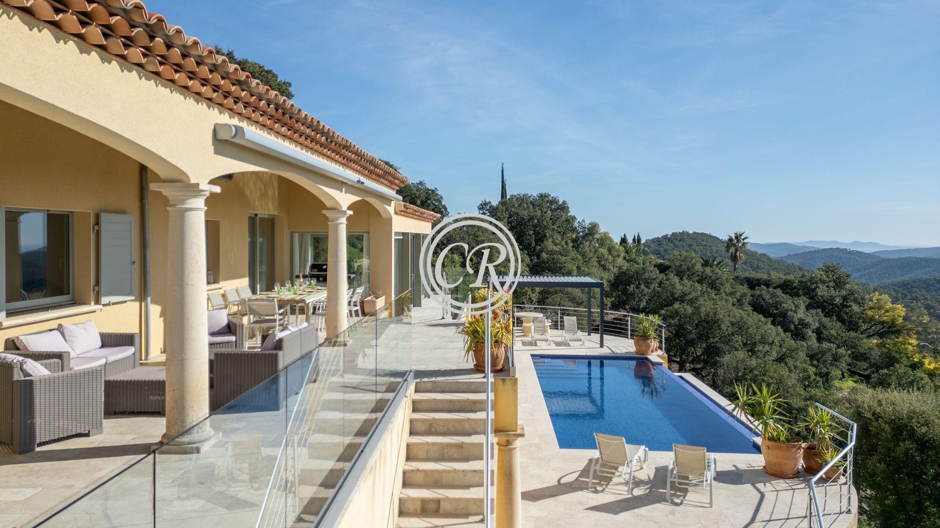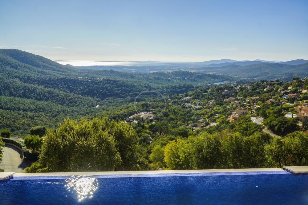 This superb villa on the Domaine de Val Cros in La Londe les Maures boasts panoramic sea views, an 80 m² living room decorated in contemporary style with bay windows offering breathtaking views, and a spacious, well-equipped kitchen.