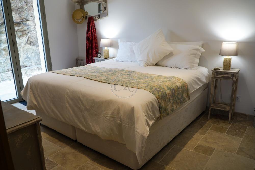 Outside, you can take full advantage of the 2 sea-facing terraces and an infinity pool, as well as a new bowling green just off the terrace. On the first level, the living room, kitchen and spacious bedroom open onto the terrace. At mealtimes, you can choose to eat inside or in the shaded area of the outside terrace. A second bedroom on the same level overlooks a fruit garden. All bedrooms have en-suite bathrooms. On the second level is a 3-person suite with en-suite shower room and wc. On the third level is the master bedroom, with its large terrace between land and sky, panoramic sea views, dressing room and bathroom with spa bath.