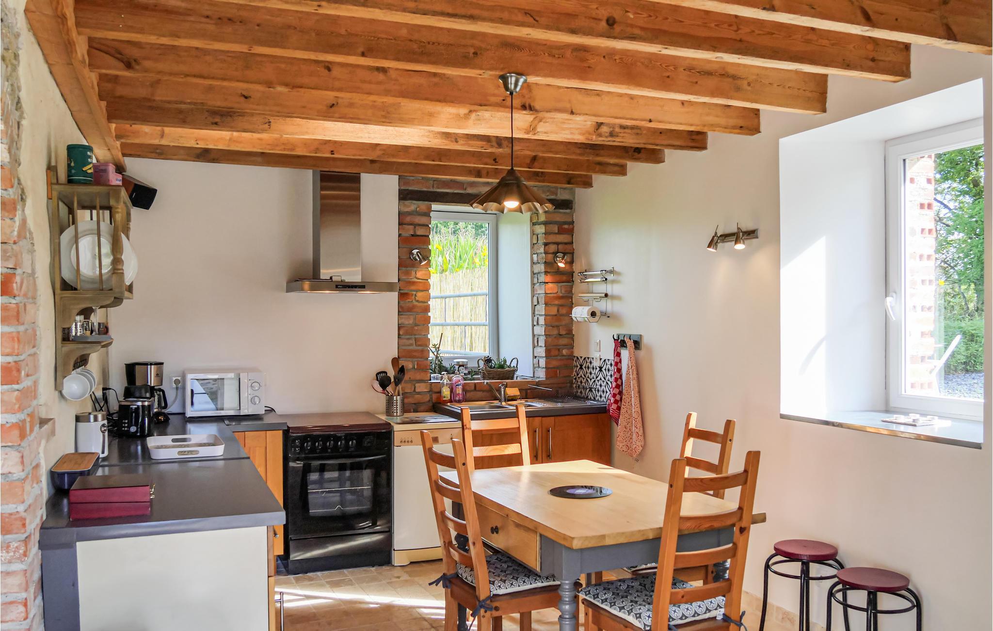 Dieses helle und oftähnliche Ferienhaus verteilt sich auf zwei offene Räume. Die Unterkunft ist zu jeder Jahreszeit angenehm, funktional und gut ausgestattet und verfügt morgens über einie sonnige Küche und ein großes Wohnzimmer mit Blick auf einen angelegten Teich und die umliegende Landschaft. Zweifellos ist dieses Haus ideal für einen Familienurlaub oder einen unvergesslichen romantischen Kurzurlaub, bei dem Sie die Schätze von La Manche oder Calvados entdecken können. In einer idyllischen Umgebung können Sie sowohl auf der Terrasse mit viel Privatsphäre entspannen, als auch die Natur in dem für Sie reservierten Bereich genießen.