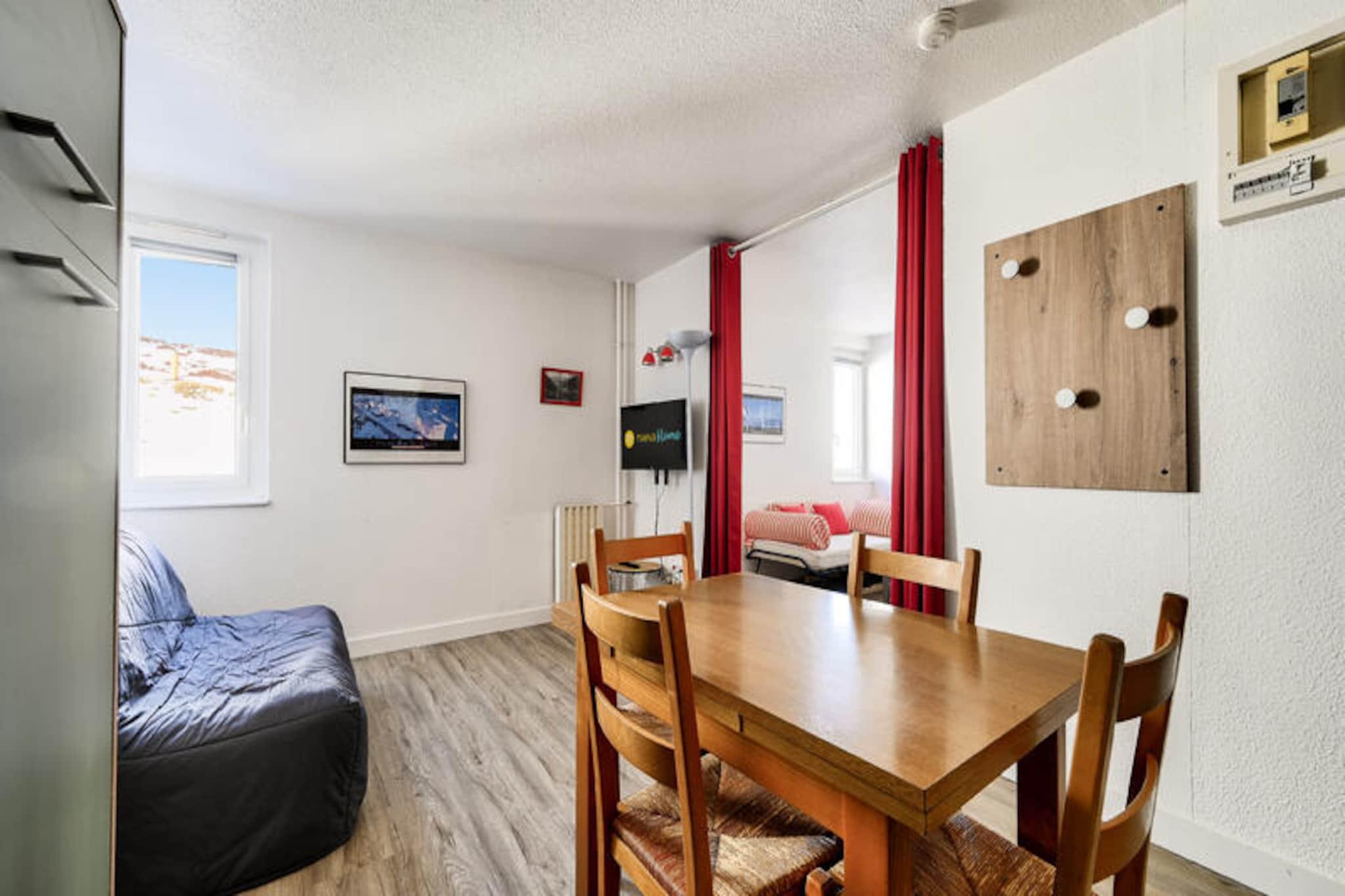 High in the heart of the Pyrenees, where snow-dusted peaks meet endless skies, Résidence Le Tourmalet offers a serene escape with breathtaking views of La Mongie’s most picturesque slopes. This charming retreat is perfectly positioned along the iconic Route du Tourmalet, a gateway to the Grand Tourmalet - Pic du Midi ski resort, boasting over 100 kilometers of thrilling slopes and alpine adventures. Whether you're here to ski, hike, or simply soak in the mountain air, this is your ideal haven. Inside, the apartment is thoughtfully designed to maximize comfort and functionality. Spanning 30m², it features a cozy living room with a sofa bed, a sleeping alcove with a double bed and two single beds, a fully equipped open-plan kitchen, and a modern bathroom with a shower. The fifth-floor location ensures stunning views, while direct access to the slopes means you can step out and ski straight into your day. After a day of activity, unwind in the warm and inviting living space, perfect for sharing stories and laughter. The location is unbeatable. Just steps away, you’ll find shops, restaurants, and the vibrant activities of the resort. For hiking enthusiasts, the trails leading to the Pic du Midi de Bigorre and the Col du Tourmalet offer unforgettable panoramas and experiences for all skill levels. In every season, this region transforms into a playground for nature lovers and adventure seekers alike. Choose Résidence Le Tourmalet for its unparalleled access to the slopes, its cozy yet modern amenities, and its proximity to the best of the Pyrenees. Whether you're chasing powder in winter or exploring lush trails in summer, this is where memories are made.