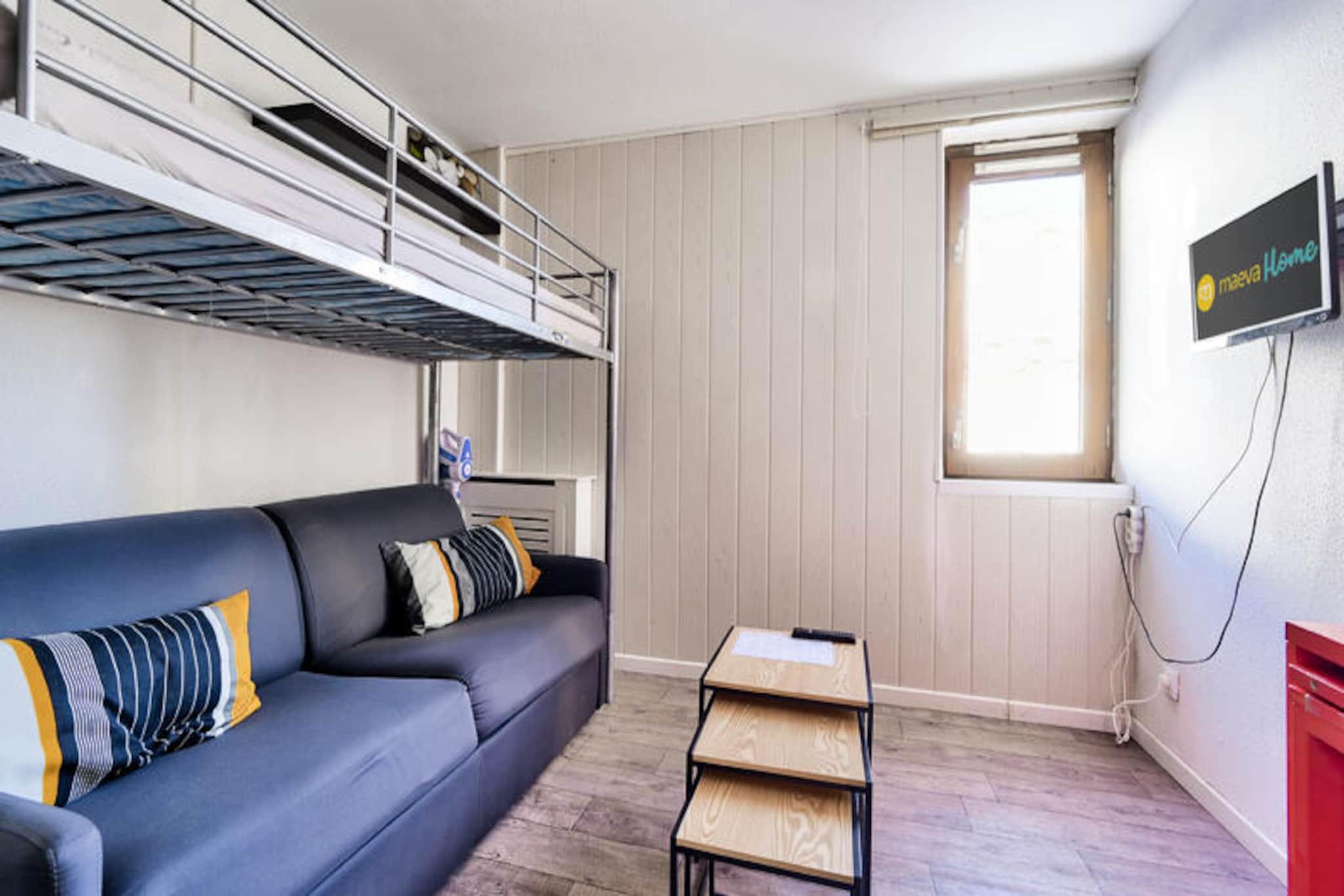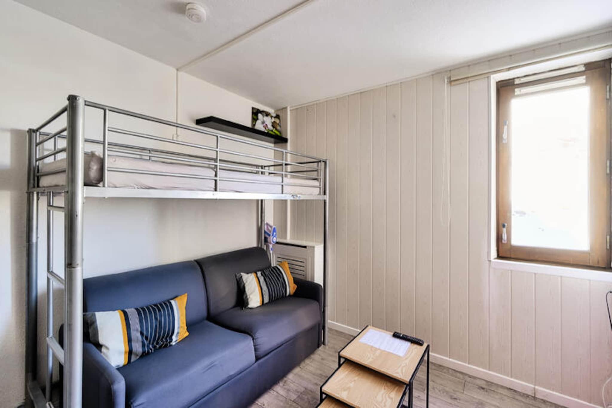 High in the heart of the Pyrenees, Résidence Le Tourmalet in Bagnères-de-Bigorre offers a front-row seat to the breathtaking beauty of La Mongie’s slopes. Here, the crisp mountain air and panoramic views of snow-dusted peaks create an enchanting alpine escape, perfect for adventurers and nature lovers alike. Whether you're seeking the thrill of the slopes or the serenity of a mountain retreat, this location promises unforgettable moments. This cozy studio apartment, located on the third floor, is thoughtfully designed to maximize comfort and convenience. The living area features a sofa bed and bunk beds, providing flexible sleeping arrangements for up to three guests. The open-plan kitchen allows you to prepare hearty meals after a day of exploration, while the modern bathroom with a shower ensures a refreshing start or end to your day. With direct access to the slopes, you can step outside and ski straight into the Grand Tourmalet - Pic du Midi ski resort, boasting over 100 kilometers of pristine trails. Beyond skiing, the area is a haven for hiking enthusiasts. Embark on a journey to the iconic Pic du Midi de Bigorre, where panoramic vistas await, or explore the numerous trails around the Col du Tourmalet, catering to all levels of experience. Shops and resort activities are conveniently located within 500 meters, ensuring everything you need is just a short stroll away. Whether you’re here to carve through powdery slopes, hike amidst stunning landscapes, or simply unwind with a view of the mountains, Résidence Le Tourmalet offers the perfect base for your Pyrenean adventure. Let the charm of this alpine retreat inspire your next getaway.