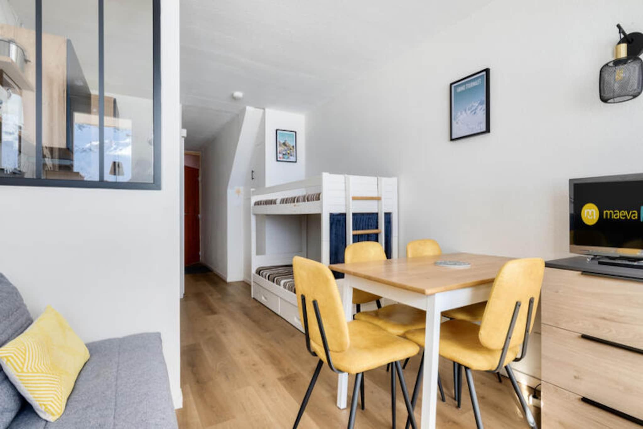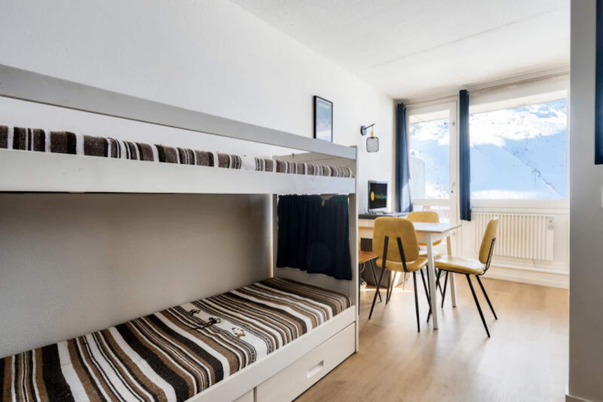 High above the Pyrenean valleys, Résidence Le Tourmalet in Bagnères-de-Bigorre offers a retreat that perfectly blends alpine charm with modern convenience. Imagine waking up to the sunlit slopes of La Mongie, with panoramic views stretching across the majestic peaks, and stepping directly onto the trails or ski runs just outside your door. This cozy studio apartment invites you to experience the beauty of the Grand Tourmalet - Pic du Midi ski resort, boasting over 100 kilometers of slopes for every level of skier or snowboarder. Whether you’re here for winter sports or summer hikes, the location is unbeatable. \n\nThe apartment is thoughtfully designed to maximize comfort in its 28m² space. It features a living room with a sofa bed and bunk beds, a semi-open kitchen for preparing hearty meals, and a modern bathroom equipped with a shower and towel warmer. The south-facing balcony is the perfect spot to unwind, offering breathtaking mountain views that make every moment memorable. With dedicated parking and Wi-Fi access, your stay is as convenient as it is enjoyable. The Maeva Home Prestige label ensures quality amenities, including bed linen, towels, and cleaning services, so you can focus on relaxation and adventure.\n\nRésidence Le Tourmalet places you at the heart of the Pyrenean experience. From the nearby shops and ski lifts to the iconic hiking trails leading to Pic du Midi de Bigorre, every activity is within easy reach. Explore the Col du Tourmalet’s scenic paths or enjoy the vibrant local culture in Bagnères-de-Bigorre. Whether you’re chasing adrenaline or seeking tranquility, this destination offers it all.\n\nChoose Résidence Le Tourmalet for an unforgettable escape where the mountains meet the sky, and every day is a new adventure.