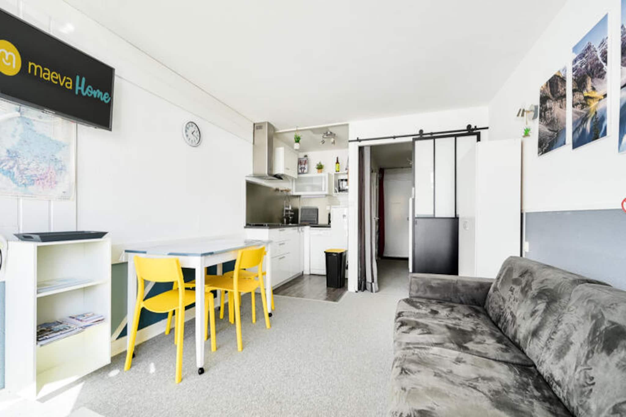 High in the heart of the Pyrenees, where majestic peaks meet endless skies, lies the Le Montana Residence in La Mongie. This charming retreat offers a perfect blend of comfort and adventure, inviting you to immerse yourself in the serene beauty of the mountains. With its south-facing balcony, you can wake up to breathtaking views of the surrounding slopes, basking in the warmth of the sun as you plan your day of exploration. Whether you're here for the thrill of skiing or the tranquility of summer hikes, this residence promises an unforgettable alpine escape. The studio apartment is thoughtfully designed to maximize comfort and convenience. It features a cozy living room with a sofa bed, a private sleeping alcove with a double bed, and a fully equipped open-plan kitchen, perfect for preparing meals after a day of adventure. The bathroom includes a bathtub with a shower, and the apartment's ample storage ensures a clutter-free stay. Additional perks include covered parking, direct access to the slopes, and the option to bring your furry friends along for the journey. Le Montana Residence is ideally situated just 1 km from the lively resort center, where you'll find a variety of shops, restaurants, and entertainment options. Outdoor enthusiasts will appreciate the proximity to the Pic du Midi cable car, offering panoramic views and access to the iconic astronomical observatory. Cyclists can challenge themselves on the legendary Col du Tourmalet, starting right from the residence. For hikers, the nearby trails lead to stunning high-altitude lakes and diverse wildlife, making every outing a memorable experience. Whether you're seeking thrilling adventures or peaceful moments surrounded by nature, Le Montana Residence provides the perfect base for your Pyrenean getaway. With its unbeatable location and welcoming atmosphere, it's a destination that captures the essence of mountain living.
