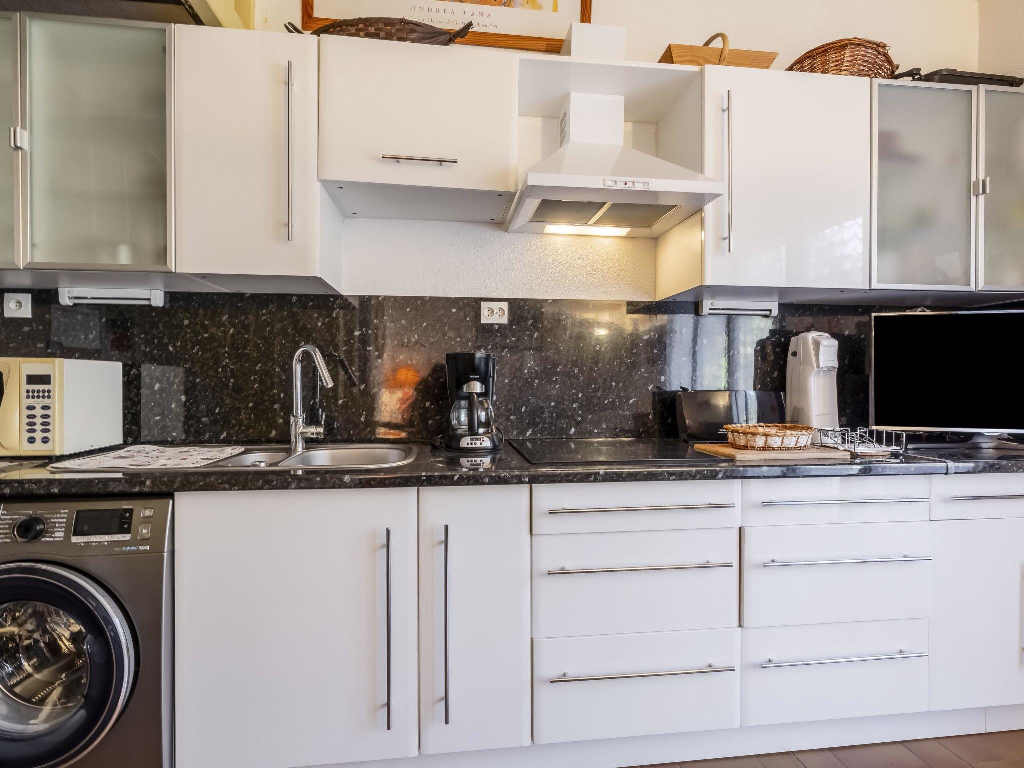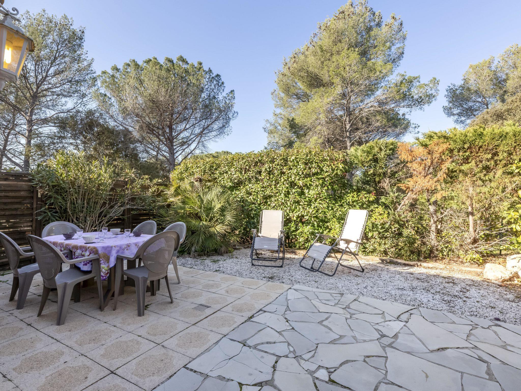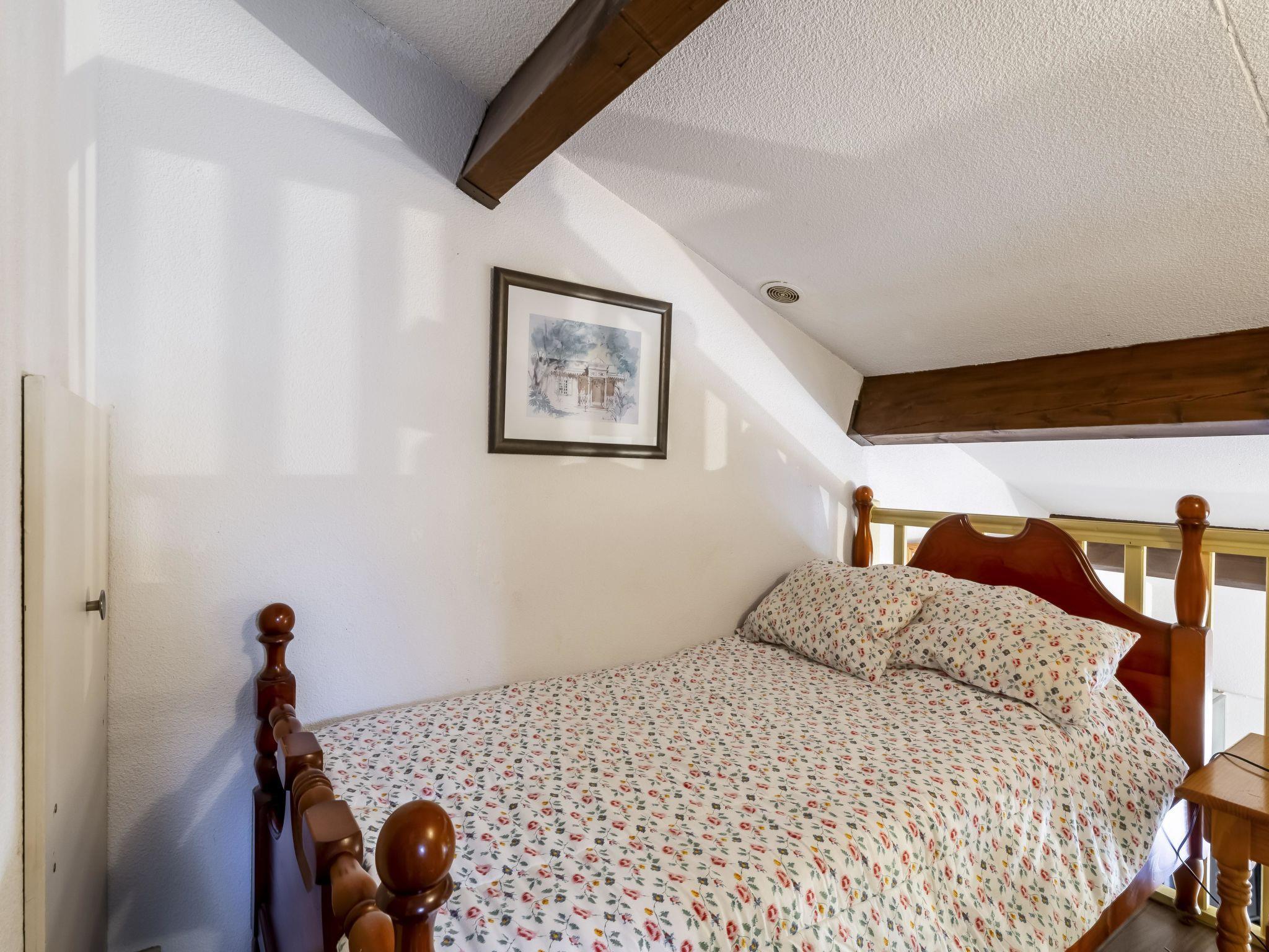 "Le Clos d'Azur 1", 3-room terraced house 35 m2 on 2 levels. Practical furnishings: small living/dining room with dining table, TV and air conditioning. Exit to the terrace. 1 small room with 1 french bed (140 cm, length 190 cm). Open kitchen (oven, 4 ceramic glass hob hotplates, toaster, kettle, microwave, freezer, electric coffee machine). Shower/WC. Upper floor: (steep stair) open gallery with sloping ceilings with 1 bed (90 cm, length 190 cm). 1 small room with 1 french bed (140 cm, length 190 cm), air conditioning. Electric heating. Terrace 15 m2. Terrace furniture, electric barbecue, deck chairs (2). Beautiful view of the forest. Facilities: washing machine, iron. Internet (WiFi, free). Parking (1 car) at 60 m. Please note: non-smoking house. Smoke alarm. Instead of an enclosed bedroom, some sleeping areas are located in an open-plan area (gallery, alcove, etc.).
