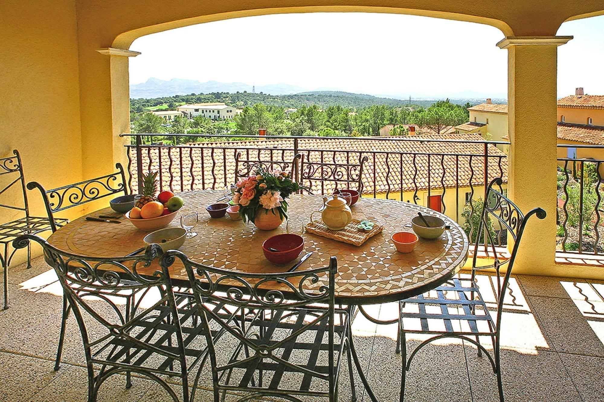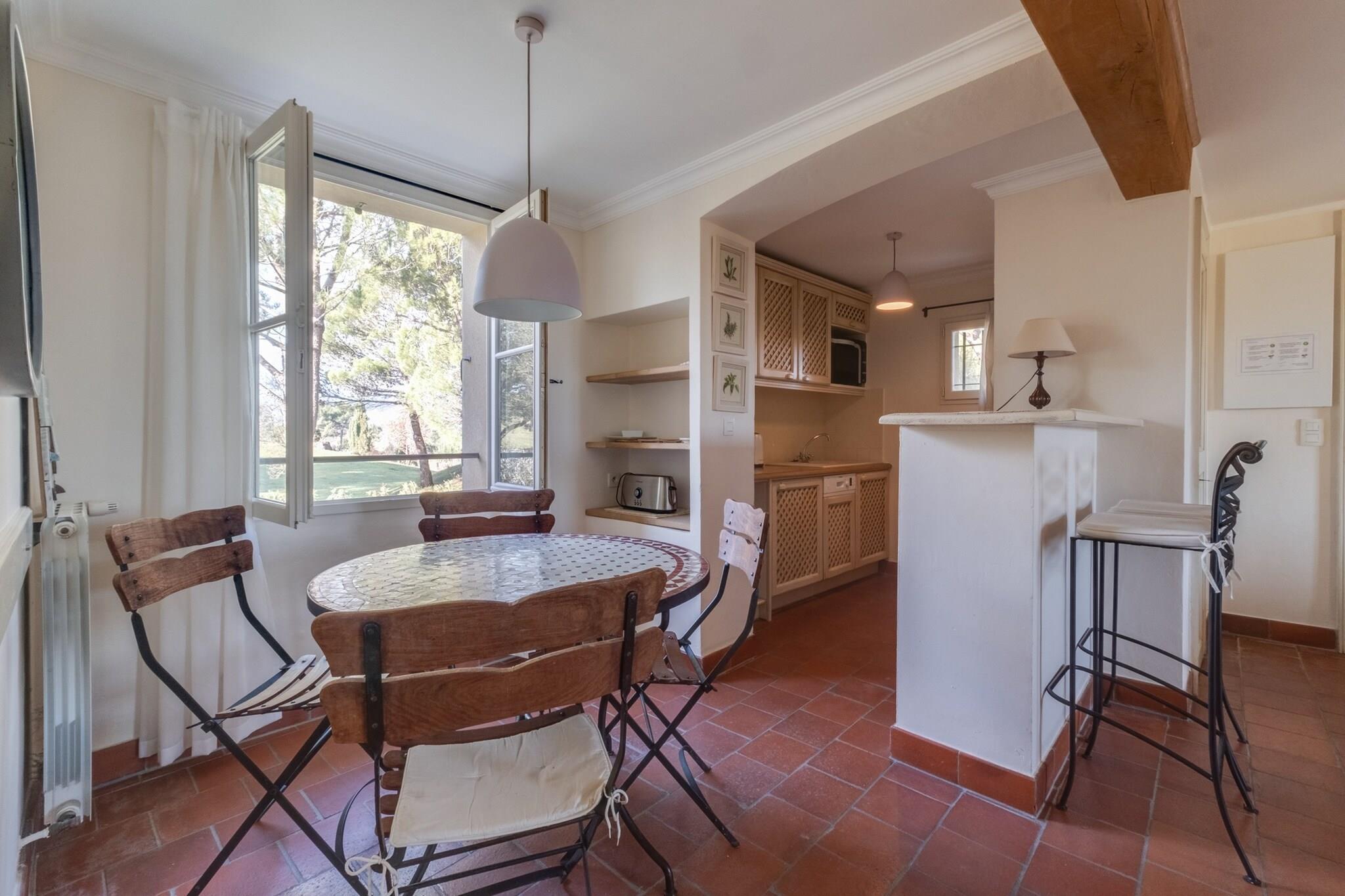 Mornings are unhurried here - the kind where early light touches the greens of the golf course, and the estate sits quiet, wrapped in calm. Les Domaines de Saint-Endréol is the kind of retreat you choose when you want romance, comfort and a little bit of luxury wrapped into one gentle pulse. A place for a couple travelling together, wanting long, lazy days and warm evenings indoors to reconnect. Your holiday flat comes with a lively living space, with wine on the sofa and TV for movie nights, easy meals at the dining table with an open kitchen that is fully equipped for cooking, coffee, and snacks, plus a private terrace. You get a cozy bedroom furnished with a double bed and a full bathroom with essential supplies. With Wi-Fi, air conditioning and private parking, everything feels effortless from arrival to the last night. The resort sprawls through a pine forest and rolling hills, offering more to do than you’ll fit into one stay - an 18-hole course for early rendezvous, a spa with sauna and hydrotherapy, tennis courts, walking and cycling paths, and a large seasonal pool surrounded by loungers for an amazing “we time”. Some days you’ll want activity; others you’ll just float, nap, and share moments. Nearby, the villages of La Motte, Le Muy and Draguignan offer markets, wine cellars and small restaurants perfect for a drive and a slow afternoon. Beaches of the French Riviera are close enough for a day trip, but far enough to return to silence at night. Evenings finish softly here - shared meals, open windows, the kind of peace you feel rather than hear.