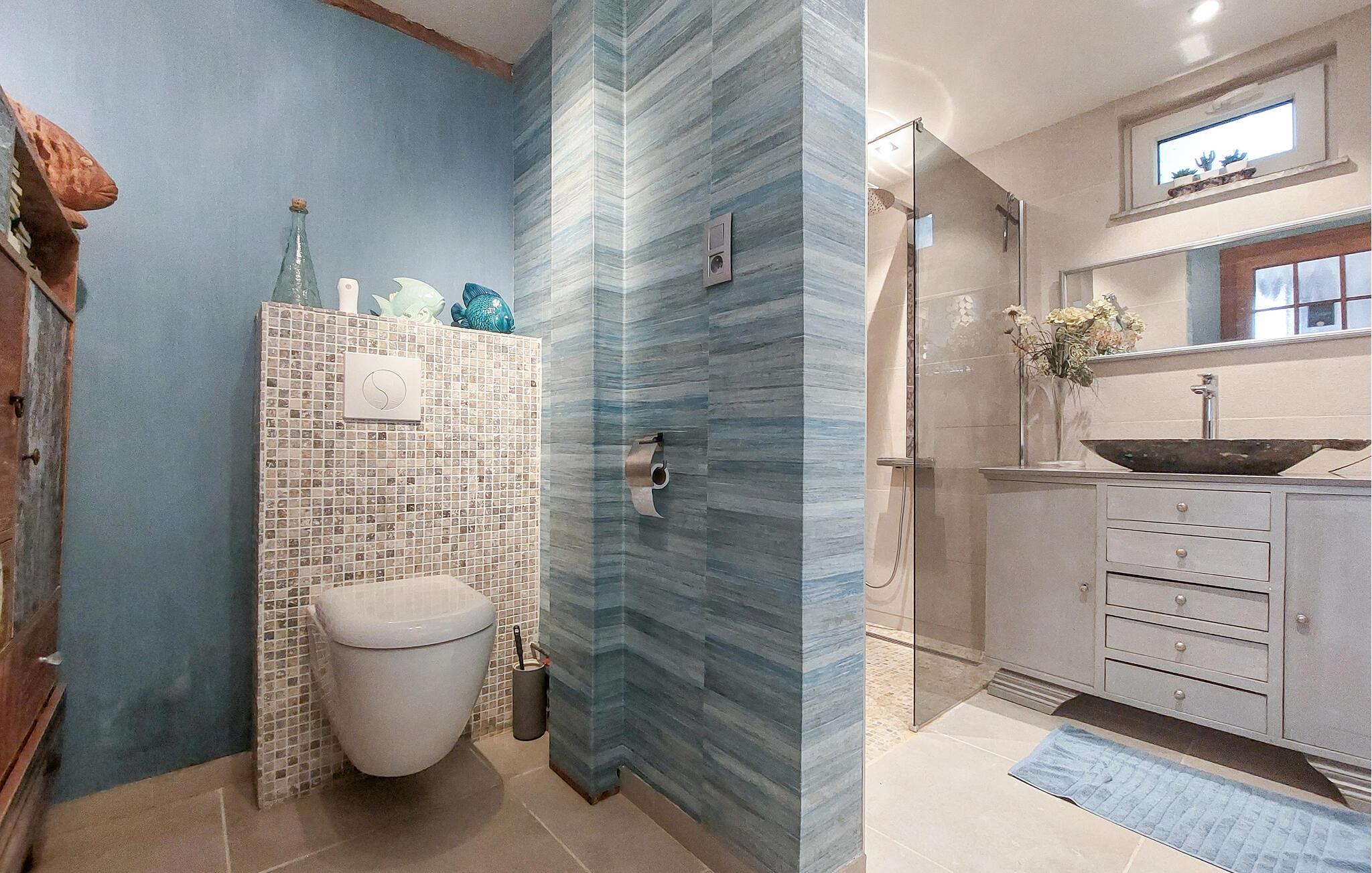 Badezimmer (nr. 2) - WC. Warmes und kaltes Wasser. Dusche
