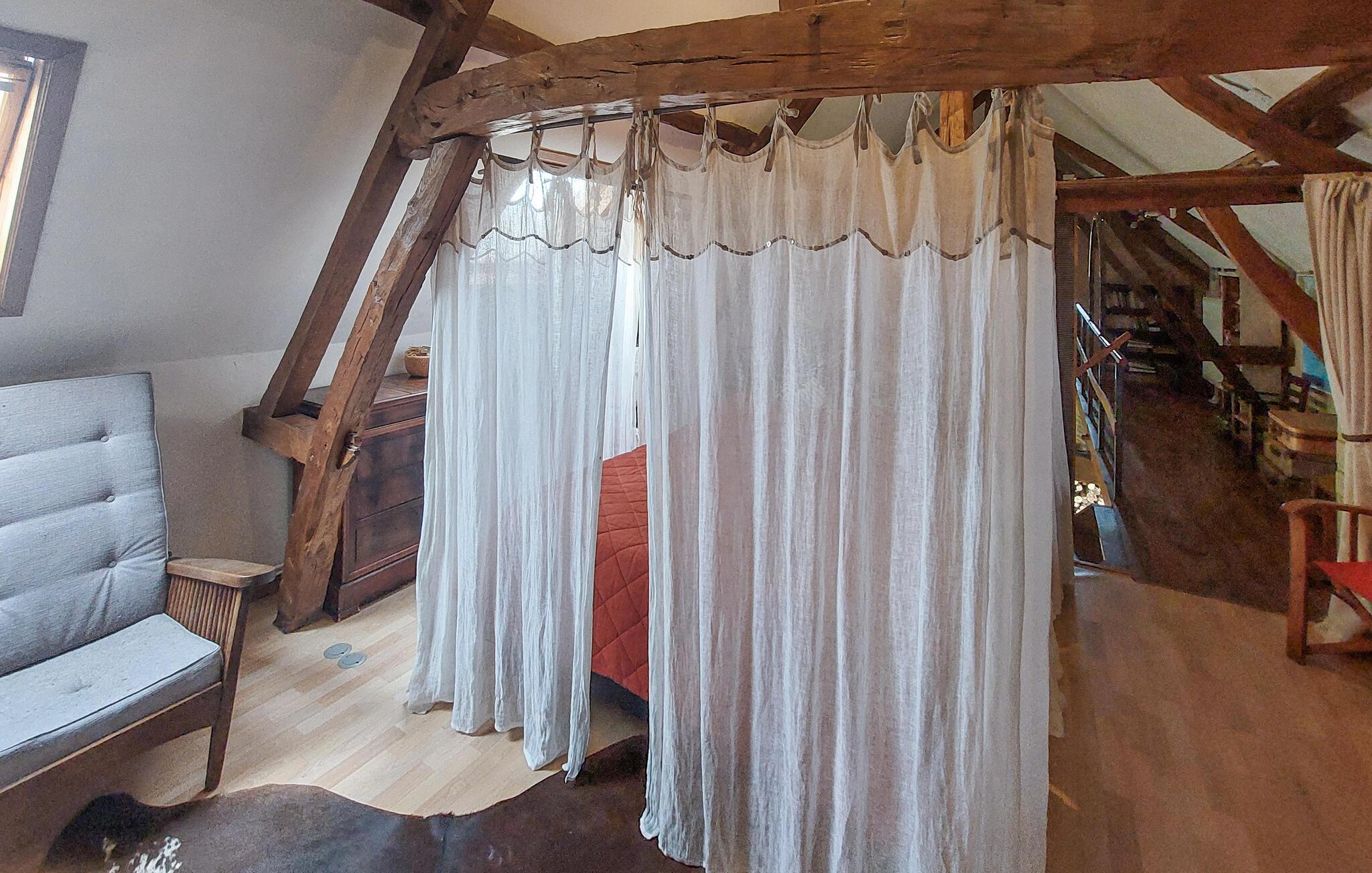 Dieses Haus empfängt Sie mit historischem Flair und rustikaler Gemütlichkeit. Steinfliesen, Holzbalken und ein imposanter Kaminofen schaffen eine charmante Atmosphäre, die an längst vergangene Zeiten denken lässt. Entspannen Sie sich auf dem bequemen Sofa mit einer Tasse Kaffee, lesen Sie ein gutes Buch oder probieren Sie neue Rezepte in der gut ausgestatteten Küche aus.