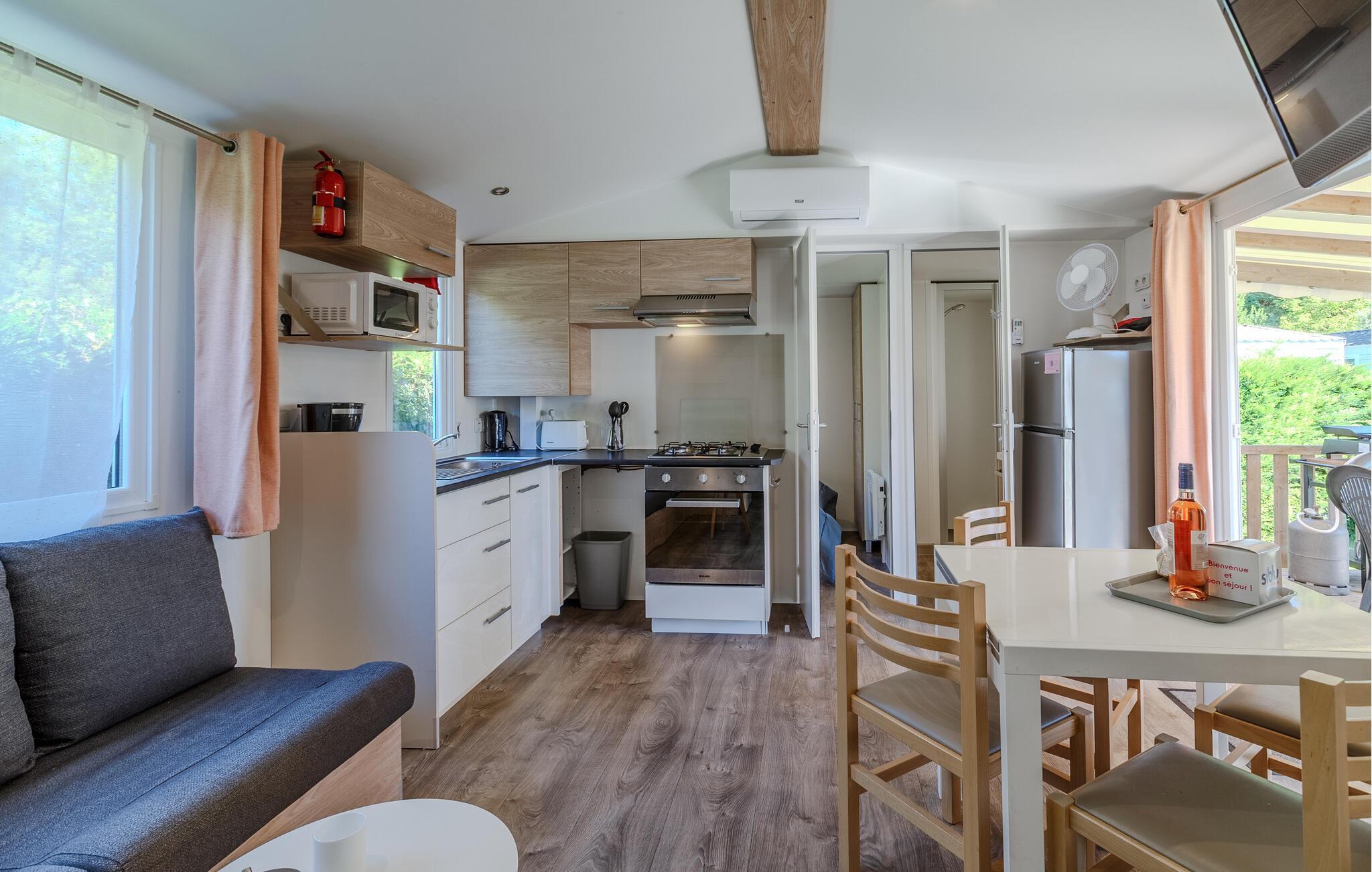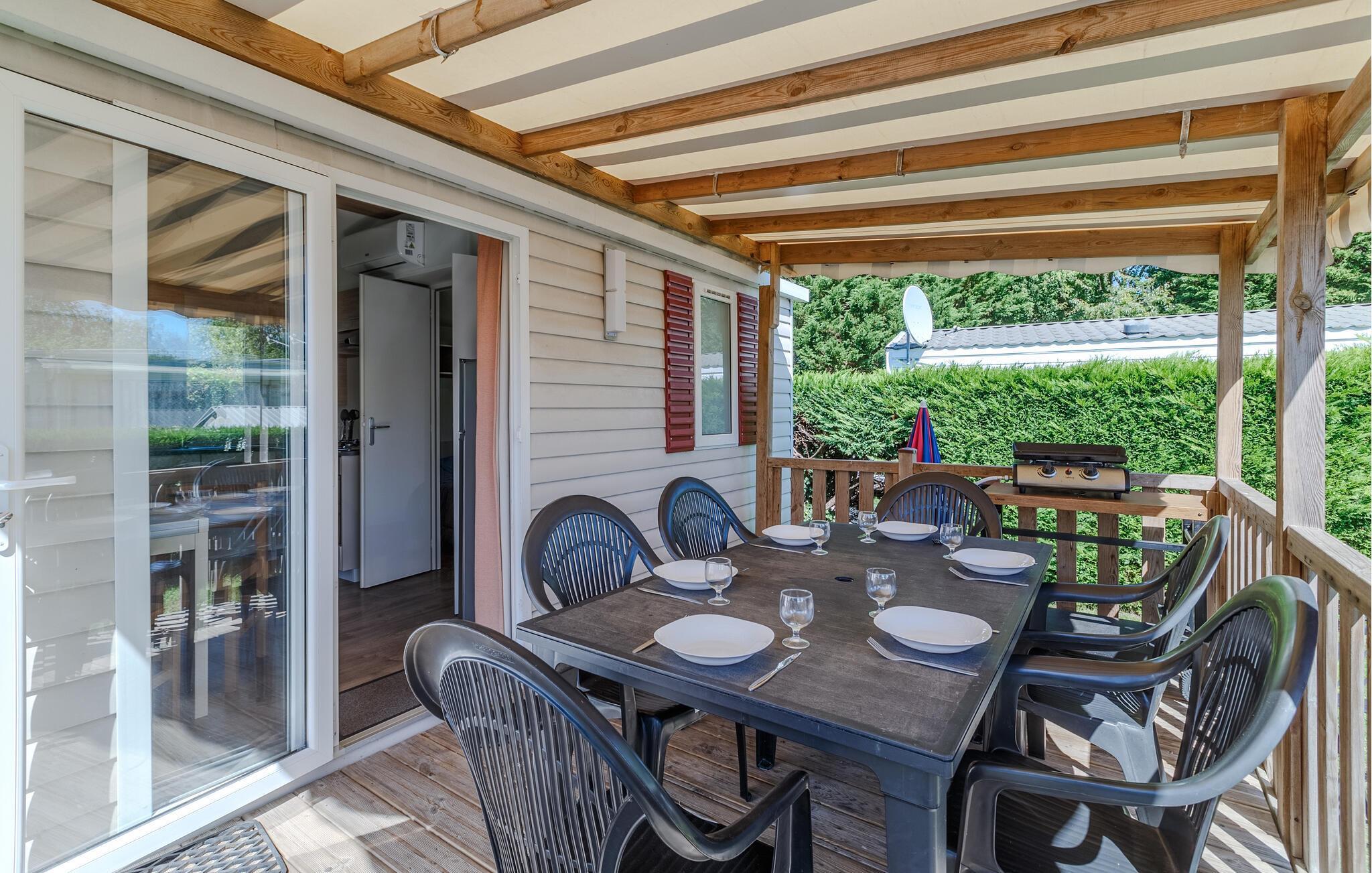 Verbringen Sie Ihren Familienurlaub in diesem komfortablen Mobilheim mit großem Swimmingpool.