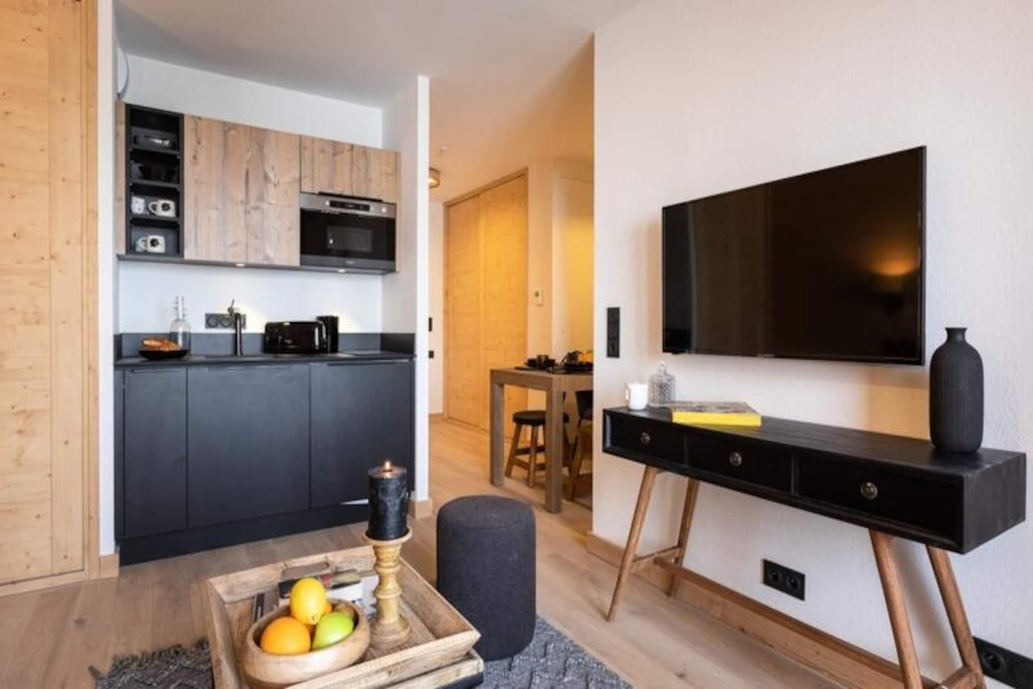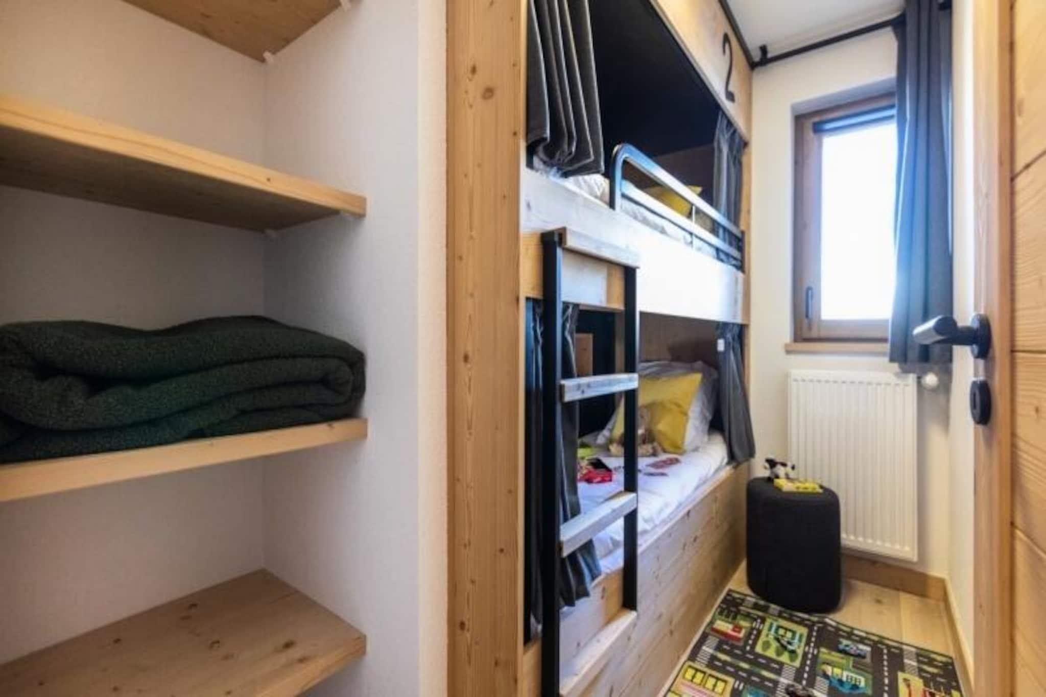 Amidst the serene alpine beauty of La Plagne, the Terresens Le Snoroc Residence offers a luxurious retreat for mountain enthusiasts. Just steps from the Fornelet gondola lift, this residence provides true ski-in/ski-out convenience, allowing you to glide effortlessly onto the slopes. In just six minutes, the gondola whisks you to the Fornelet summit and the Prajourdan ski area, perched at an impressive 2000 meters altitude. Whether you're here for thrilling winter sports or tranquil summer hikes, this location is a gateway to unforgettable alpine adventures. The residence boasts a selection of approximately 70 apartments, ranging from cozy studios for two to spacious three-room apartments with sleeping alcoves accommodating up to ten guests. Each apartment is thoughtfully designed, blending modern elegance with a warm mountain aesthetic. Most feature private terraces or balconies, where you can soak in breathtaking views of the surrounding peaks. Inside, you'll find fully equipped kitchens, stylish furnishings, and all the comforts needed for a relaxing stay. At the heart of the residence lies a wellness area, freely accessible to guests. Unwind in the heated indoor pool, rejuvenate in the sauna or hammam, or indulge in the jacuzzi and sensory showers. For those seeking ultimate relaxation, the treatment room and relaxation lounge provide the perfect escape. Families and friends can also enjoy the on-site tapas bar, offering local delicacies crafted by renowned chefs, or spend quality time in the playroom with foosball, billiards, and games. With shops, restaurants, and bars just a five-minute walk away, everything you need is within easy reach. Whether you're seeking adventure, relaxation, or a mix of both, Terresens Le Snoroc Residence promises a memorable alpine getaway for all seasons.