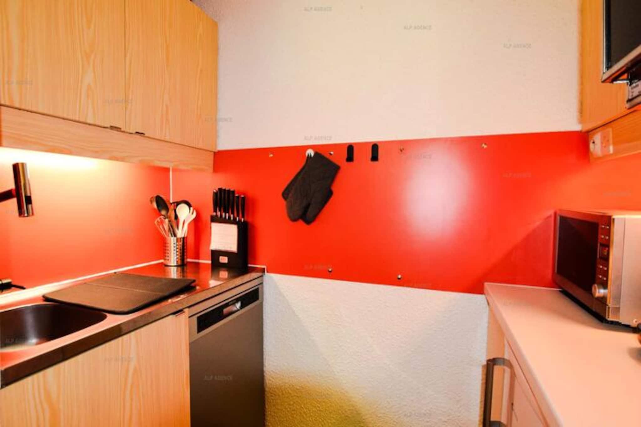 Amidst the serene charm of Plagne Villages, this delightful apartment offers a cozy retreat for up to five guests. Surrounded by the tranquil beauty of a lush forest and located just 50 meters from local shops, this property combines convenience with the allure of nature. Whether you're seeking a peaceful escape or an action-packed adventure, this is the perfect base for your alpine getaway. \n\nThe apartment spans 28m² and features a clever layout with a divisible living area, allowing for flexible sleeping arrangements. It includes a comfortable double sofa bed in the living room, a single bed, and a trundle bed in the divided space. The separate kitchen is fully equipped with modern amenities such as ceramic hobs, a refrigerator, oven, microwave, dishwasher, and a Tassimo coffee maker, making it easy to prepare delicious meals. The bathroom includes a bathtub and a washing machine, while the separate WC adds extra convenience. Two south/west-facing balconies provide stunning views of the surrounding forest, perfect for unwinding after a day on the slopes. \n\nSituated at the foot of the ski slopes, the residence offers unparalleled access to winter sports. A ski locker is available for your equipment, and the free cable bus connects you effortlessly to the nearby Plagne Centre. In summer, the area transforms into a haven for hikers and nature enthusiasts, with trails weaving through the picturesque alpine landscape. \n\nWhether you're here to carve through fresh powder or explore the tranquil beauty of the mountains, this apartment in Les Soldanelles Residence promises a memorable stay in the heart of the French Alps.