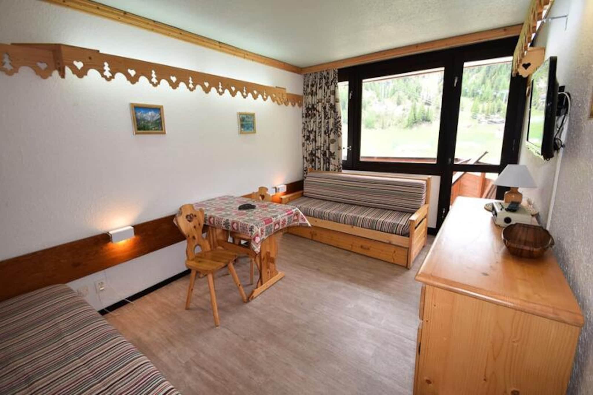 High above the bustling heart of Plagne Centre, this cozy studio offers a front-row seat to the slopes and an unbeatable alpine experience. Imagine waking up to the sunlit panorama of snow-covered peaks and stepping onto your private balcony to breathe in the crisp mountain air. Located on the 8th floor of the Residence Le France, this bright and renovated space is perfect for couples or small groups seeking a serene yet adventurous getaway in the iconic Paradiski domain. \n\nThe studio is thoughtfully designed to maximize comfort and functionality within its 22m² layout. The kitchen, conveniently situated in the hallway, is equipped with ceramic hobs, a refrigerator, dishwasher, and multifunction oven, making it easy to prepare hearty meals after a day on the slopes. The living area features a dining space, two pull-out beds, and a single bed, ensuring restful nights for up to three guests. Modern amenities like a television and a south-facing balcony with breathtaking views of the slopes and surrounding mountains add to the charm of this alpine retreat. \n\nStep outside and find yourself directly at the foot of the slopes, with ski lockers on the ground floor for added convenience. The residence is connected to shops and services via a gallery, making it effortless to access dining, shopping, and après-ski activities. Outdoor parking is available nearby, and the location is ideal for exploring the vibrant village atmosphere of Plagne Centre. \n\nWhether you're here for skiing, snowboarding, or simply soaking in the beauty of the French Alps, this studio offers the perfect balance of comfort, convenience, and stunning views. Plan your escape to Residence Le France and create unforgettable memories in the heart of Paradiski.